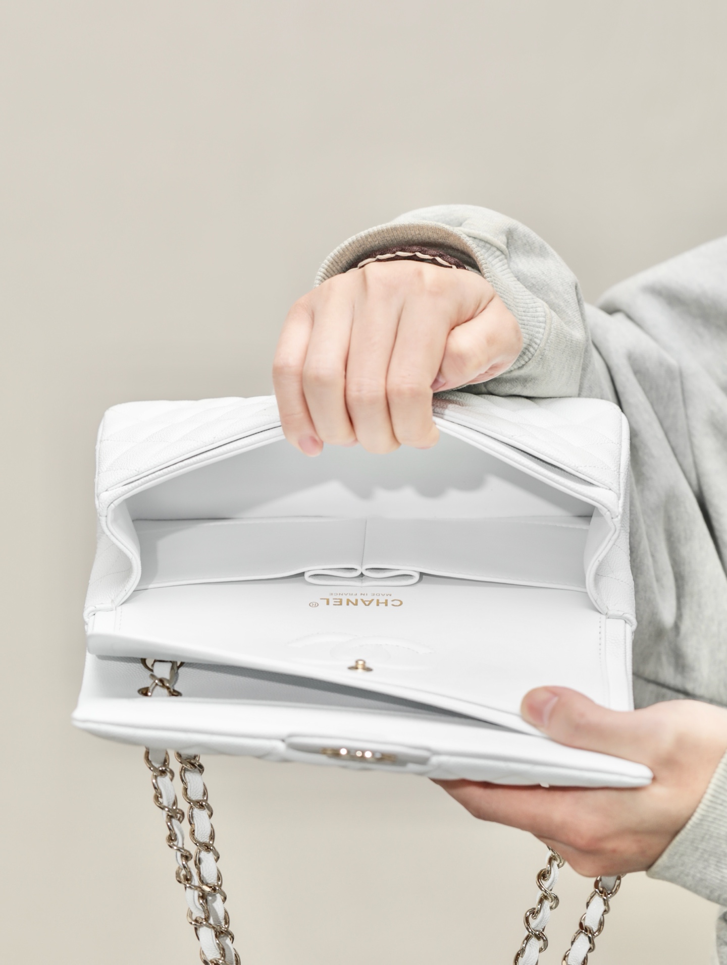 这款包包是AAAAA 1:1 质量 (非常棒). 使用了和原版一模一样的材料. 商标部分也保持了和香奈儿/Chanel一样. 图片拍摄是实物包包拍摄, 您所收到的实物保证和我们图片一模一样.