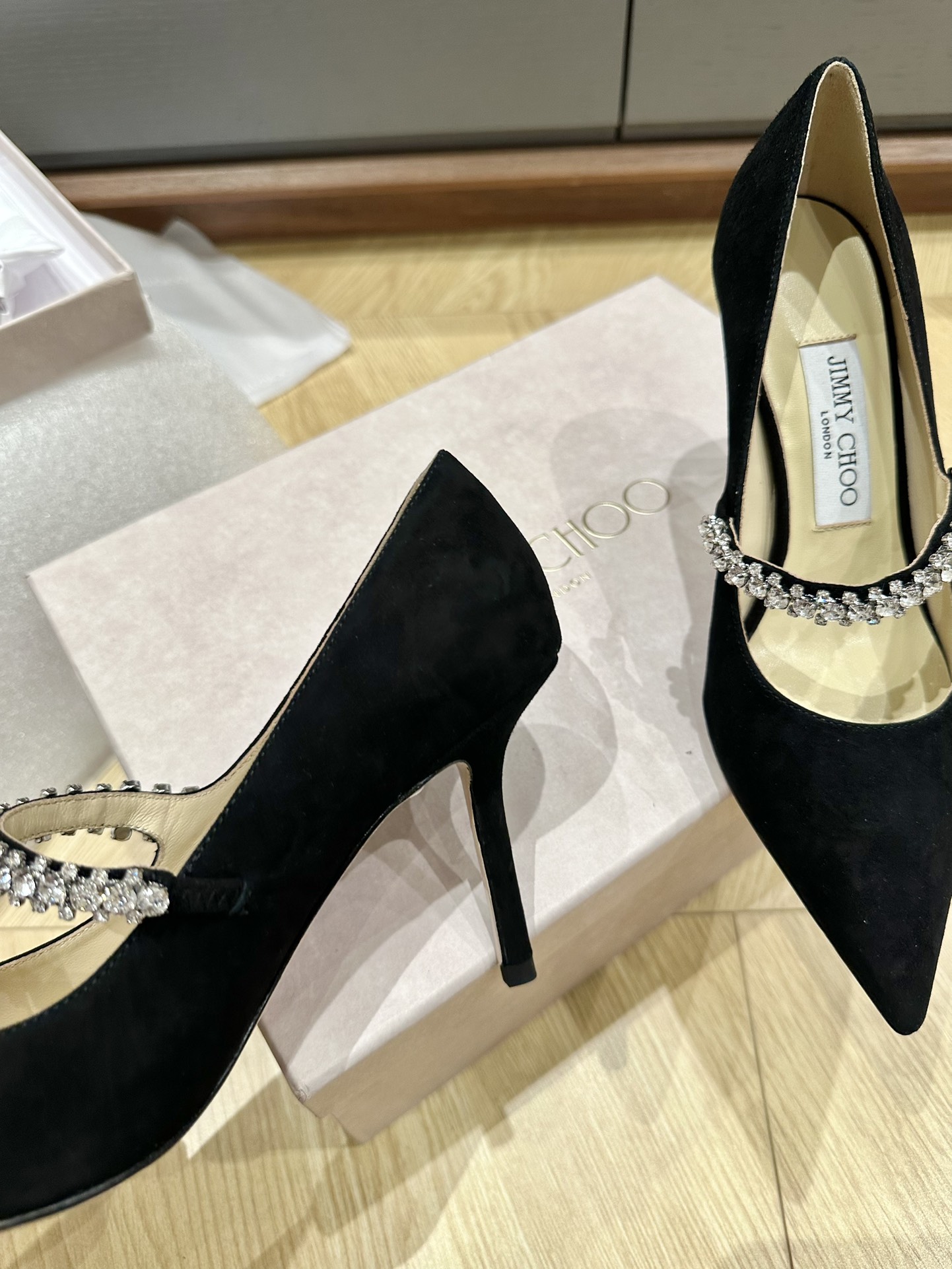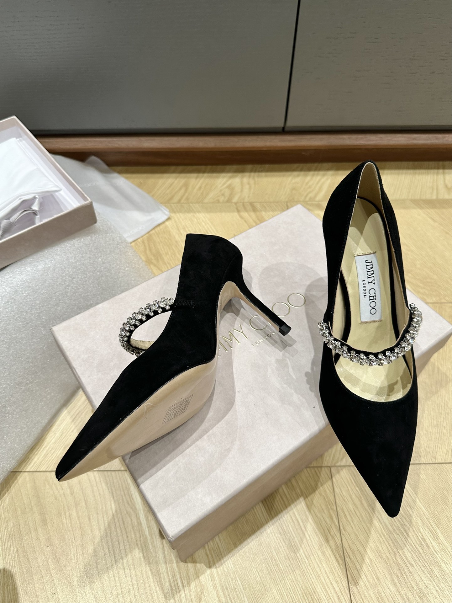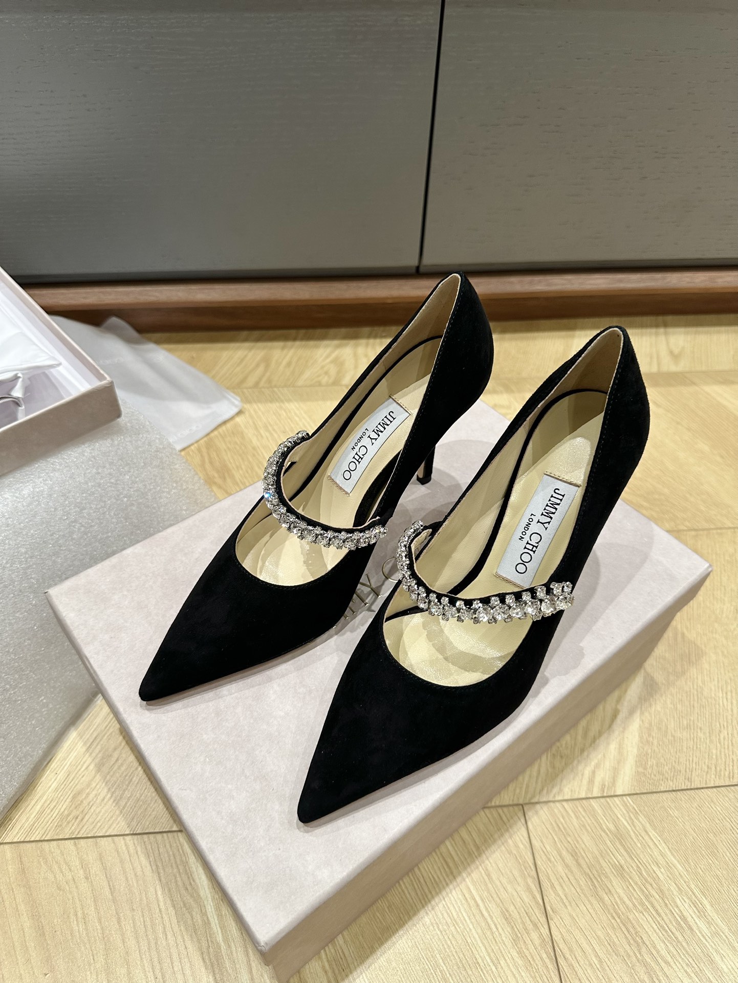 这款鞋子是AAAAA 1:1 质量 (非常棒). 使用了和原版一模一样的材料. 商标部分也保持了和吉米乔/JIMMY CHOO一样. 图片拍摄是实物鞋子拍摄, 您所收到的实物保证和我们图片一模一样.