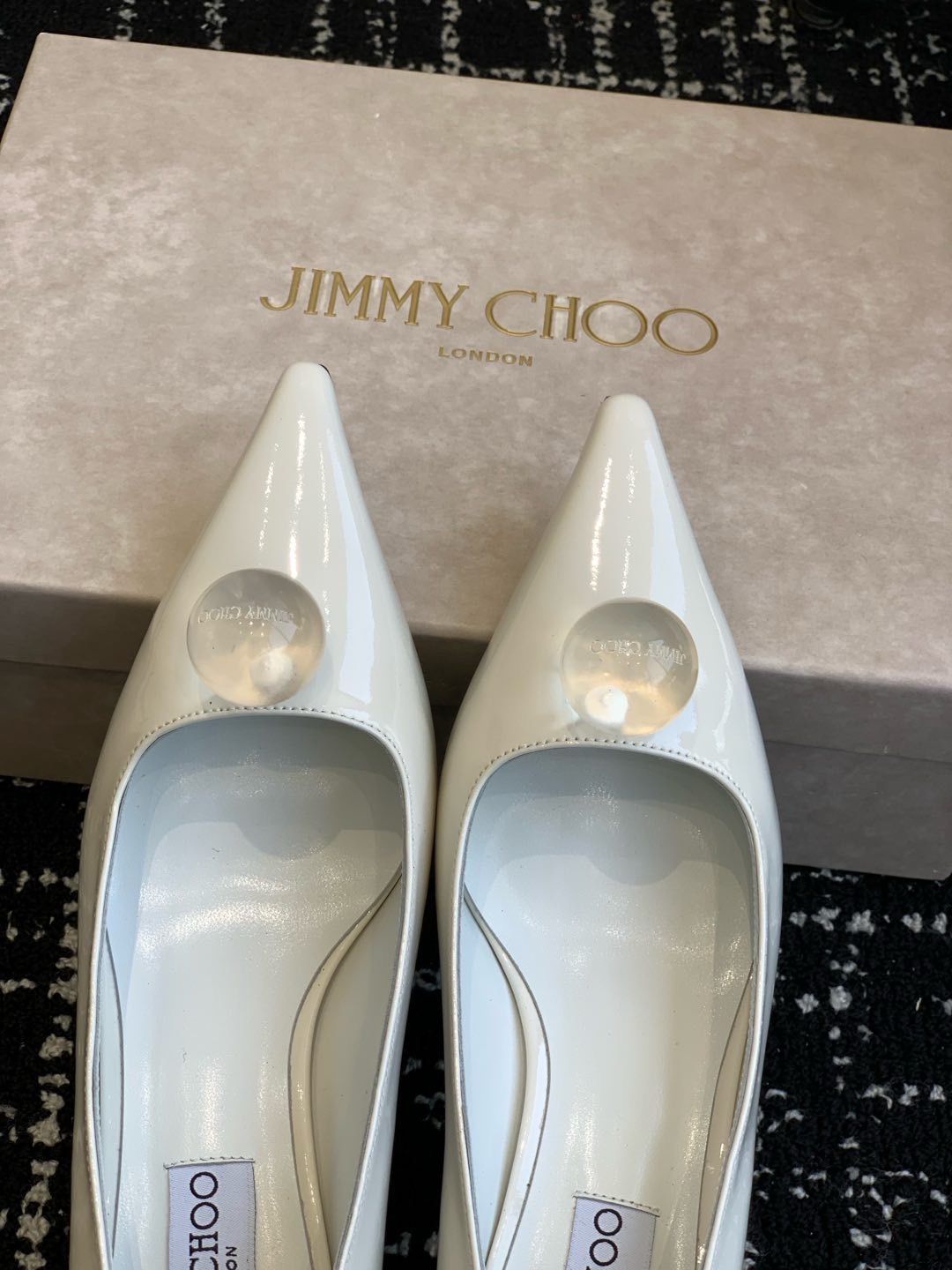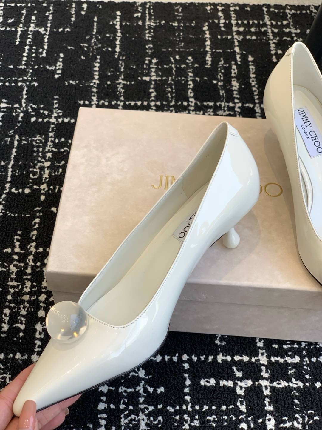 这款鞋子是AAAAA 1:1 质量 (非常棒). 使用了和原版一模一样的材料. 商标部分也保持了和吉米乔/JIMMY CHOO一样. 图片拍摄是实物鞋子拍摄, 您所收到的实物保证和我们图片一模一样.