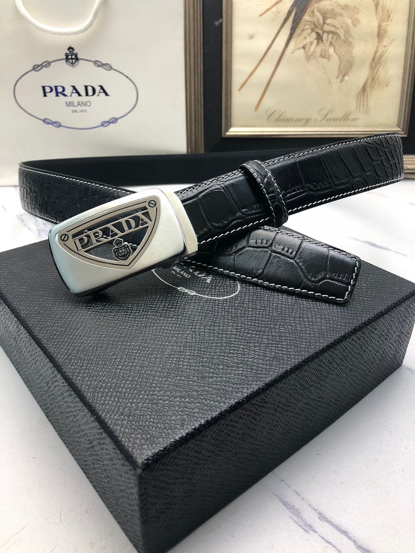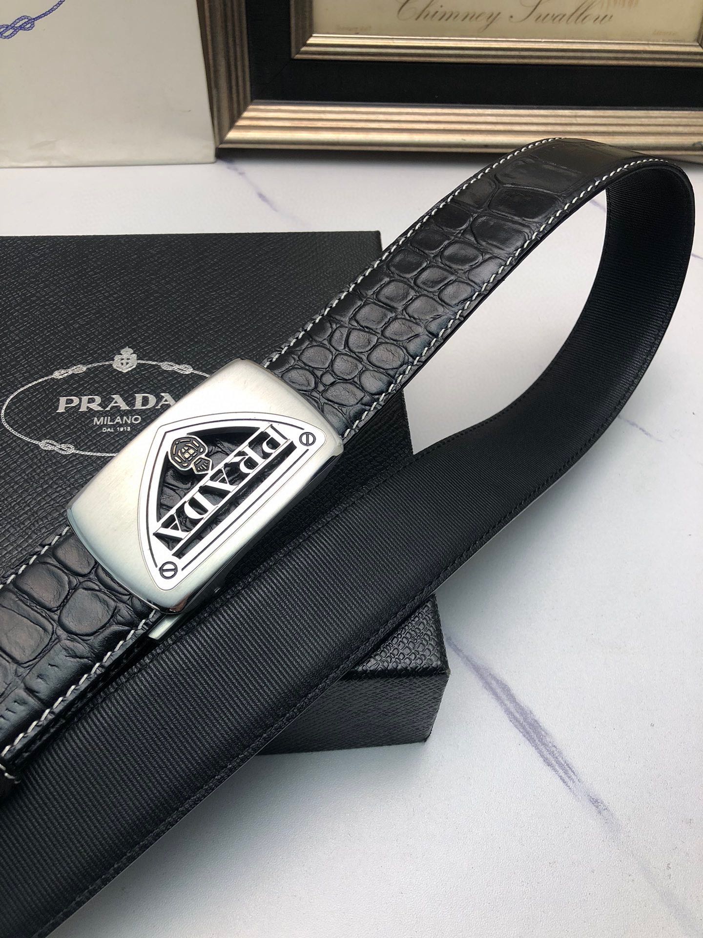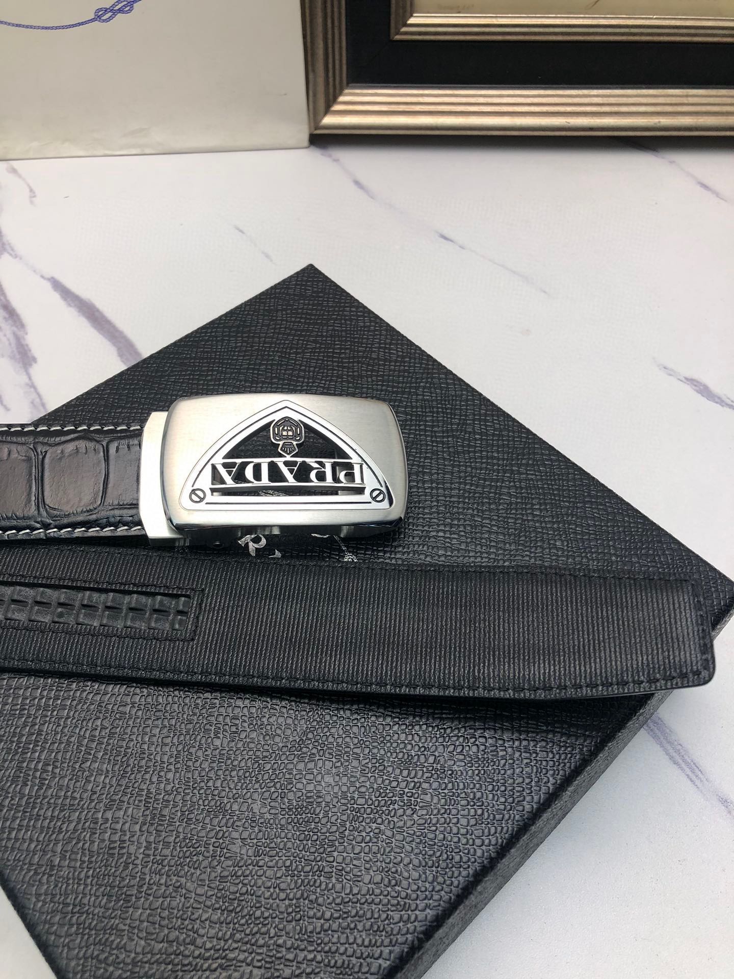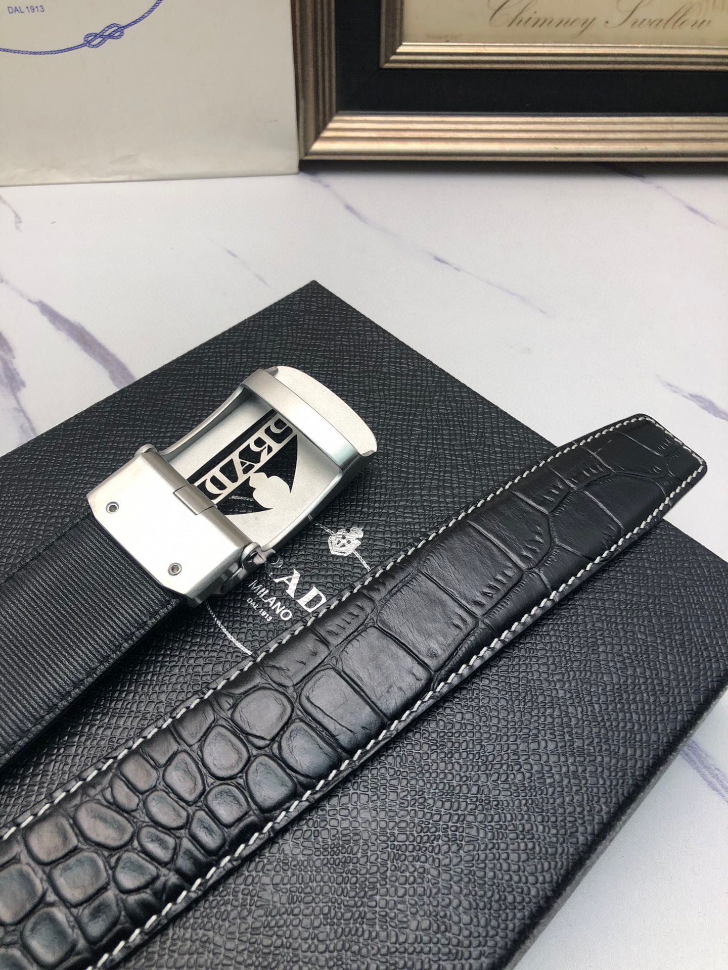 这款皮带是AAAAA 1:1 质量 (非常棒). 使用了和原版一模一样的材料. 商标部分也保持了和普拉达/Prada一样. 图片拍摄是实物皮带拍摄, 您所收到的实物保证和我们图片一模一样.