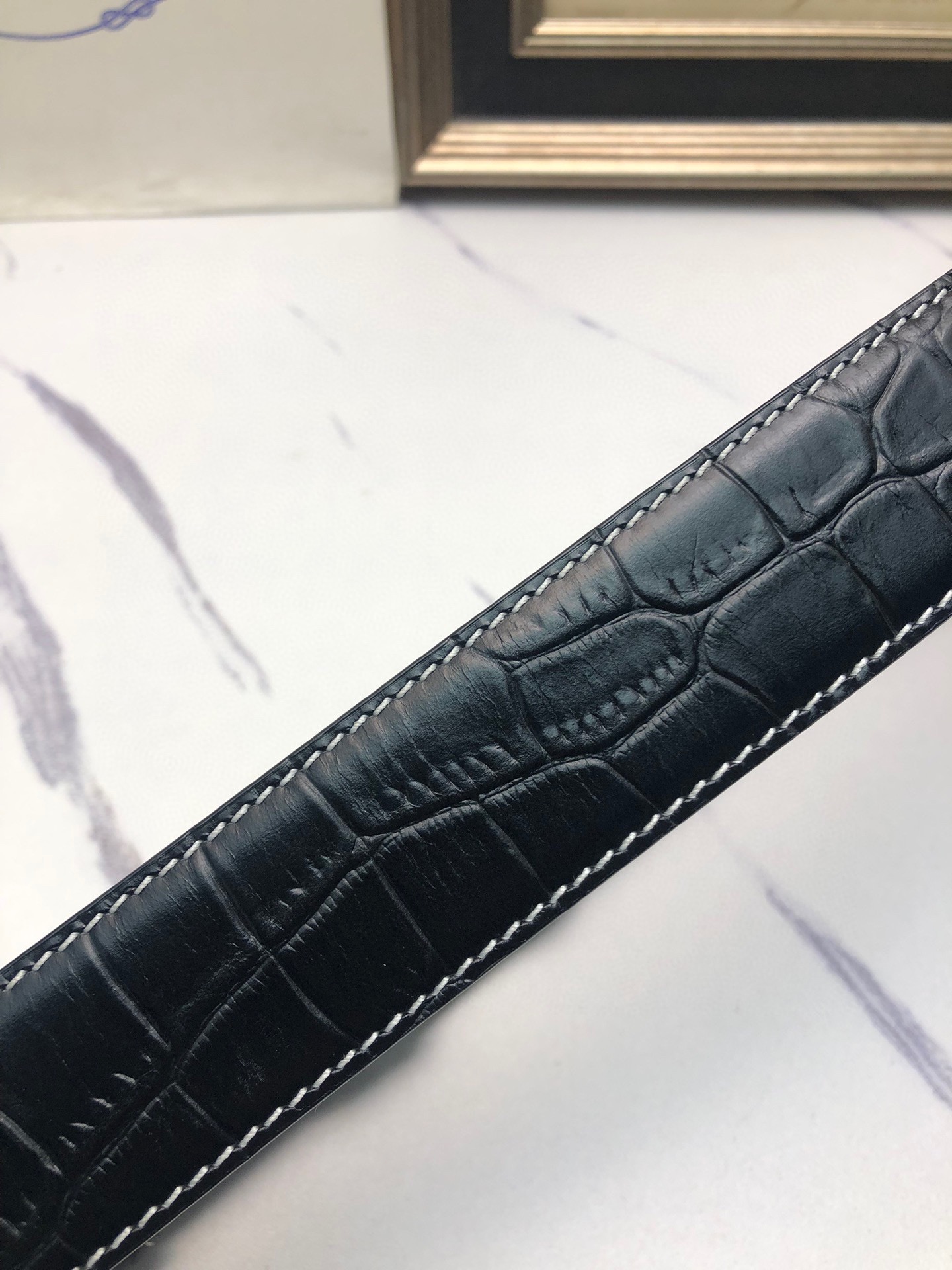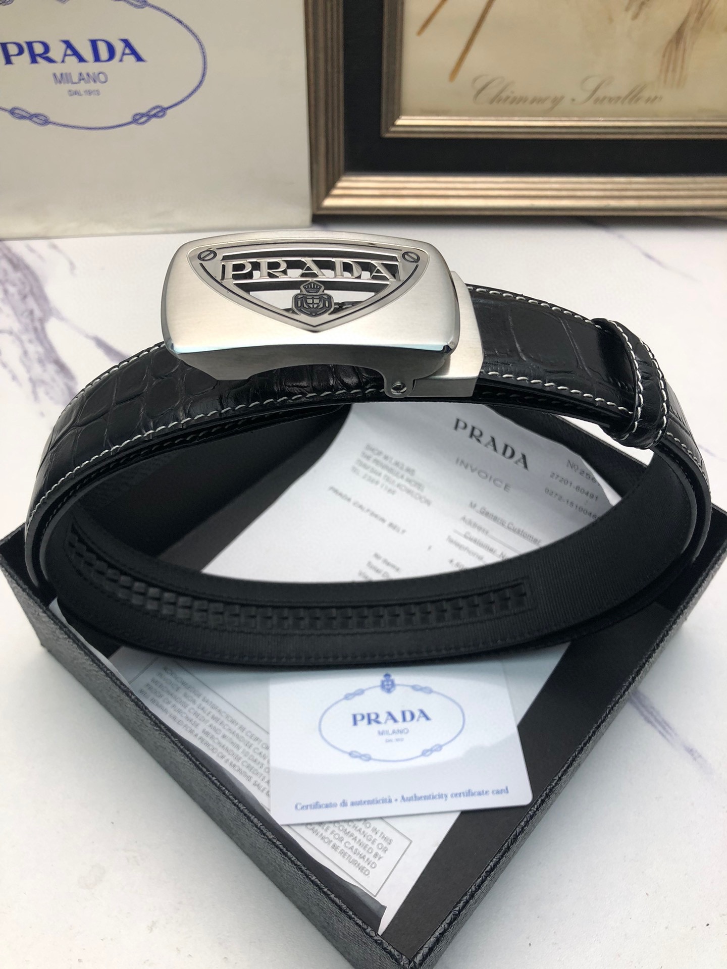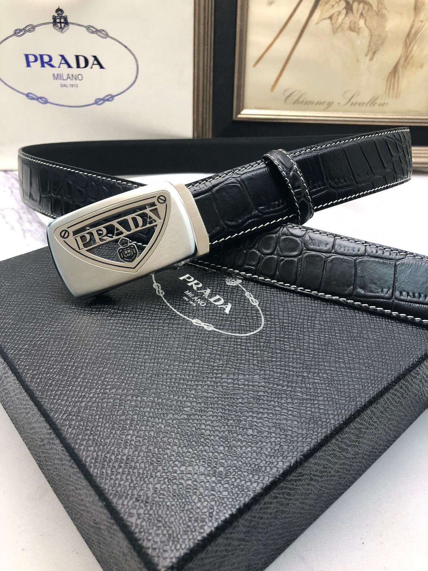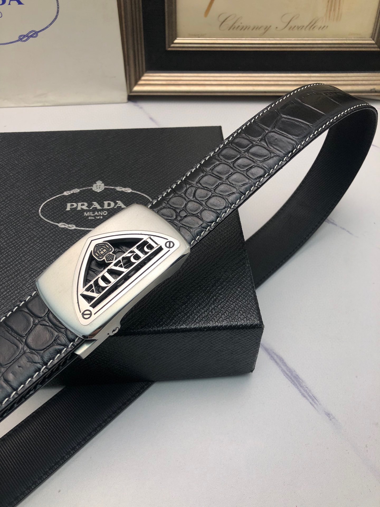 这款皮带是AAAAA 1:1 质量 (非常棒). 使用了和原版一模一样的材料. 商标部分也保持了和普拉达/Prada一样. 图片拍摄是实物皮带拍摄, 您所收到的实物保证和我们图片一模一样.