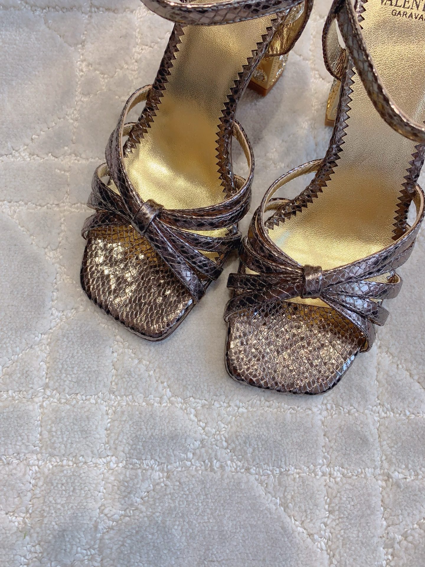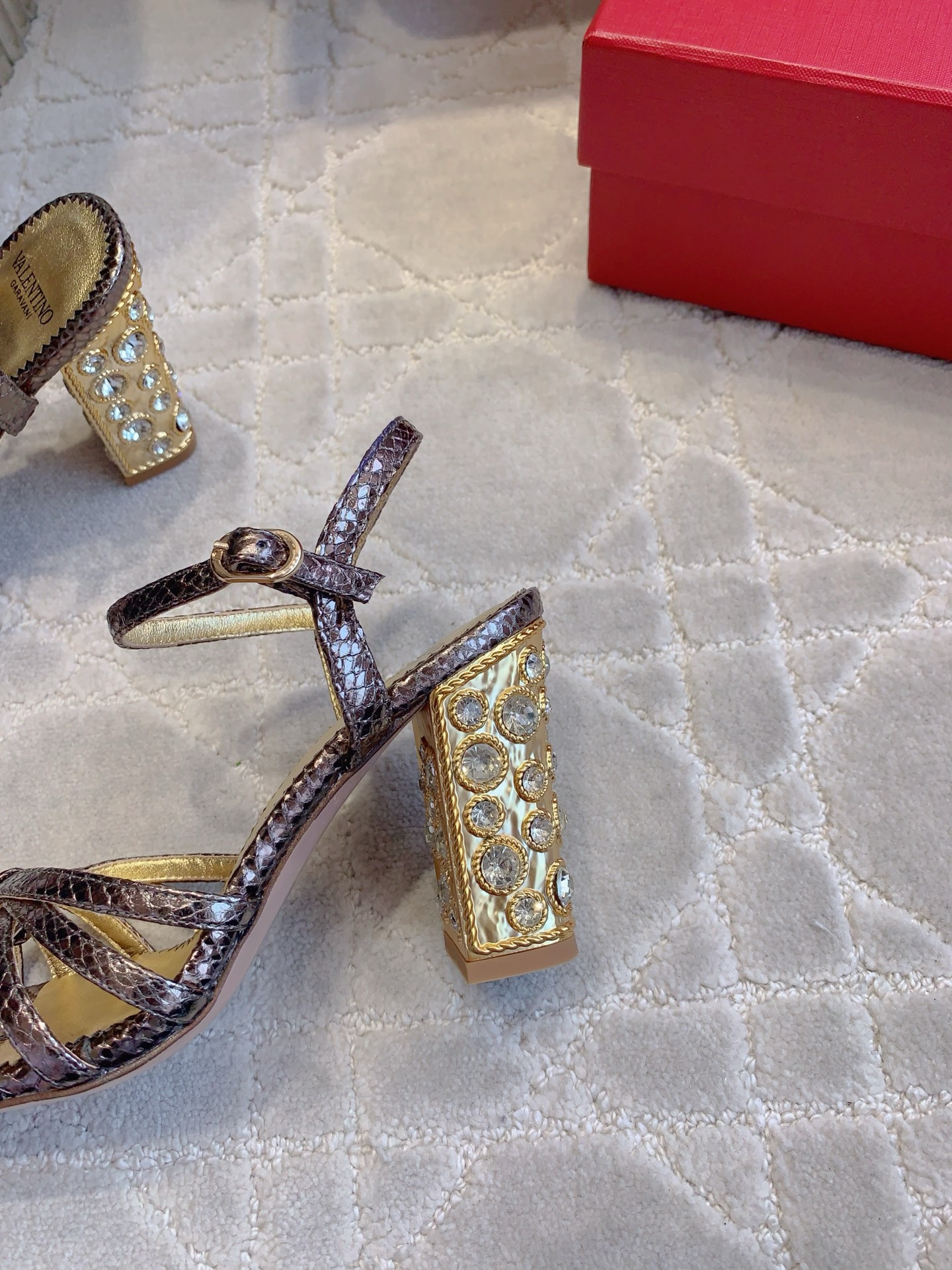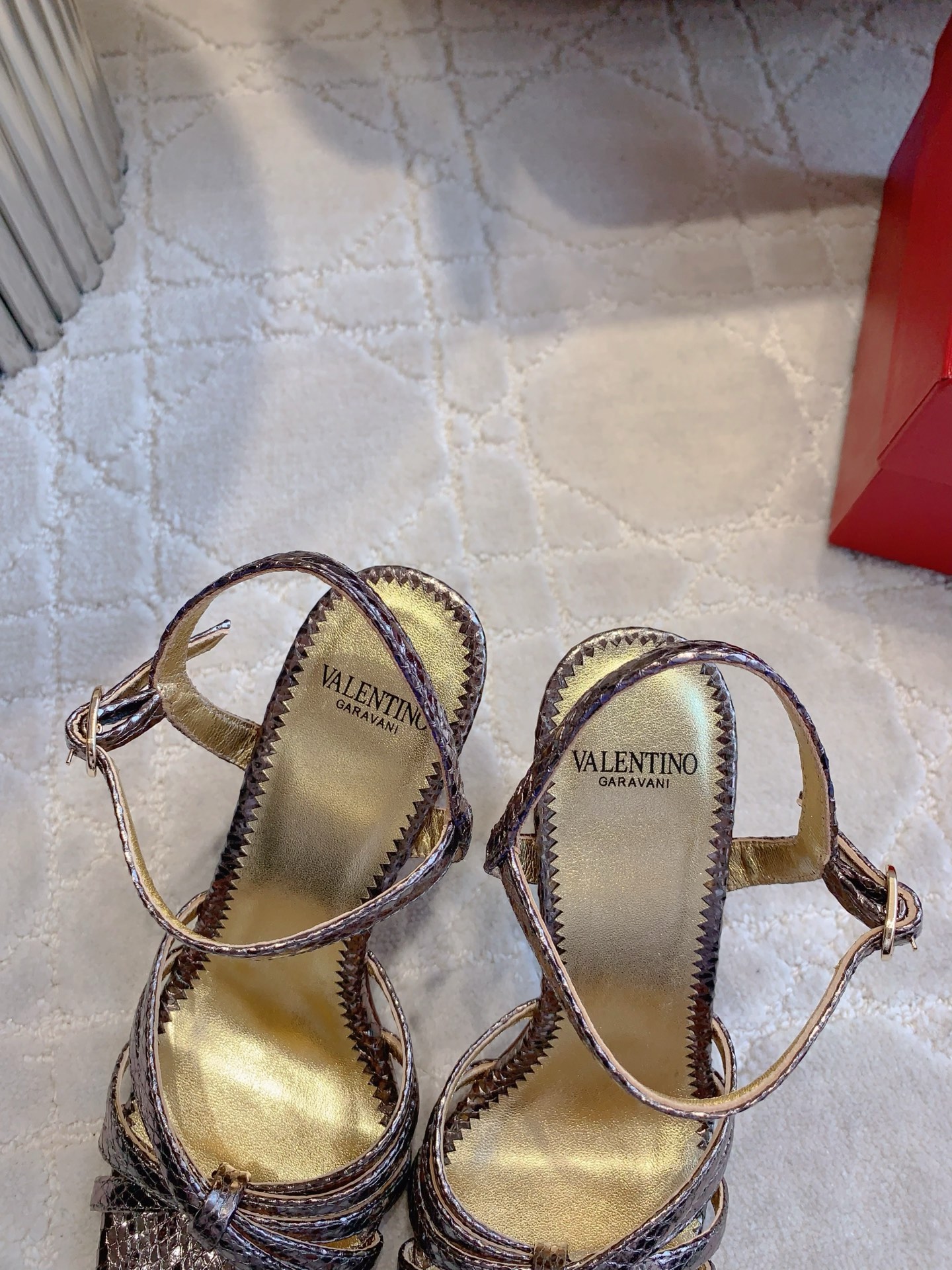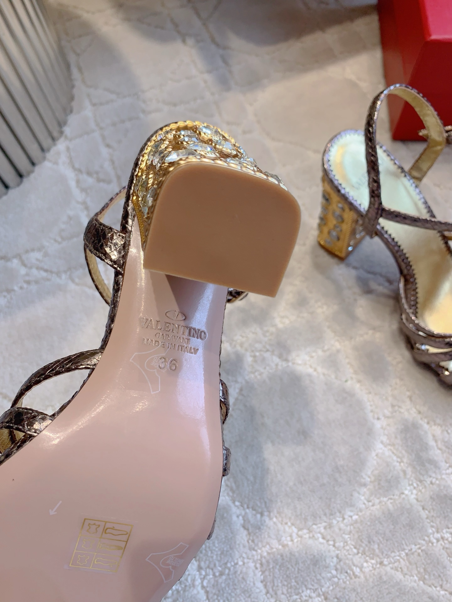 这款鞋子是AAAAA 1:1 质量 (非常棒). 使用了和原版一模一样的材料. 商标部分也保持了和华伦天奴/Valentino一样. 图片拍摄是实物鞋子拍摄, 您所收到的实物保证和我们图片一模一样.