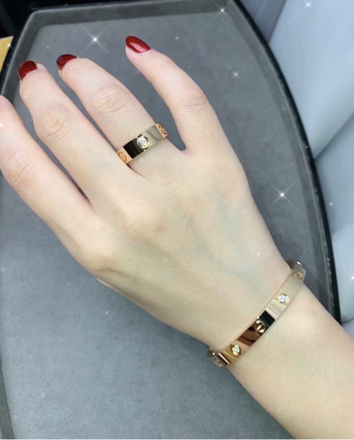 这款首饰是AAAAA 1:1 质量 (非常棒). 使用了和原版一模一样的材料. 商标部分也保持了和卡地亚/Cartier一样. 图片拍摄是实物首饰拍摄, 您所收到的实物保证和我们图片一模一样.