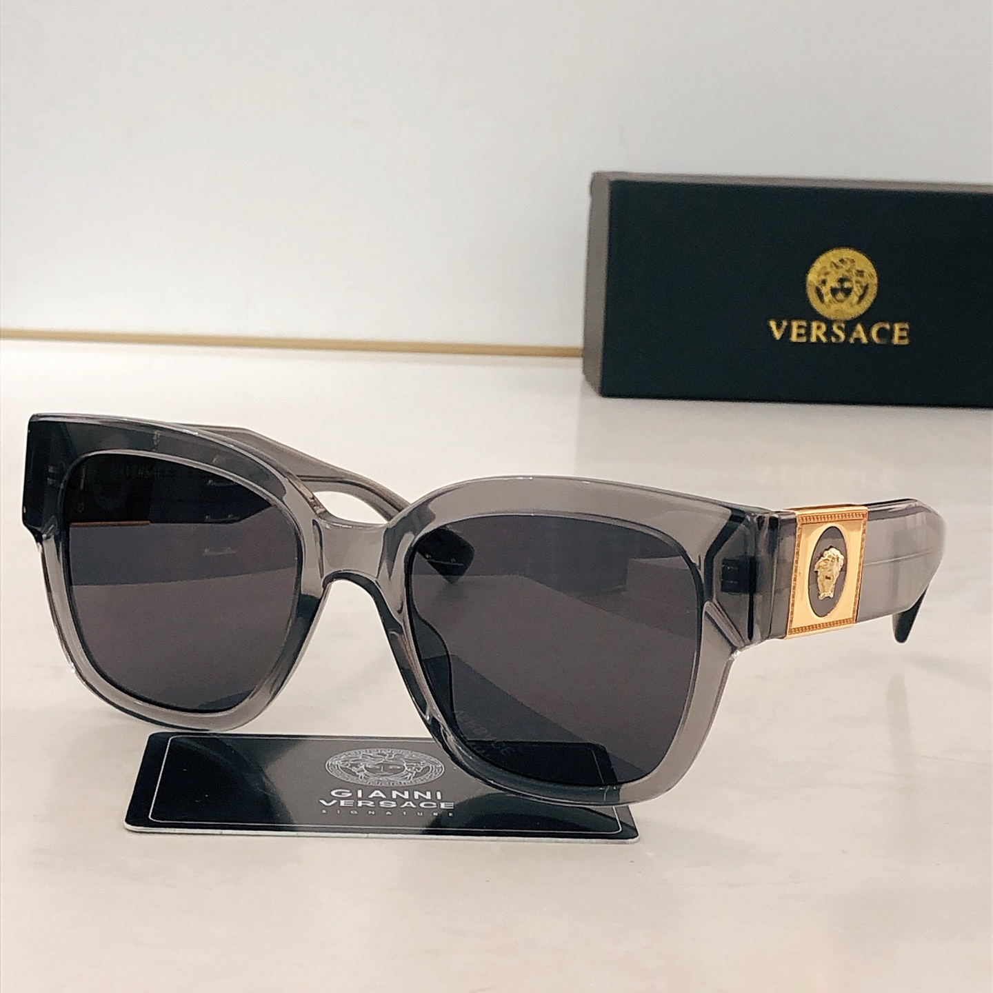 这款太阳眼镜是AAAAA 1:1 质量 (非常棒). 使用了和原版一模一样的材料. 商标部分也保持了和范思哲/Versace一样. 图片拍摄是实物太阳眼镜拍摄, 您所收到的实物保证和我们图片一模一样.