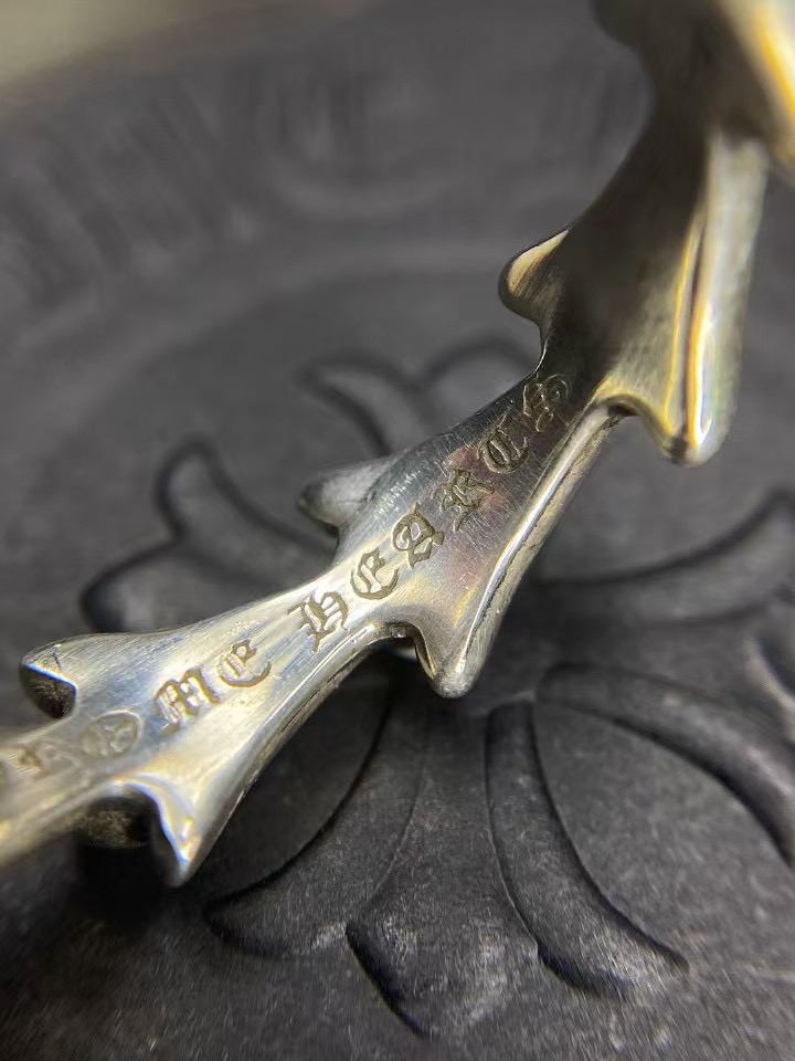 这款首饰是AAAAA 1:1 质量 (非常棒). 使用了和原版一模一样的材料. 商标部分也保持了和克罗心/Chrome Hearts一样. 图片拍摄是实物首饰拍摄, 您所收到的实物保证和我们图片一模一样.