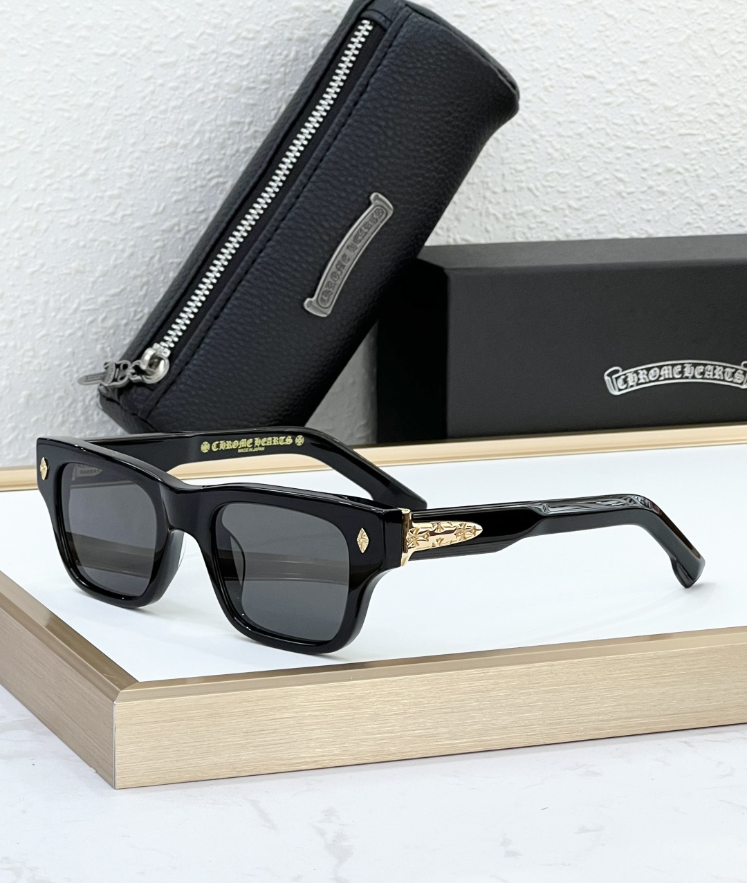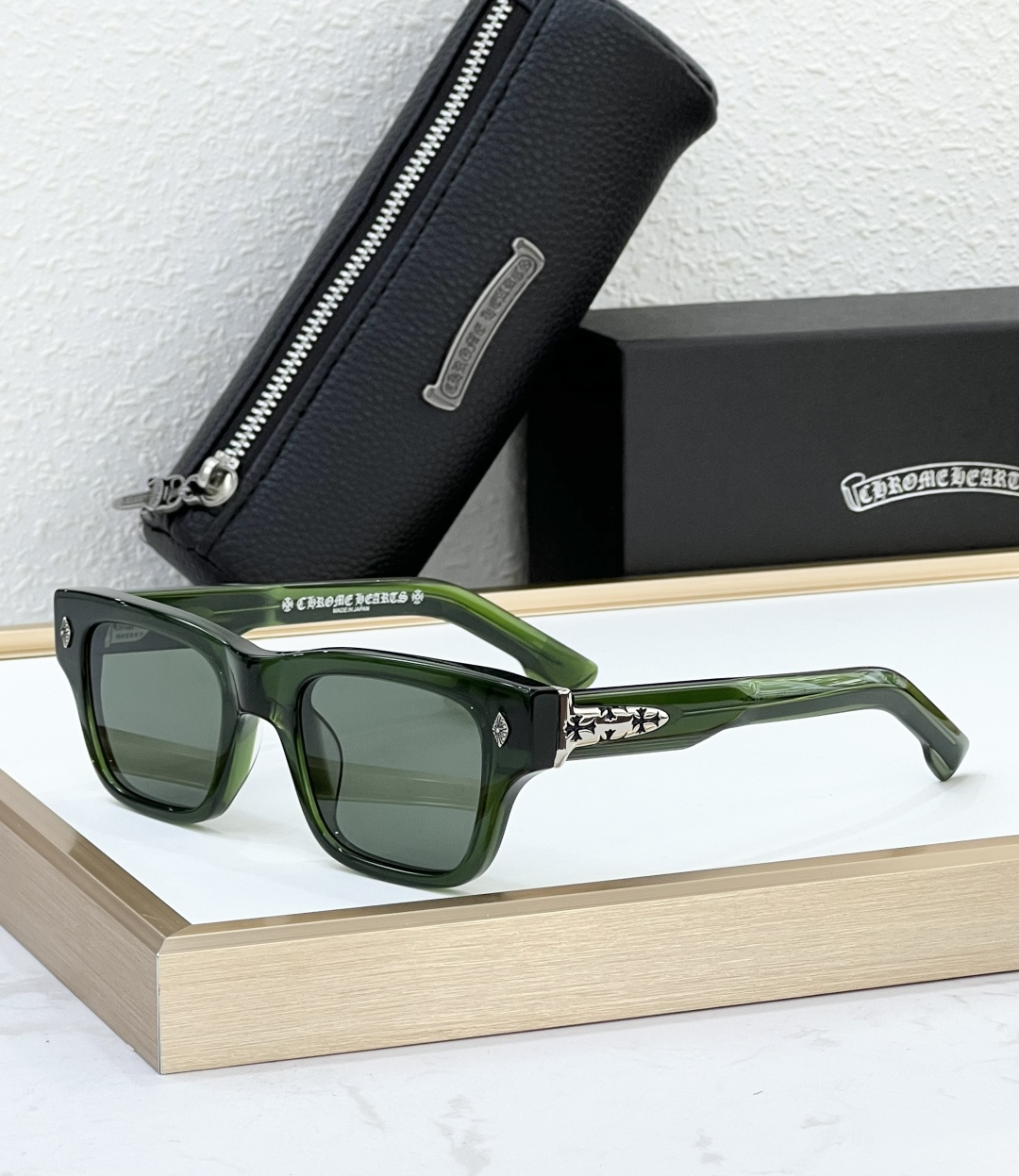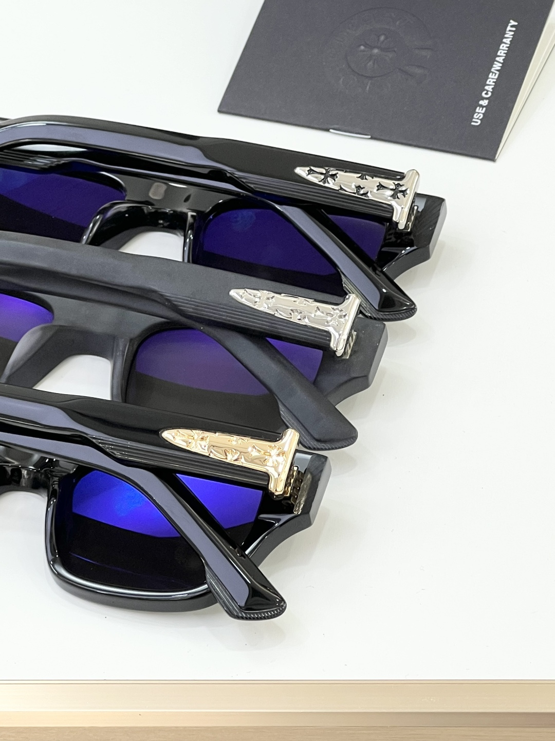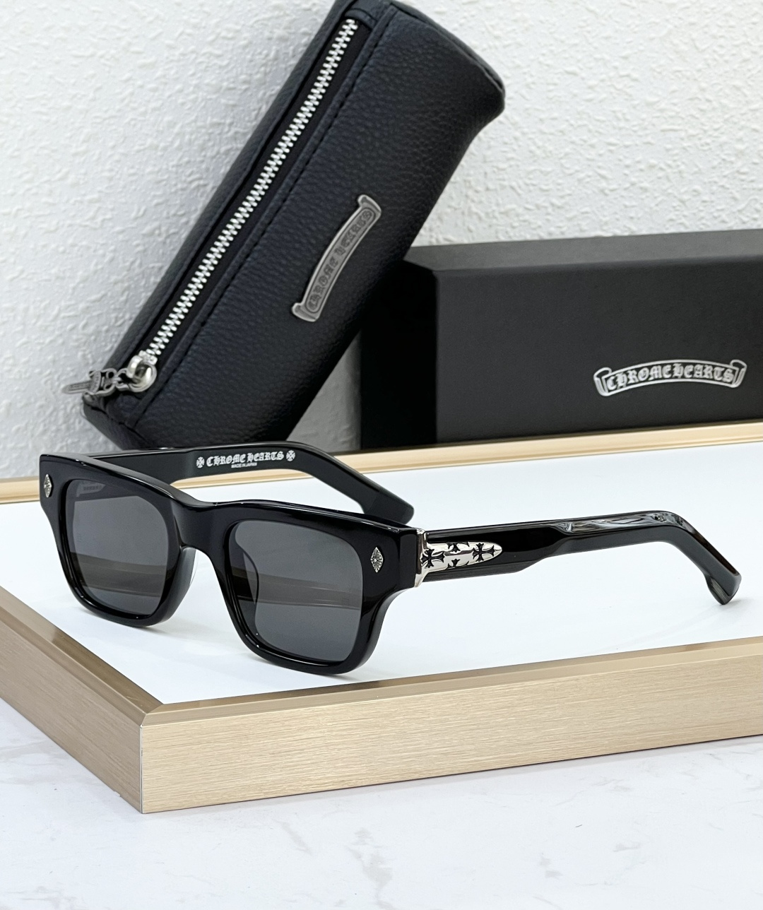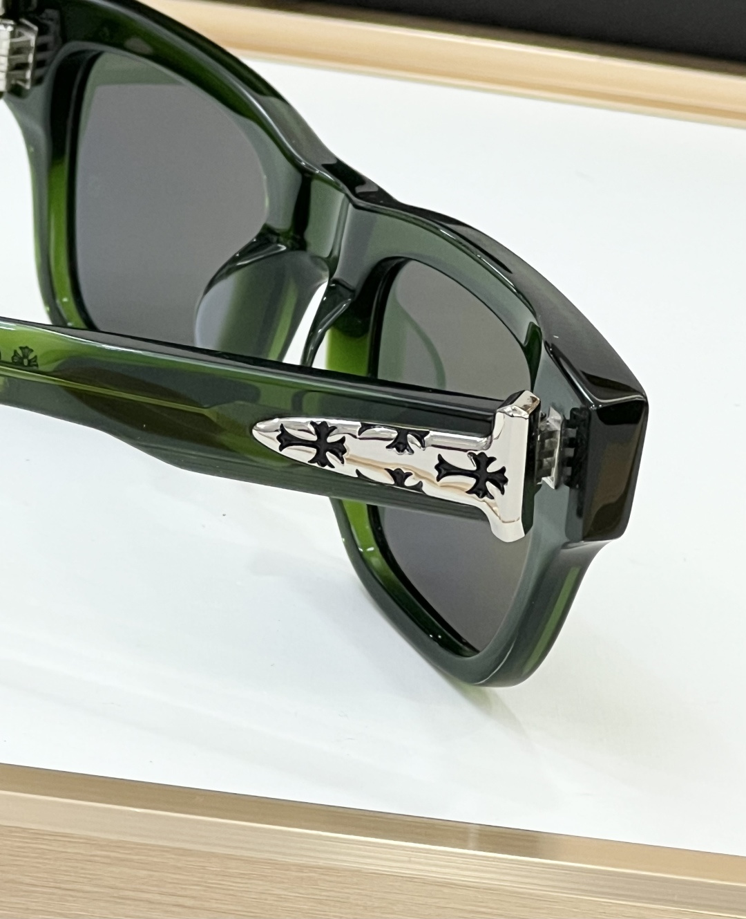 这款太阳眼镜是AAAAA 1:1 质量 (非常棒). 使用了和原版一模一样的材料. 商标部分也保持了和克罗心/Chrome Hearts一样. 图片拍摄是实物太阳眼镜拍摄, 您所收到的实物保证和我们图片一模一样.