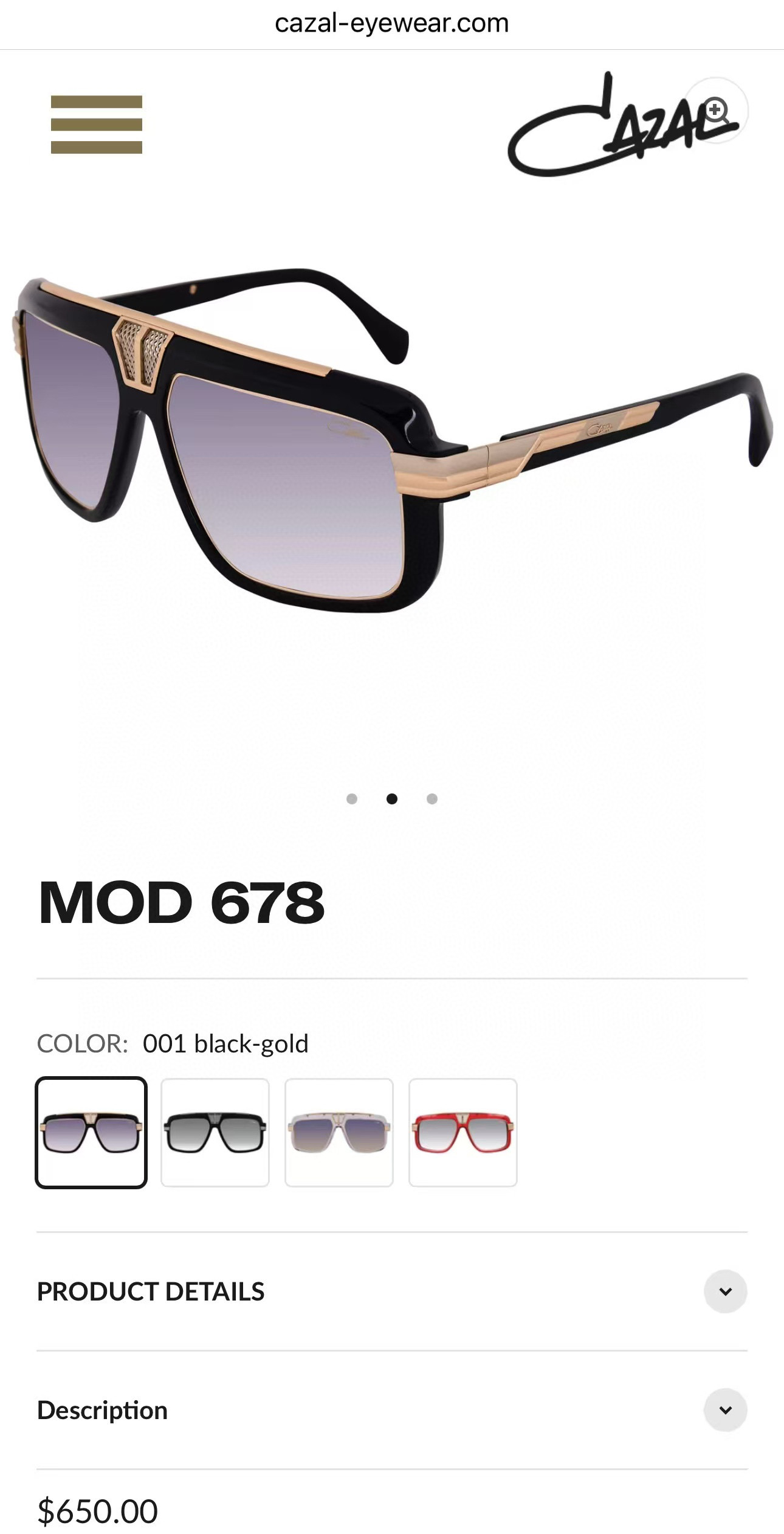 这款太阳眼镜是AAAAA 1:1 质量 (非常棒). 使用了和原版一模一样的材料. 商标部分也保持了和Cazal一样. 图片拍摄是实物太阳眼镜拍摄, 您所收到的实物保证和我们图片一模一样.