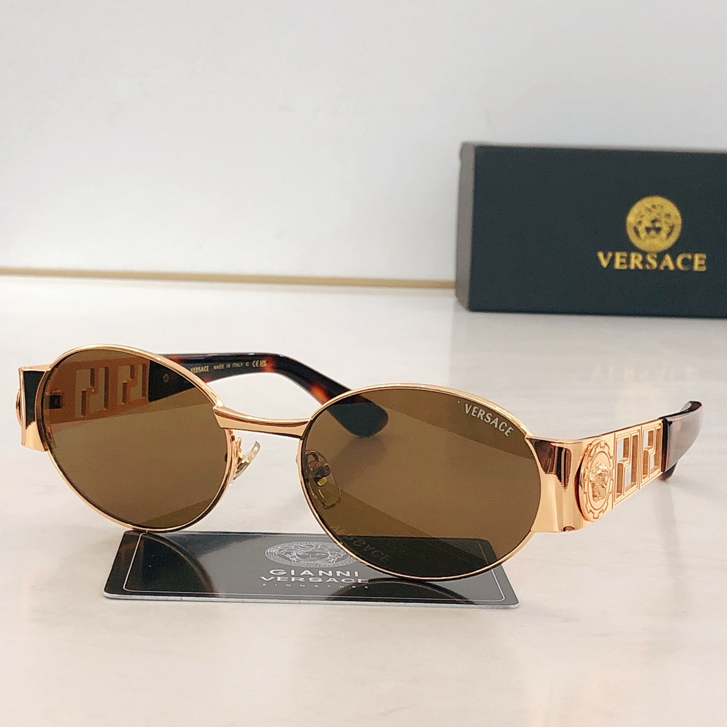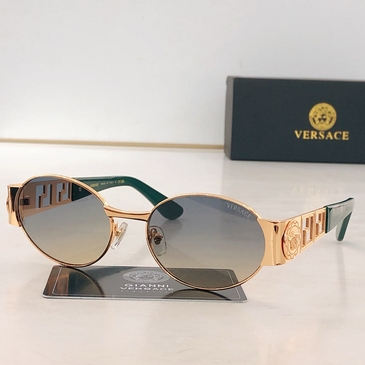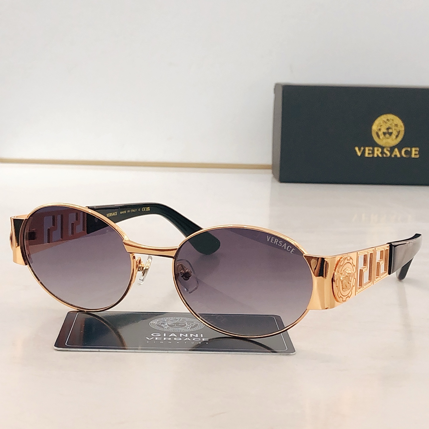 这款太阳眼镜是AAAAA 1:1 质量 (非常棒). 使用了和原版一模一样的材料. 商标部分也保持了和范思哲/Versace一样. 图片拍摄是实物太阳眼镜拍摄, 您所收到的实物保证和我们图片一模一样.
