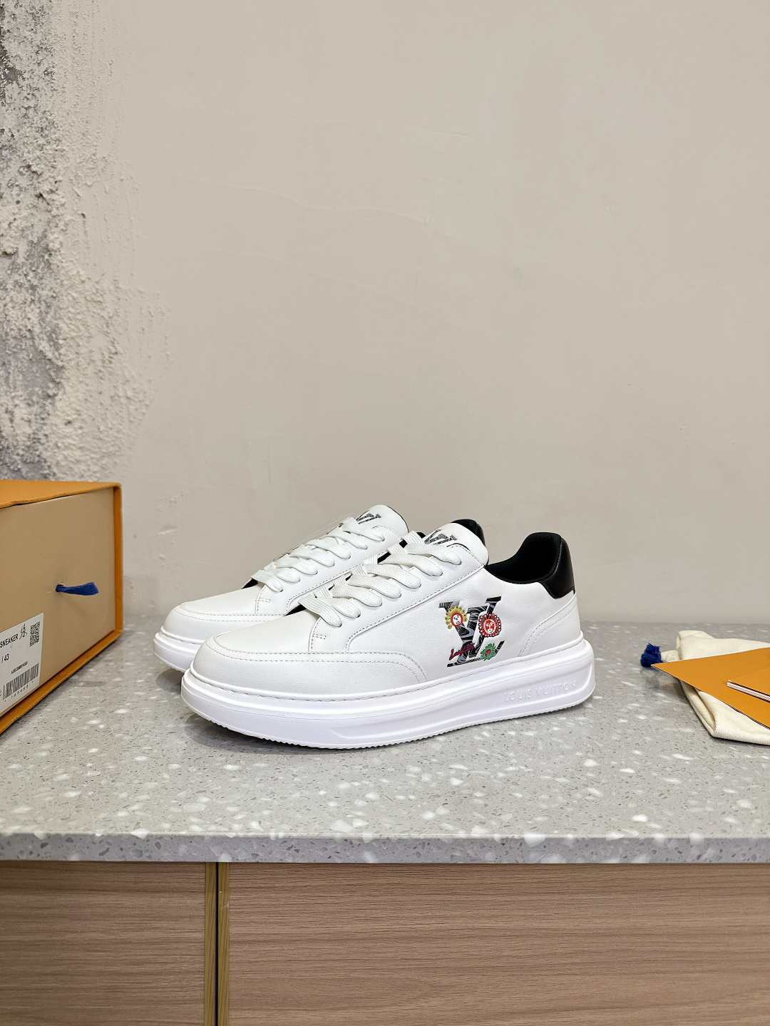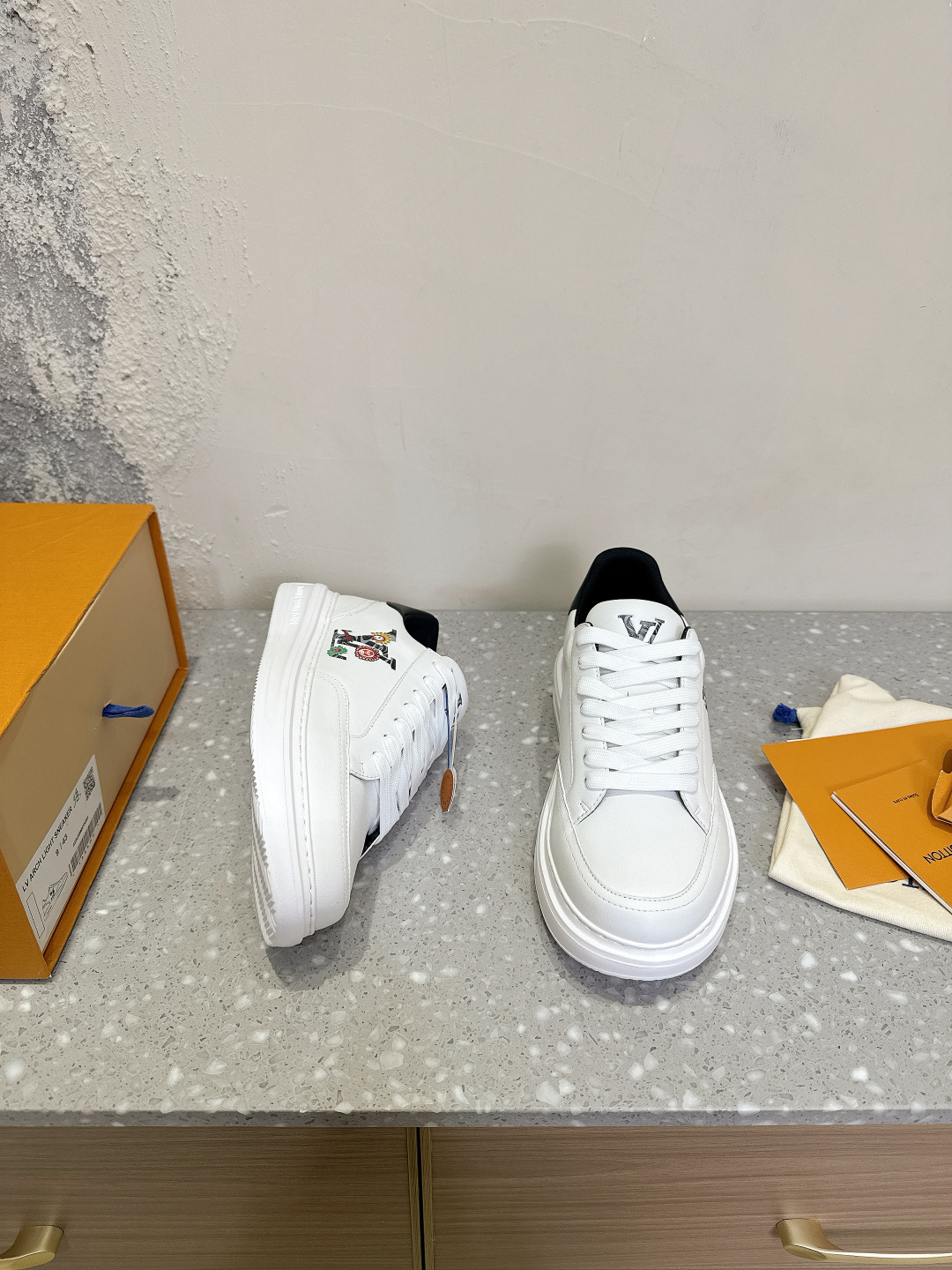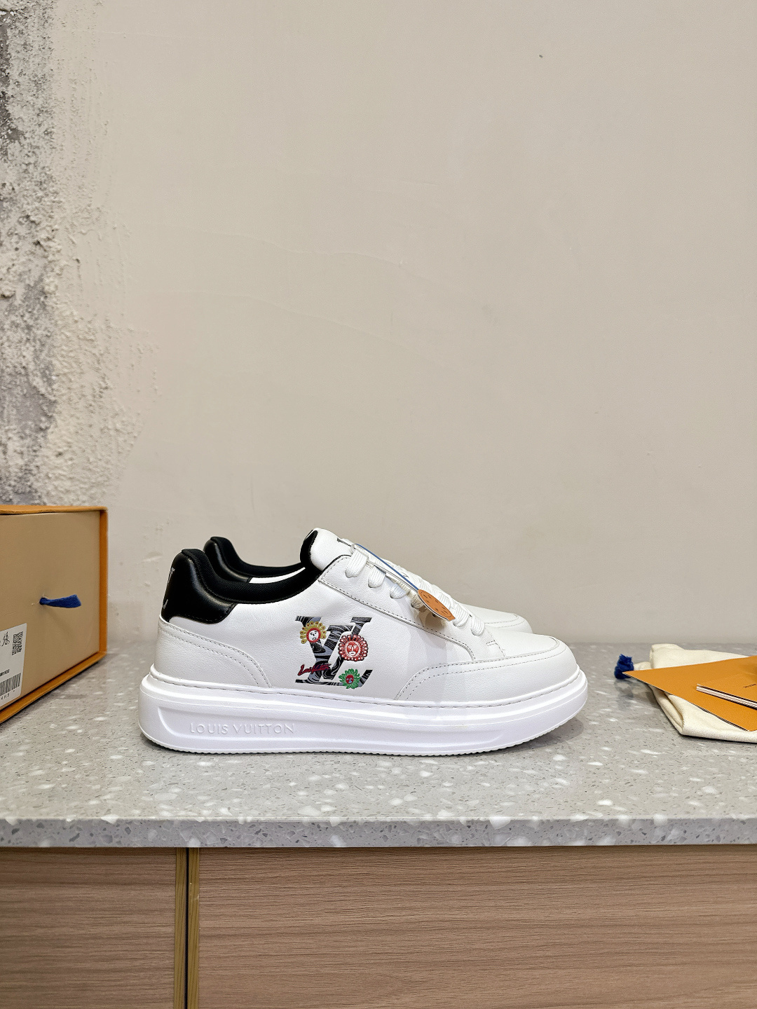 这款鞋子是AAAAA 1:1 质量 (非常棒). 使用了和原版一模一样的材料. 商标部分也保持了和路易威登/Louis Vuitton一样. 图片拍摄是实物鞋子拍摄, 您所收到的实物保证和我们图片一模一样.