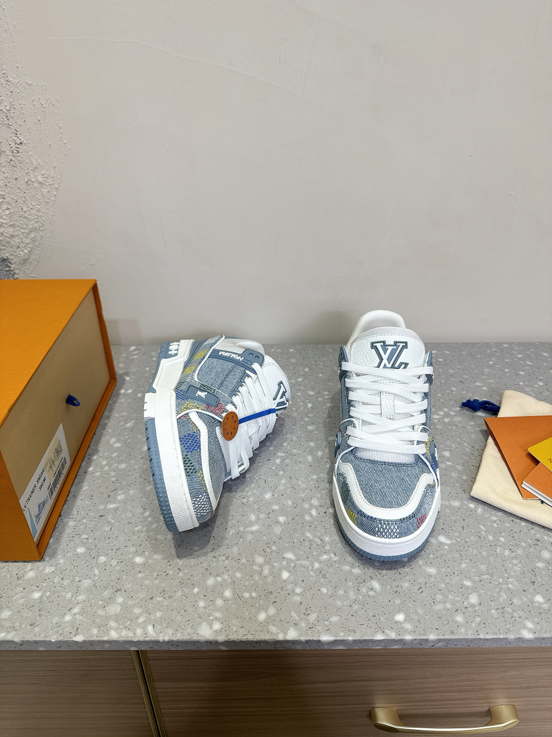 这款鞋子是AAAAA 1:1 质量 (非常棒). 使用了和原版一模一样的材料. 商标部分也保持了和路易威登/Louis Vuitton一样. 图片拍摄是实物鞋子拍摄, 您所收到的实物保证和我们图片一模一样.