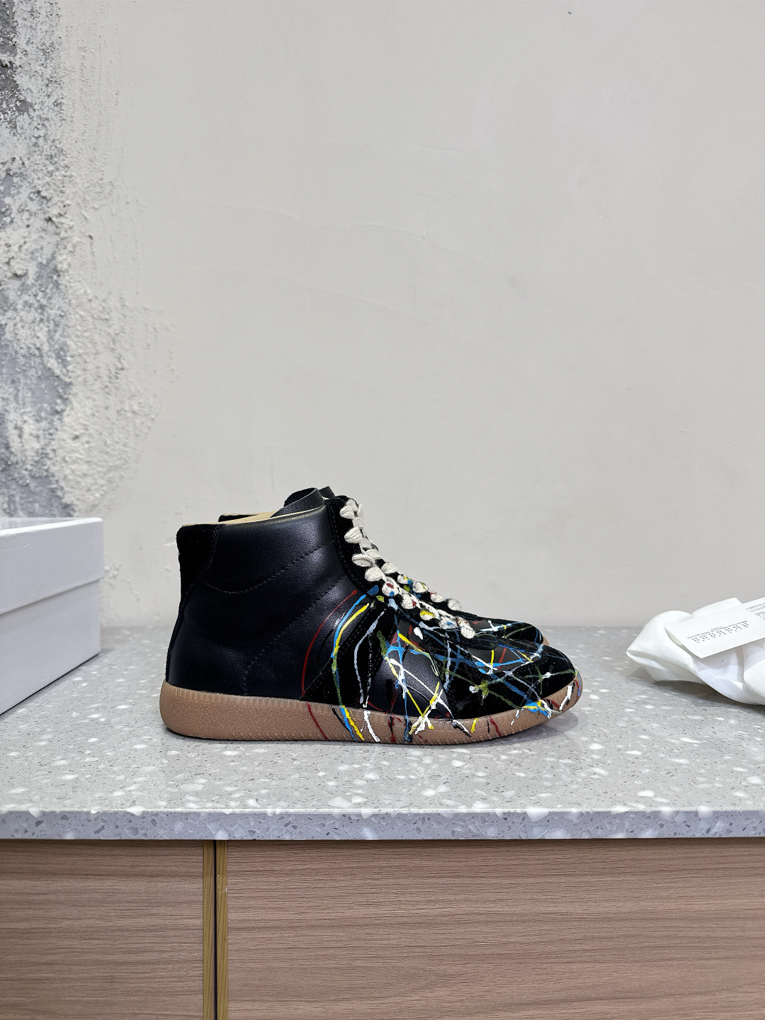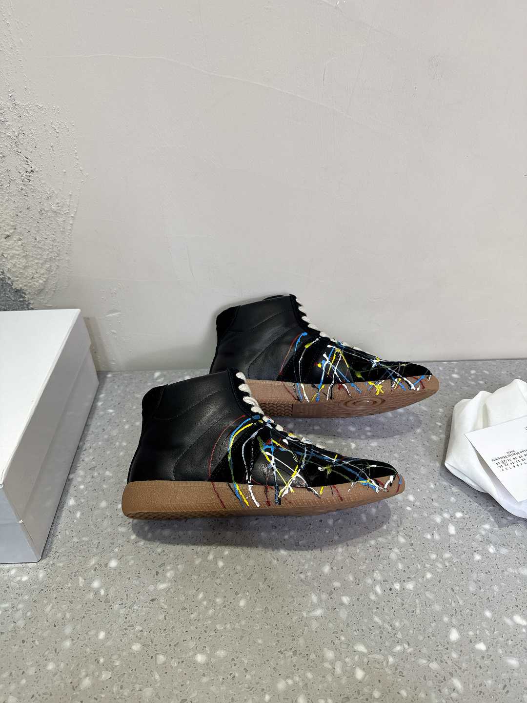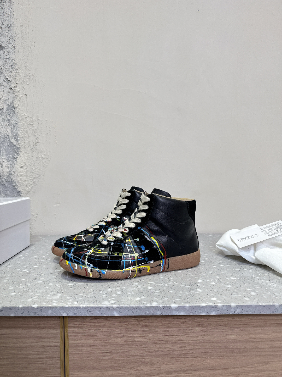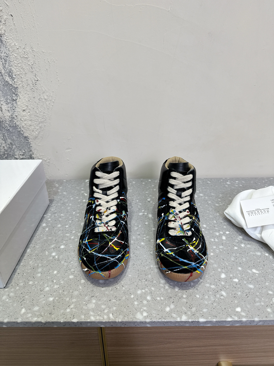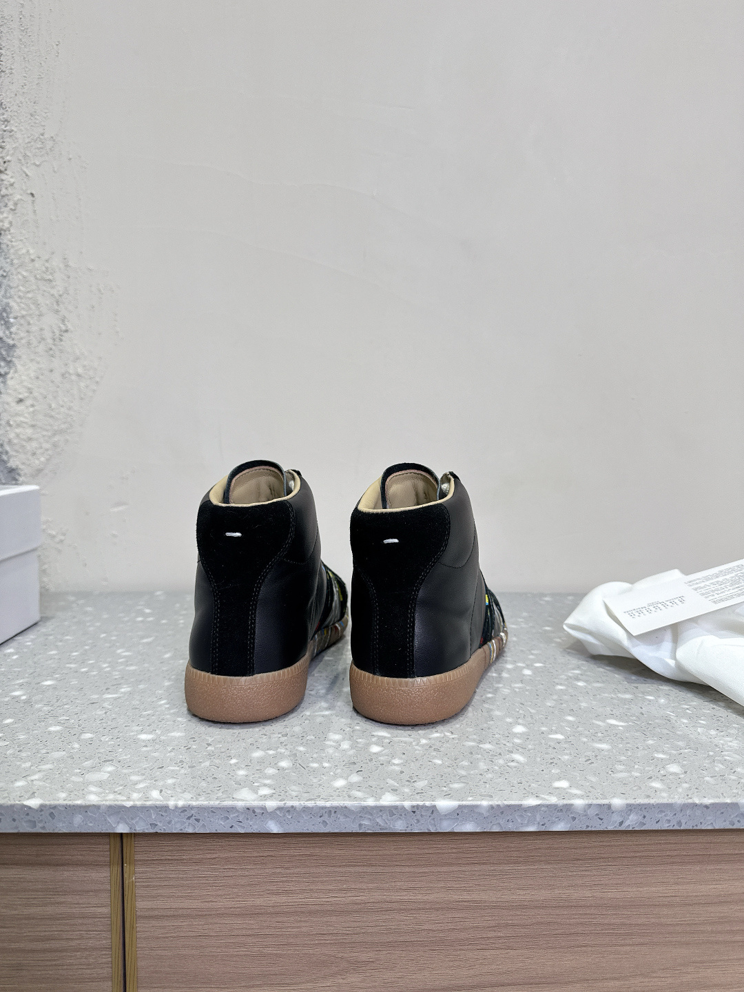 这款鞋子是AAAAA 1:1 质量 (非常棒). 使用了和原版一模一样的材料. 商标部分也保持了和Maison Margiela一样. 图片拍摄是实物鞋子拍摄, 您所收到的实物保证和我们图片一模一样.