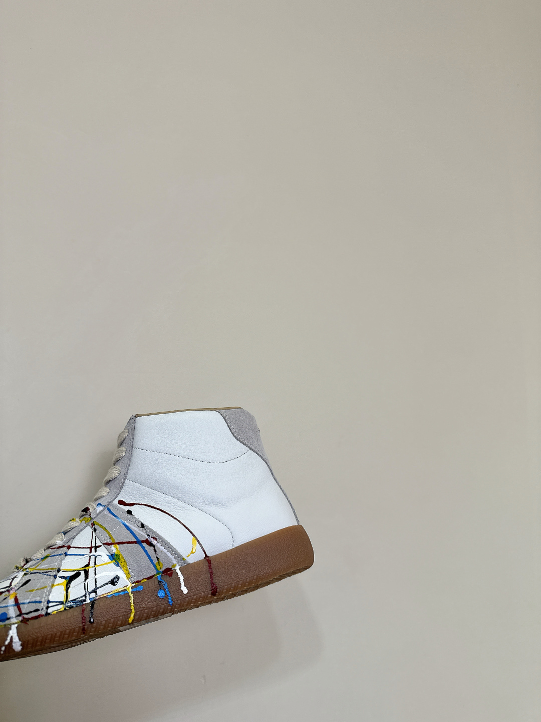 这款鞋子是AAAAA 1:1 质量 (非常棒). 使用了和原版一模一样的材料. 商标部分也保持了和Maison Margiela一样. 图片拍摄是实物鞋子拍摄, 您所收到的实物保证和我们图片一模一样.