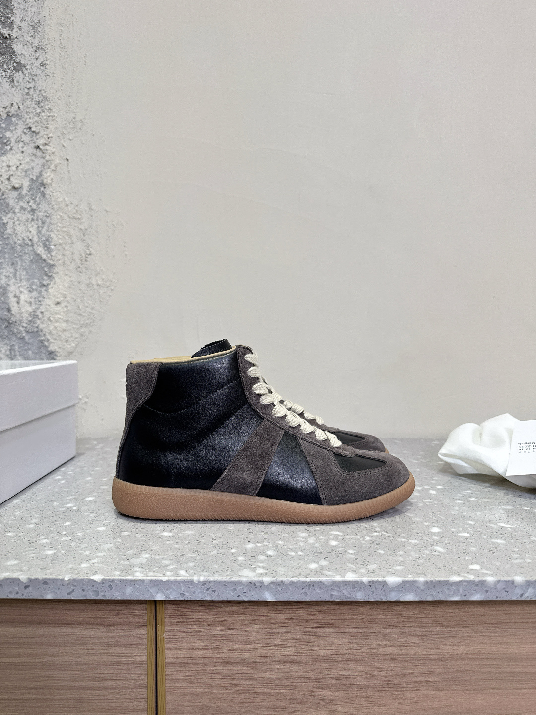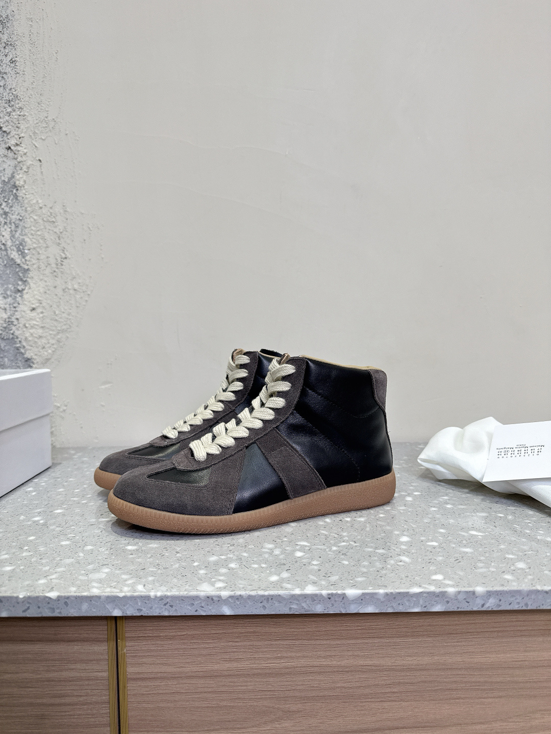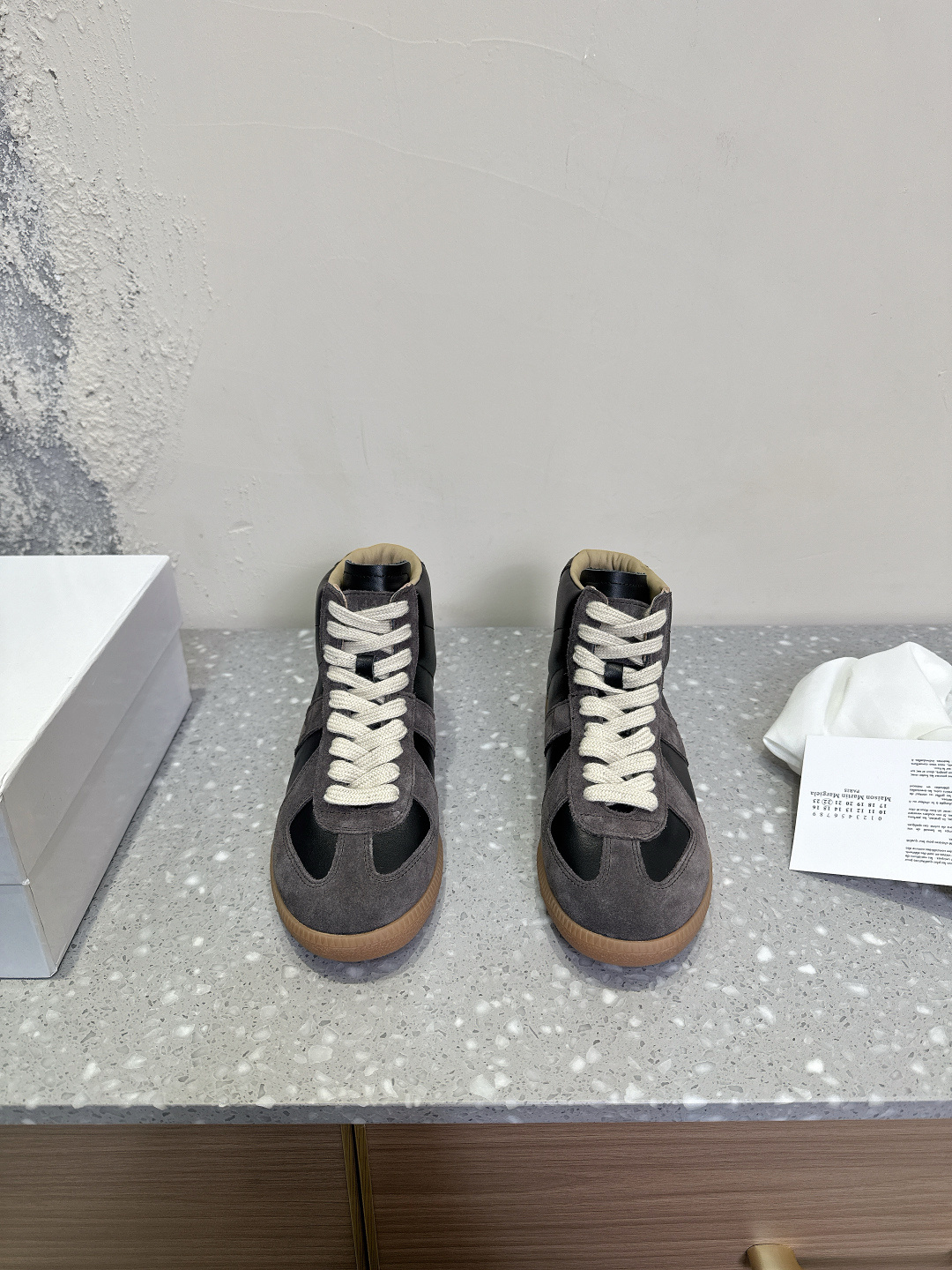这款鞋子是AAAAA 1:1 质量 (非常棒). 使用了和原版一模一样的材料. 商标部分也保持了和Maison Margiela一样. 图片拍摄是实物鞋子拍摄, 您所收到的实物保证和我们图片一模一样.