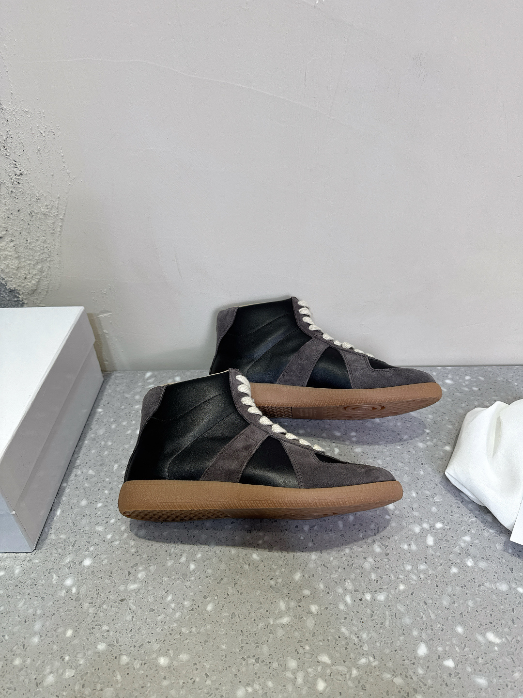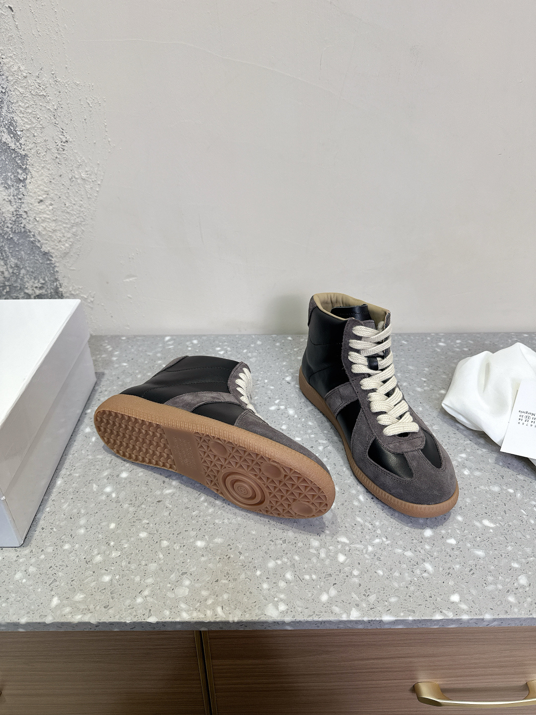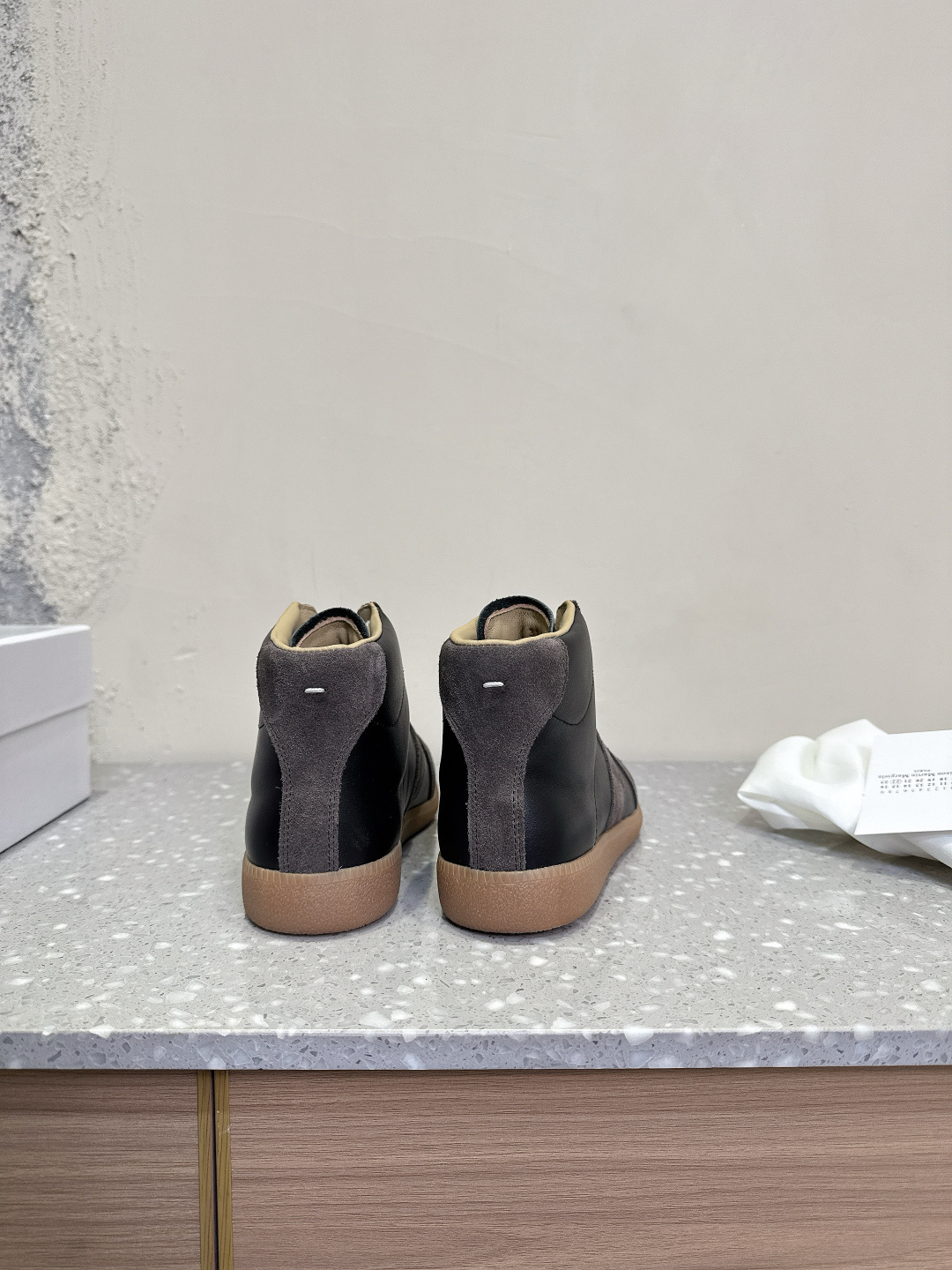 这款鞋子是AAAAA 1:1 质量 (非常棒). 使用了和原版一模一样的材料. 商标部分也保持了和Maison Margiela一样. 图片拍摄是实物鞋子拍摄, 您所收到的实物保证和我们图片一模一样.