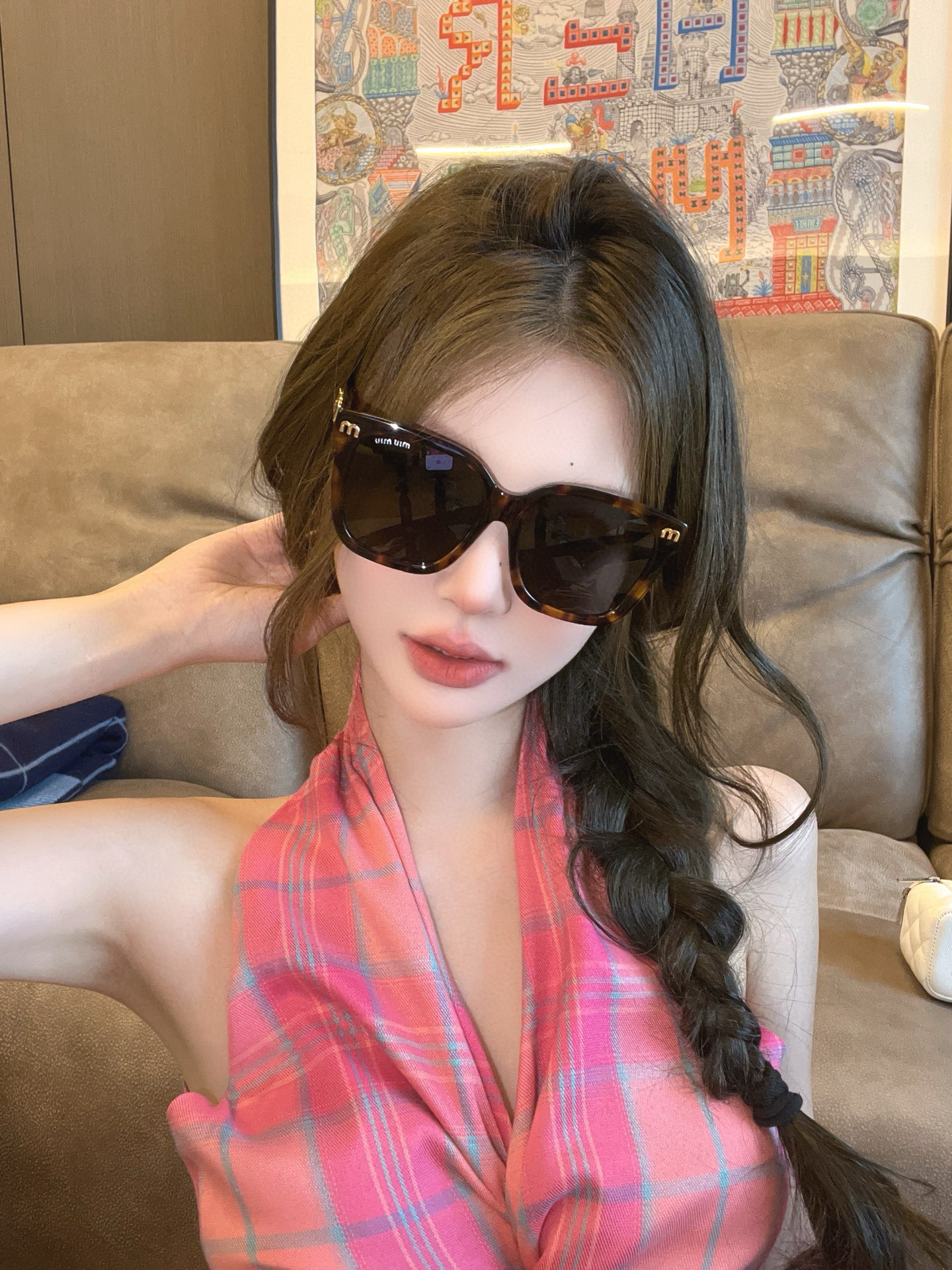 这款太阳眼镜是AAAAA 1:1 质量 (非常棒). 使用了和原版一模一样的材料. 商标部分也保持了和缪缪/Miu Miu一样. 图片拍摄是实物太阳眼镜拍摄, 您所收到的实物保证和我们图片一模一样.