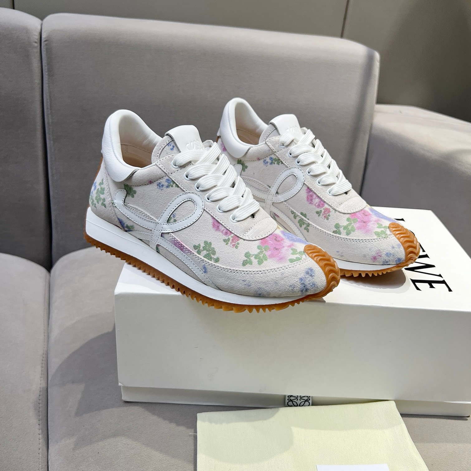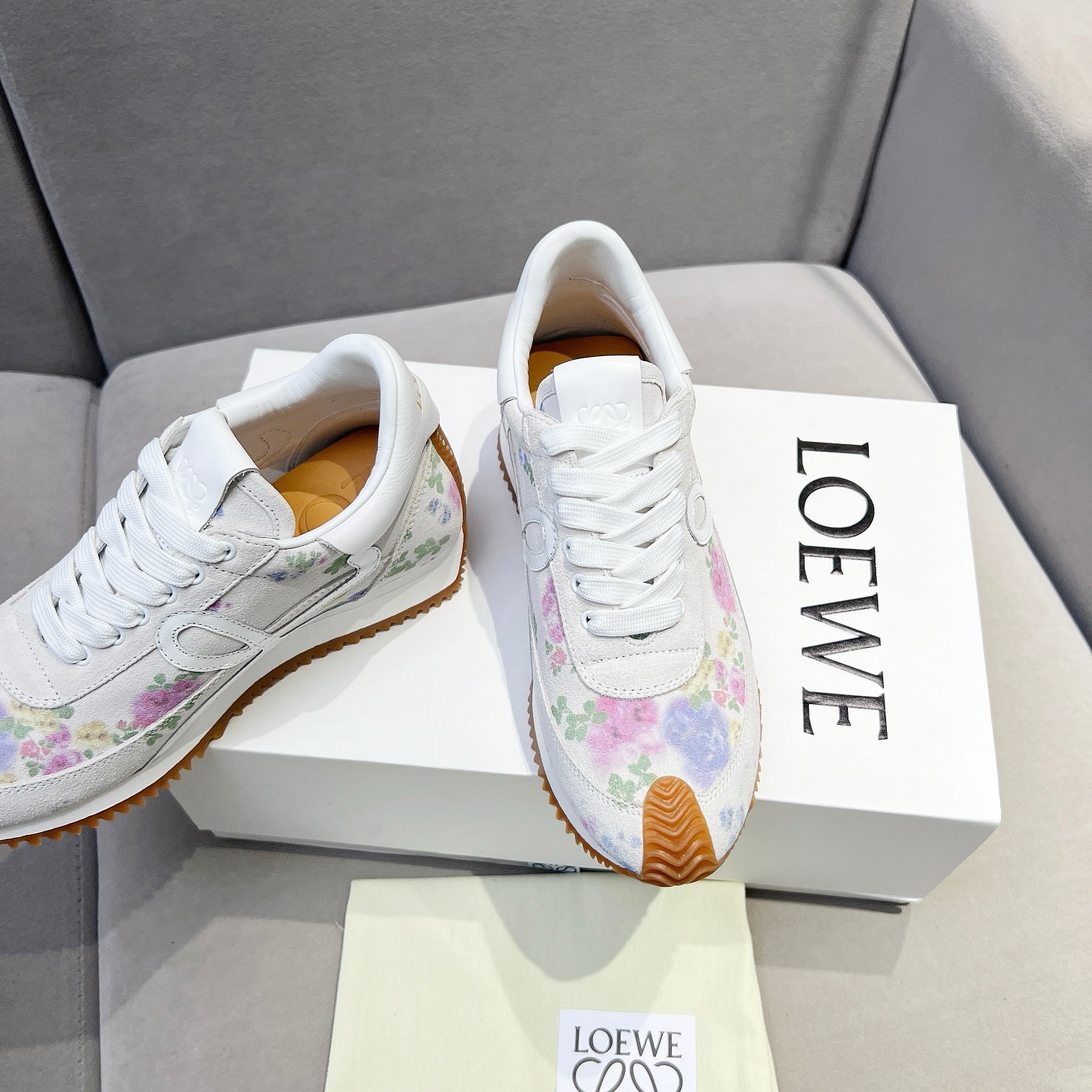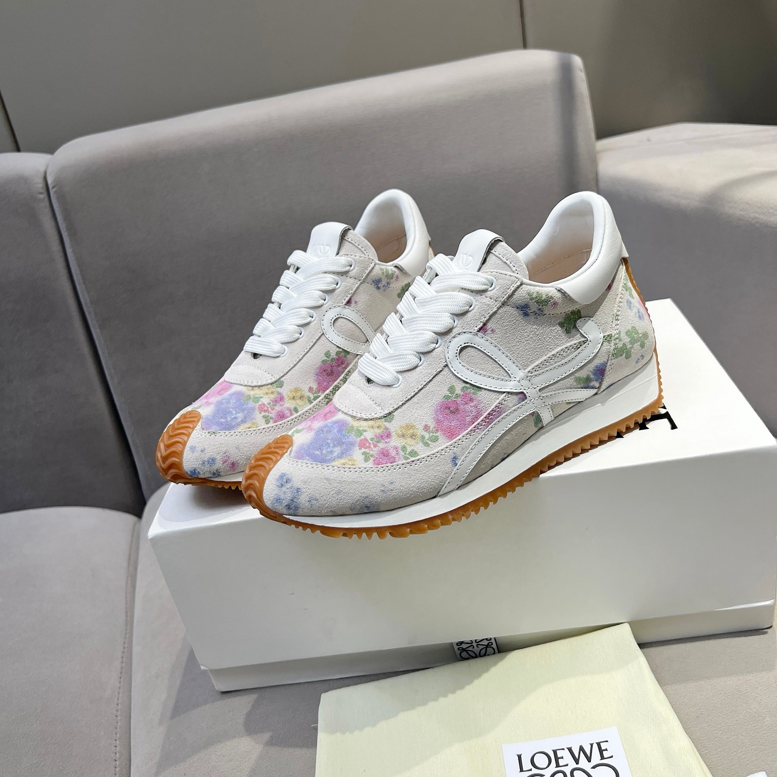 这款鞋子是AAAAA 1:1 质量 (非常棒). 使用了和原版一模一样的材料. 商标部分也保持了和罗意威/Loewe一样. 图片拍摄是实物鞋子拍摄, 您所收到的实物保证和我们图片一模一样.