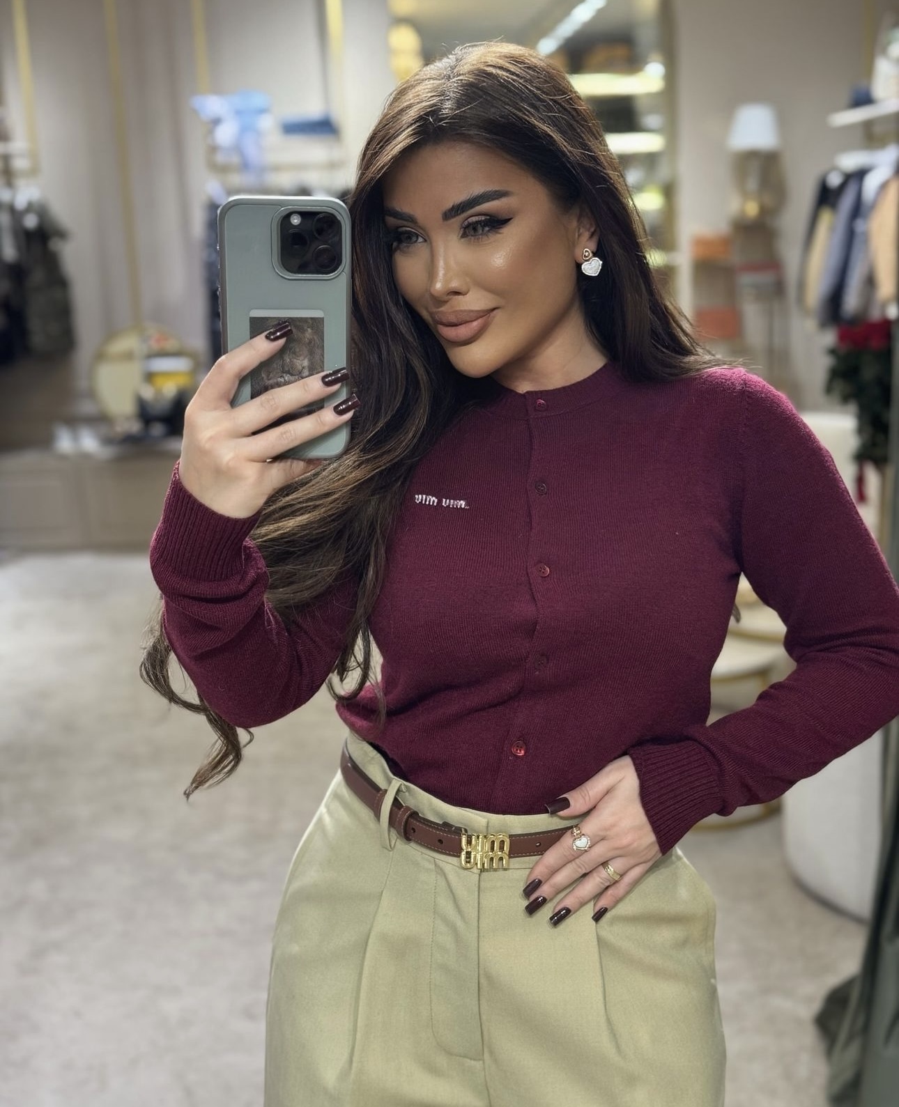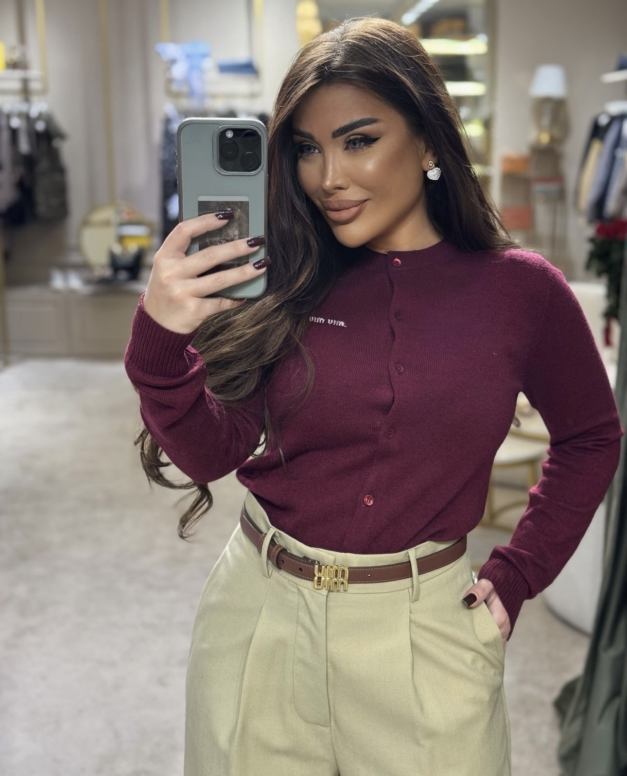 这款衣服是AAAAA 1:1 质量 (非常棒). 使用了和原版一模一样的材料. 商标部分也保持了和缪缪/Miu Miu一样. 图片拍摄是实物衣服拍摄, 您所收到的实物保证和我们图片一模一样.