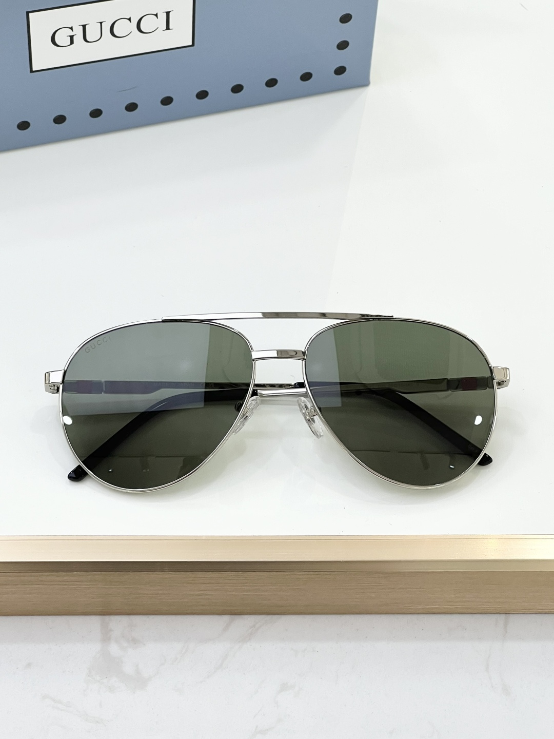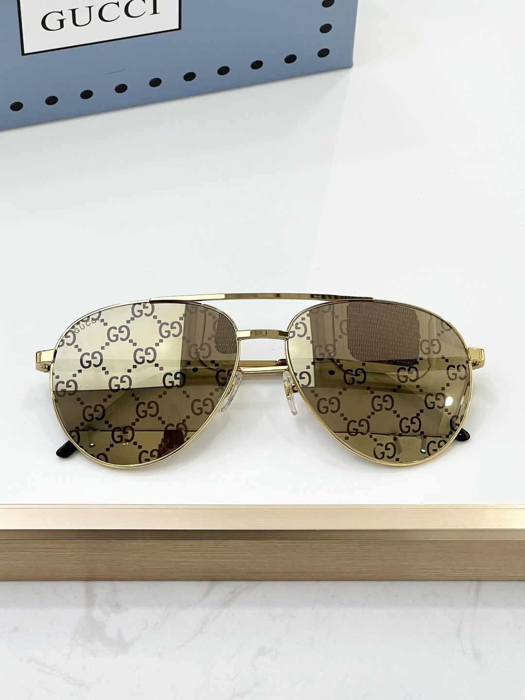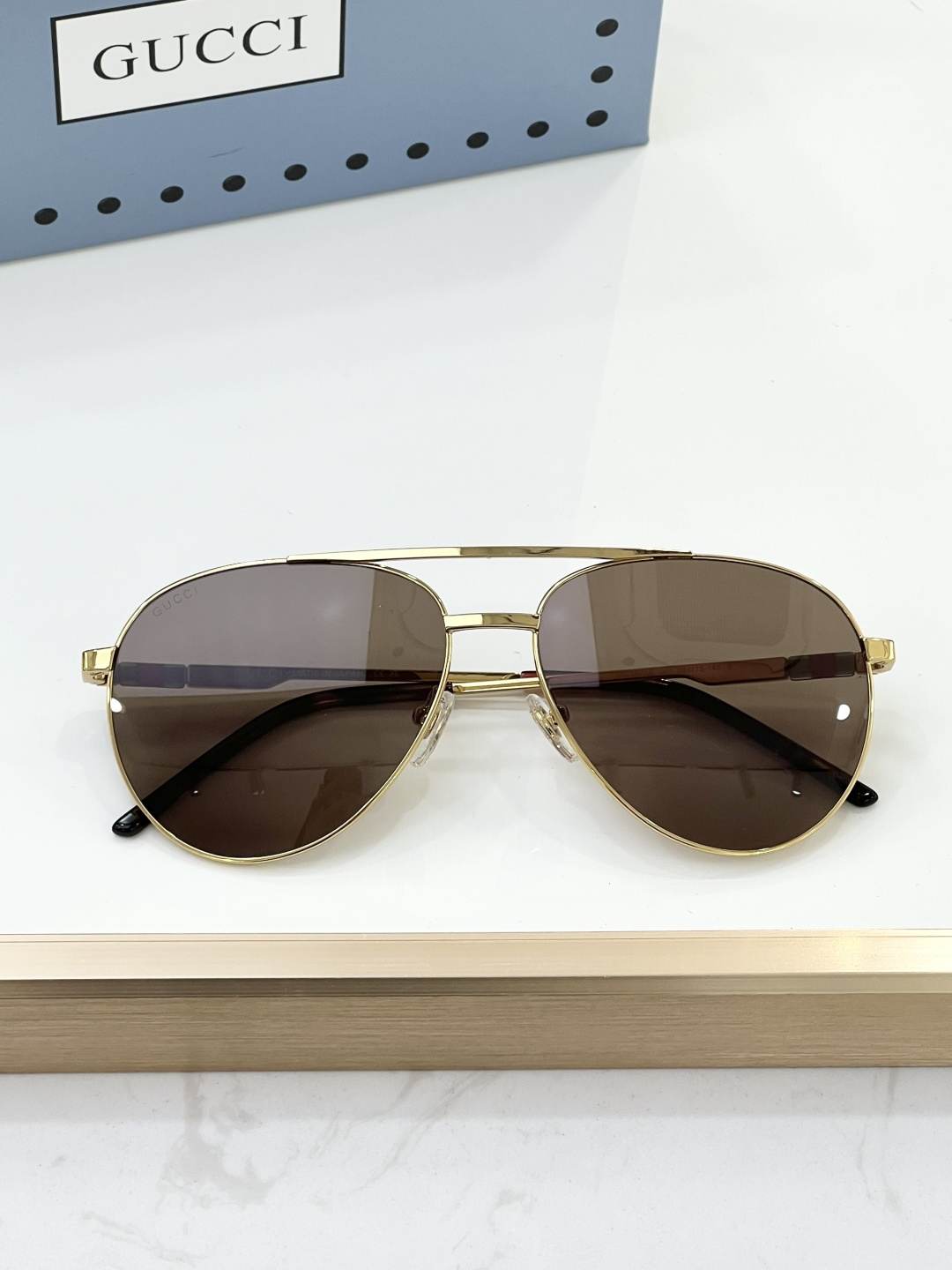 这款太阳眼镜是AAAAA 1:1 质量 (非常棒). 使用了和原版一模一样的材料. 商标部分也保持了和古奇/Gucci一样. 图片拍摄是实物太阳眼镜拍摄, 您所收到的实物保证和我们图片一模一样.