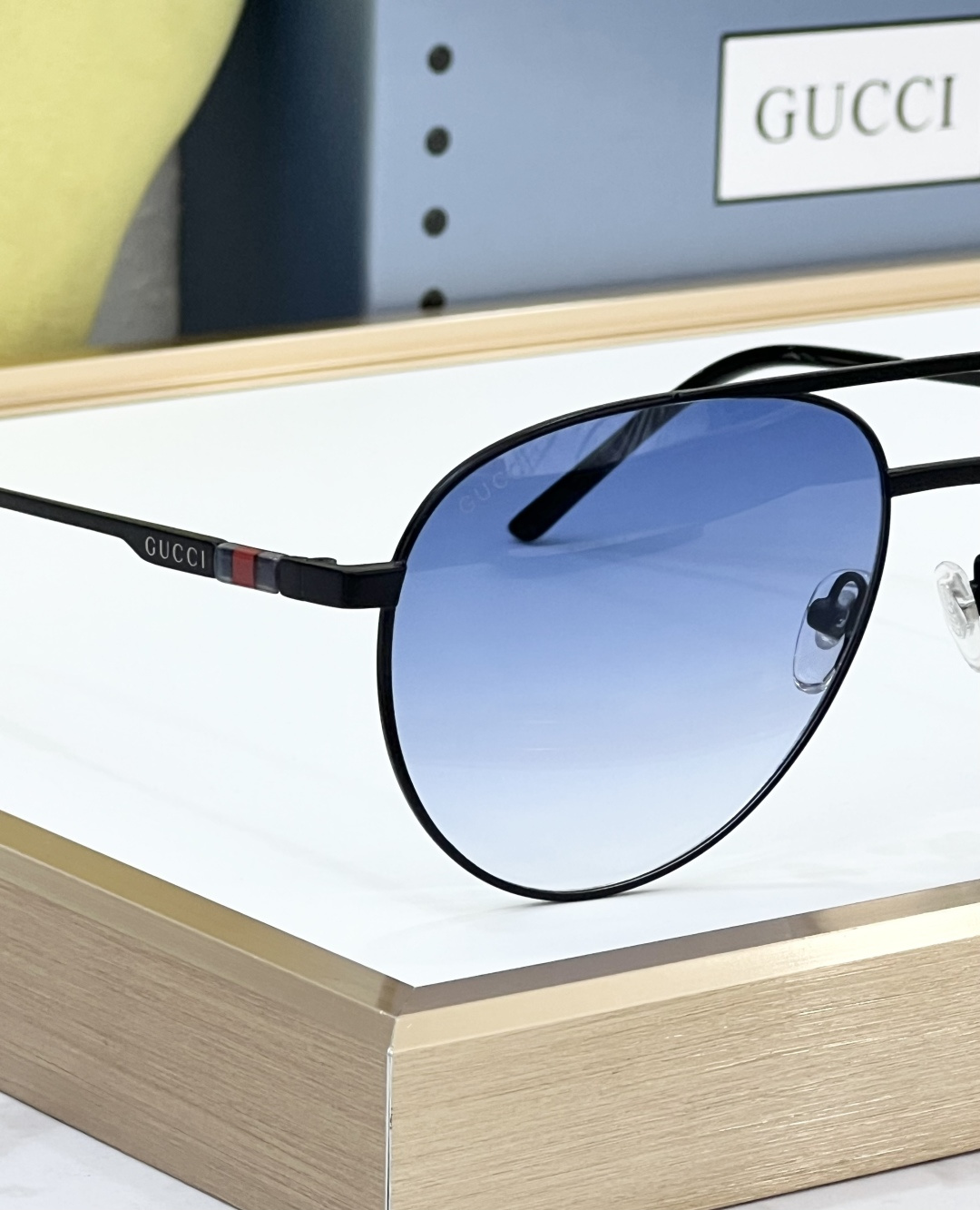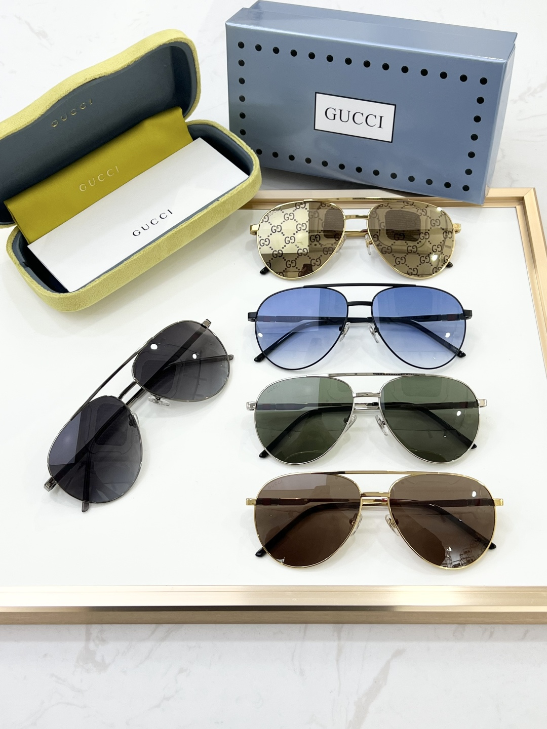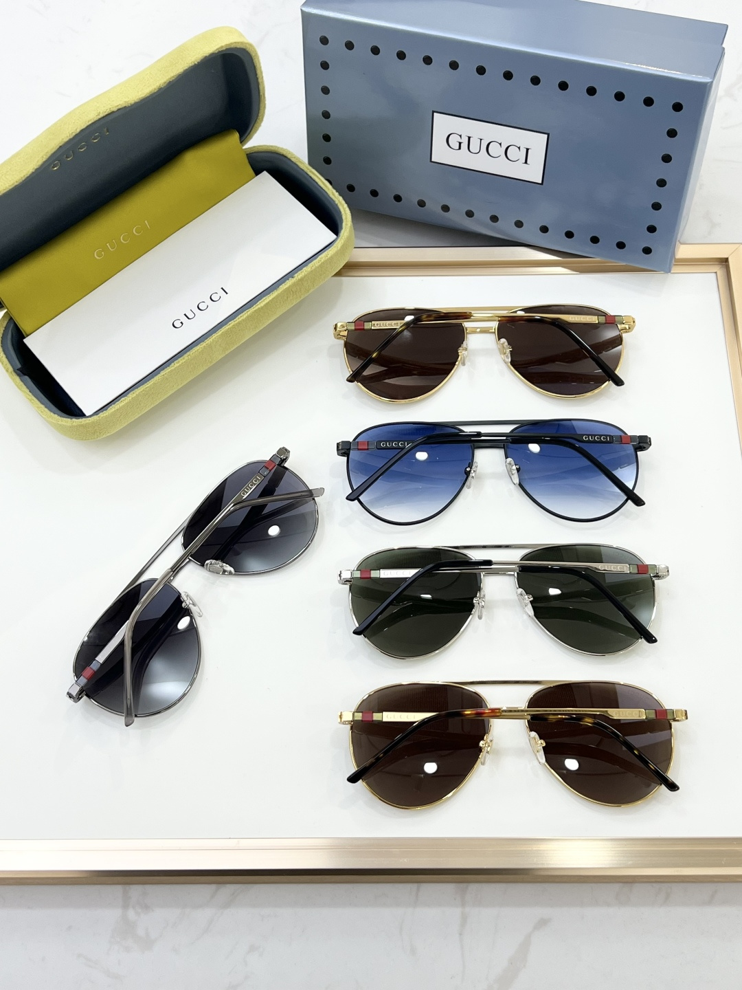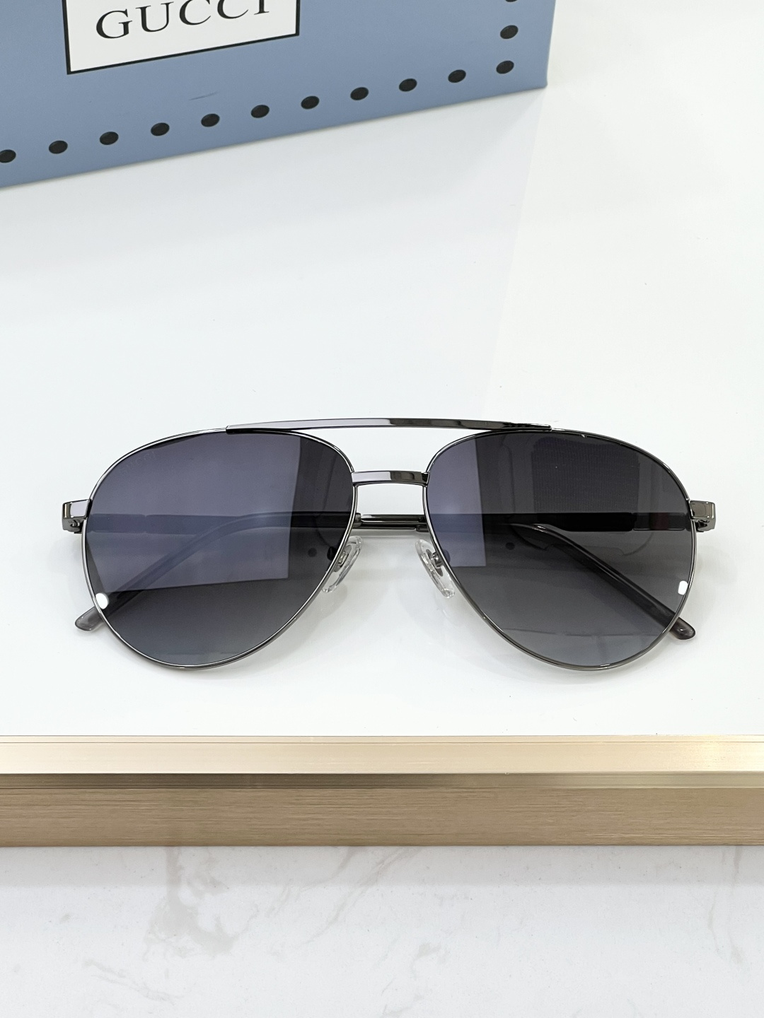 这款太阳眼镜是AAAAA 1:1 质量 (非常棒). 使用了和原版一模一样的材料. 商标部分也保持了和古奇/Gucci一样. 图片拍摄是实物太阳眼镜拍摄, 您所收到的实物保证和我们图片一模一样.