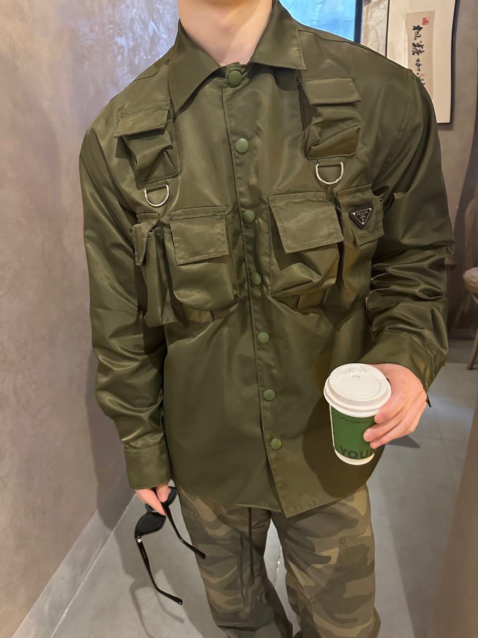 这款衣服是AAAAA 1:1 质量 (非常棒). 使用了和原版一模一样的材料. 商标部分也保持了和普拉达/Prada一样. 图片拍摄是实物衣服拍摄, 您所收到的实物保证和我们图片一模一样.