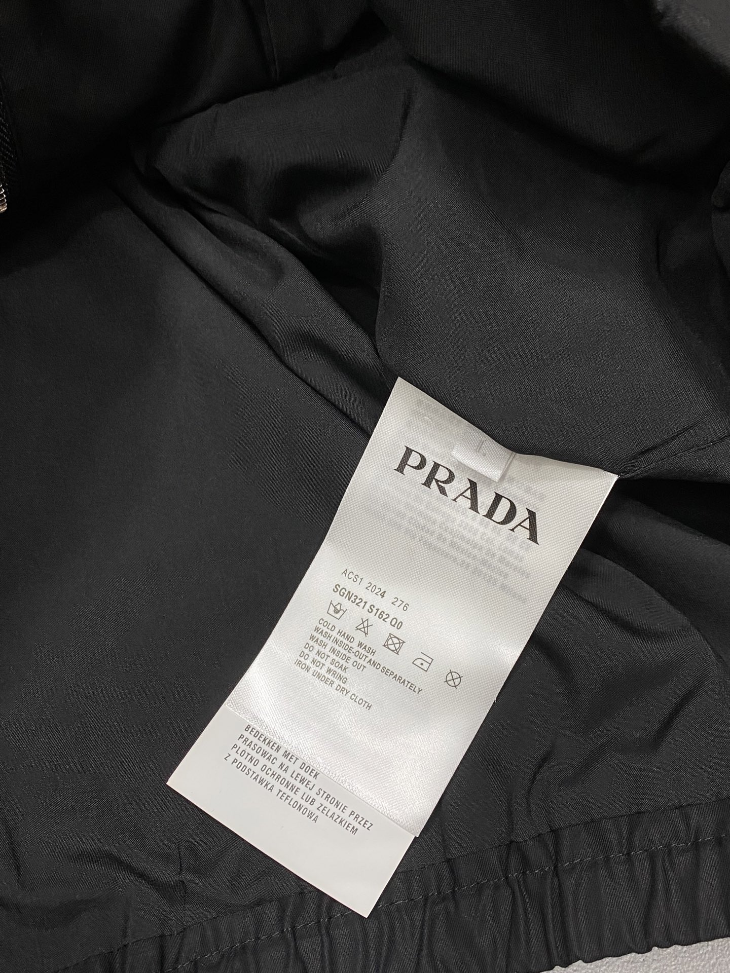 这款衣服是AAAAA 1:1 质量 (非常棒). 使用了和原版一模一样的材料. 商标部分也保持了和普拉达/Prada一样. 图片拍摄是实物衣服拍摄, 您所收到的实物保证和我们图片一模一样.