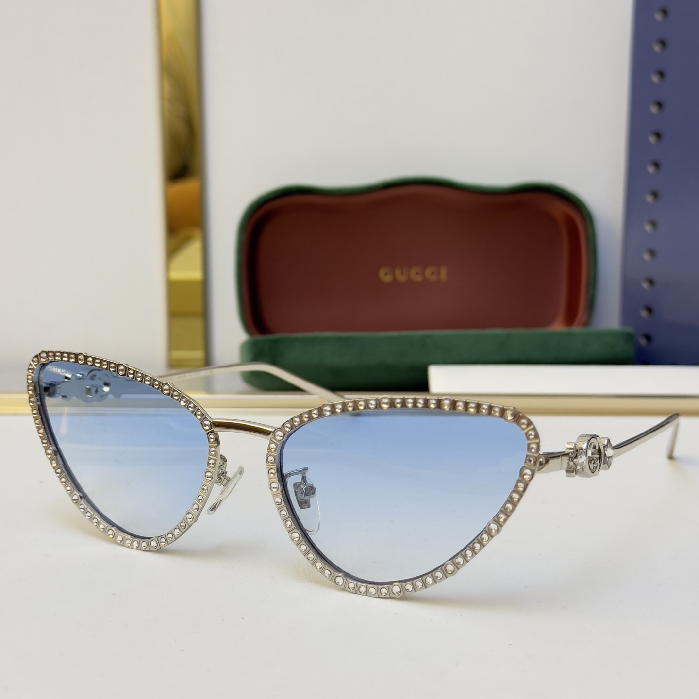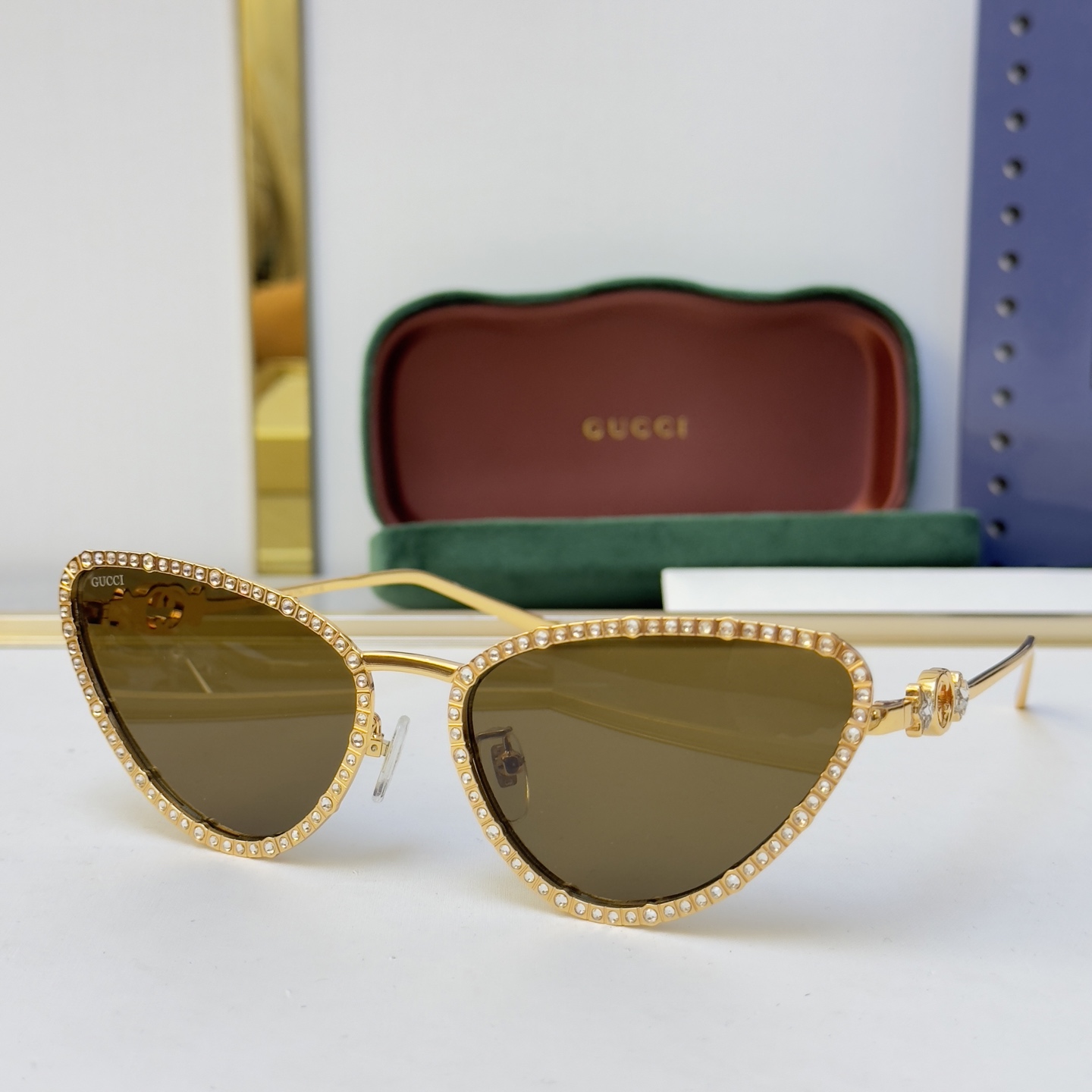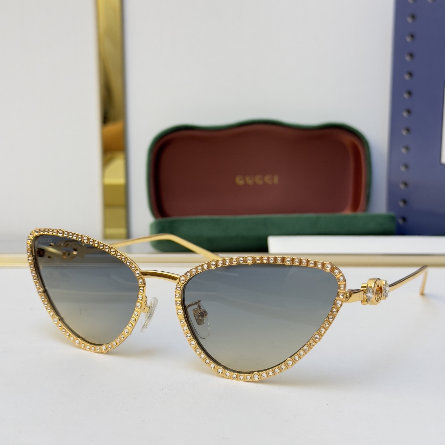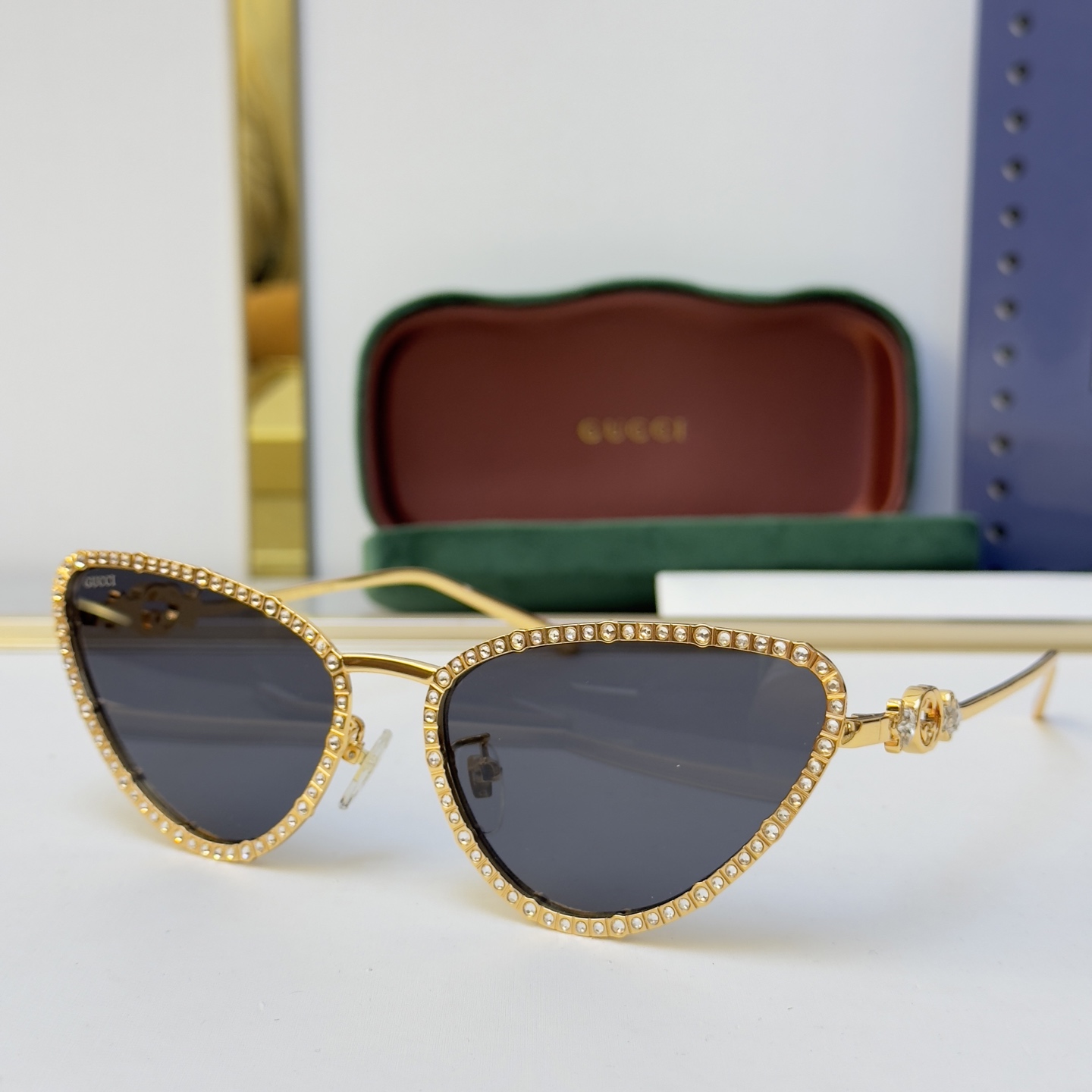 这款太阳眼镜是AAAAA 1:1 质量 (非常棒). 使用了和原版一模一样的材料. 商标部分也保持了和古奇/Gucci一样. 图片拍摄是实物太阳眼镜拍摄, 您所收到的实物保证和我们图片一模一样.