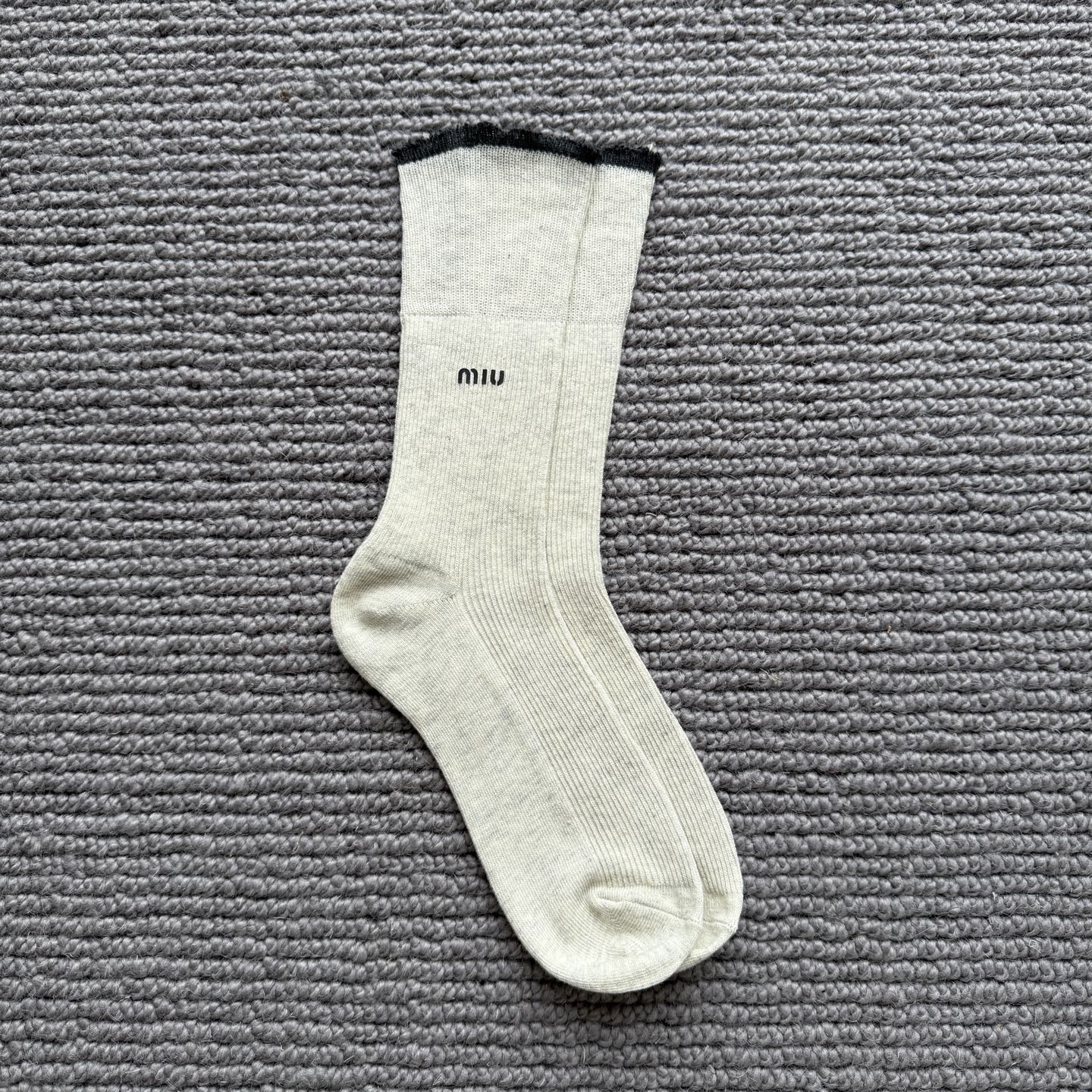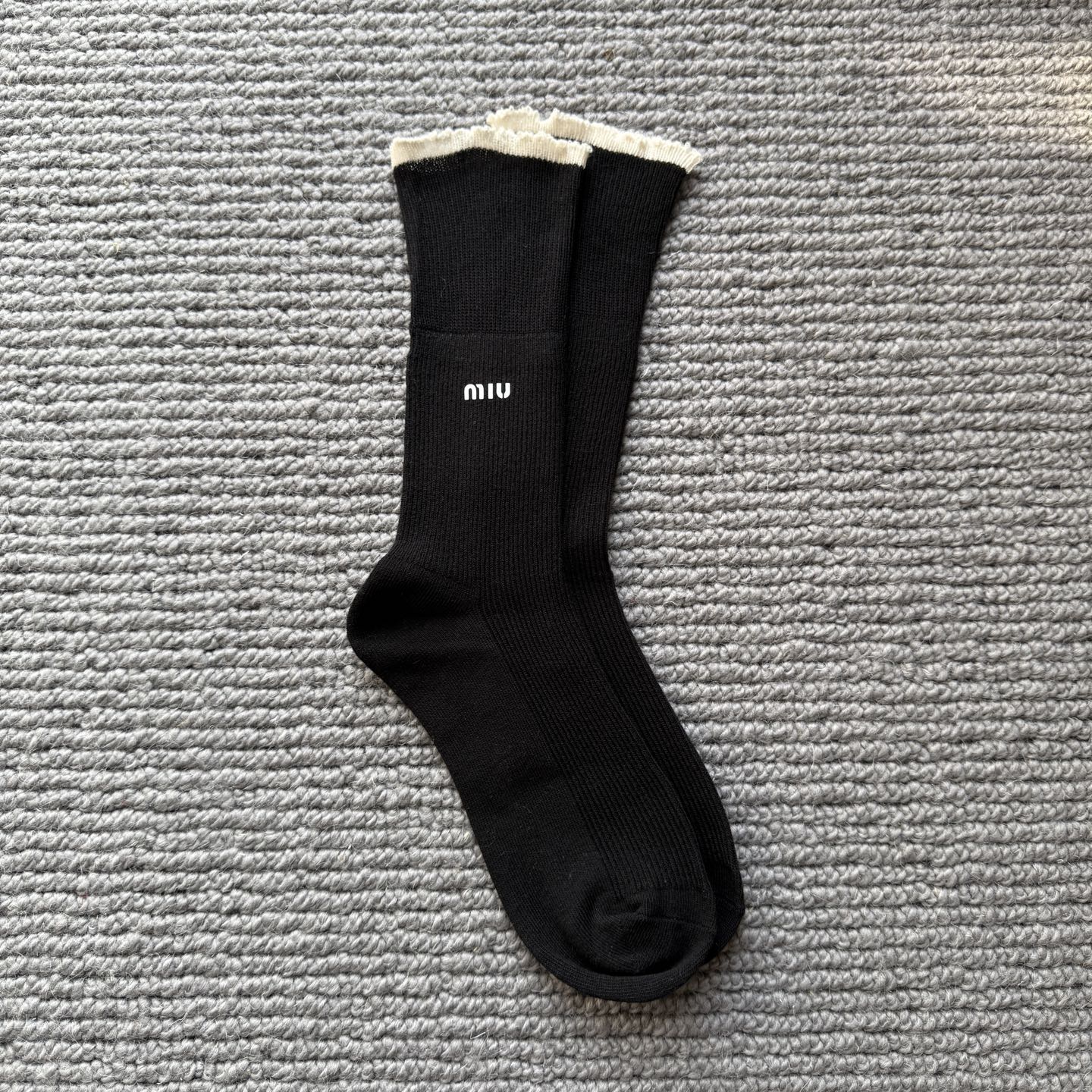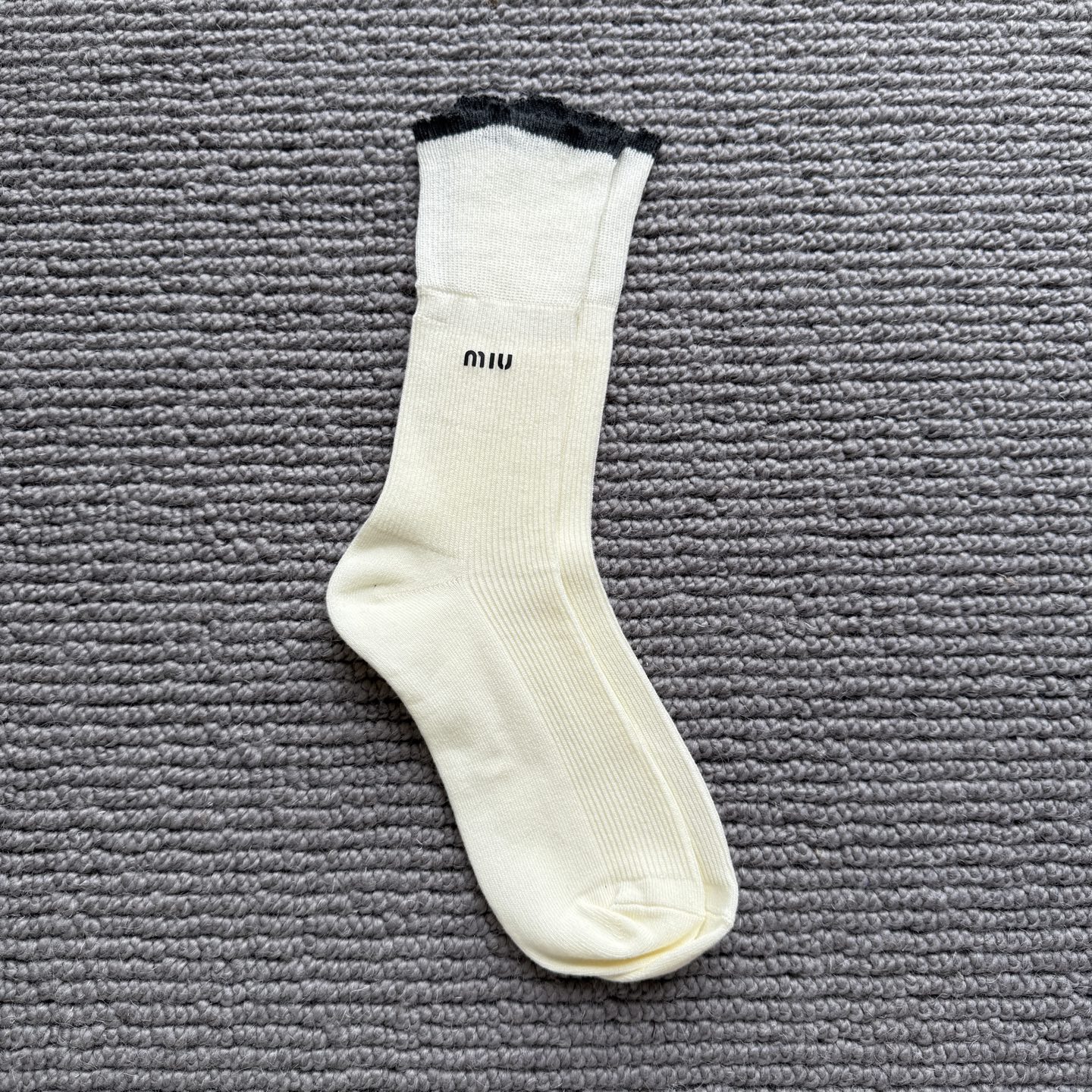 这款sock是AAAAA 1:1 质量 (非常棒). 使用了和原版一模一样的材料. 商标部分也保持了和缪缪/Miu Miu一样. 图片拍摄是实物sock拍摄, 您所收到的实物保证和我们图片一模一样.