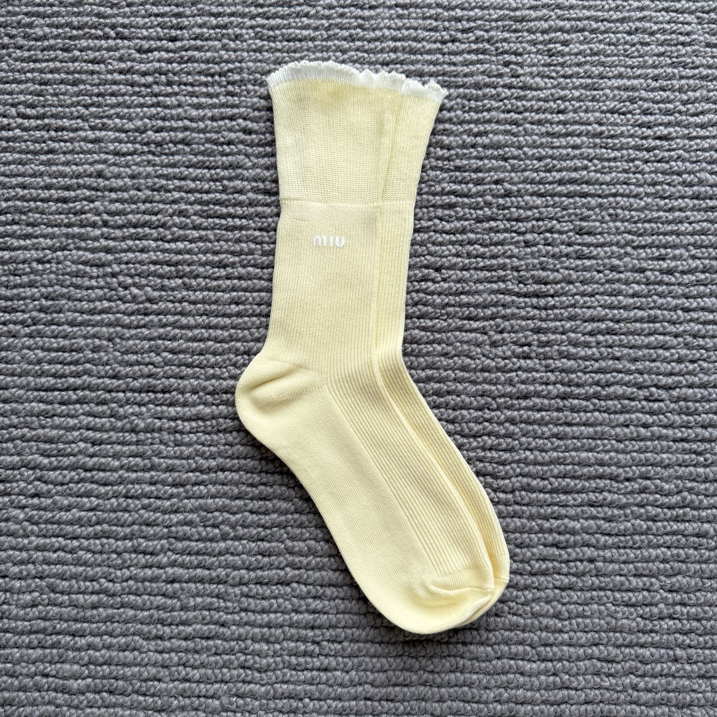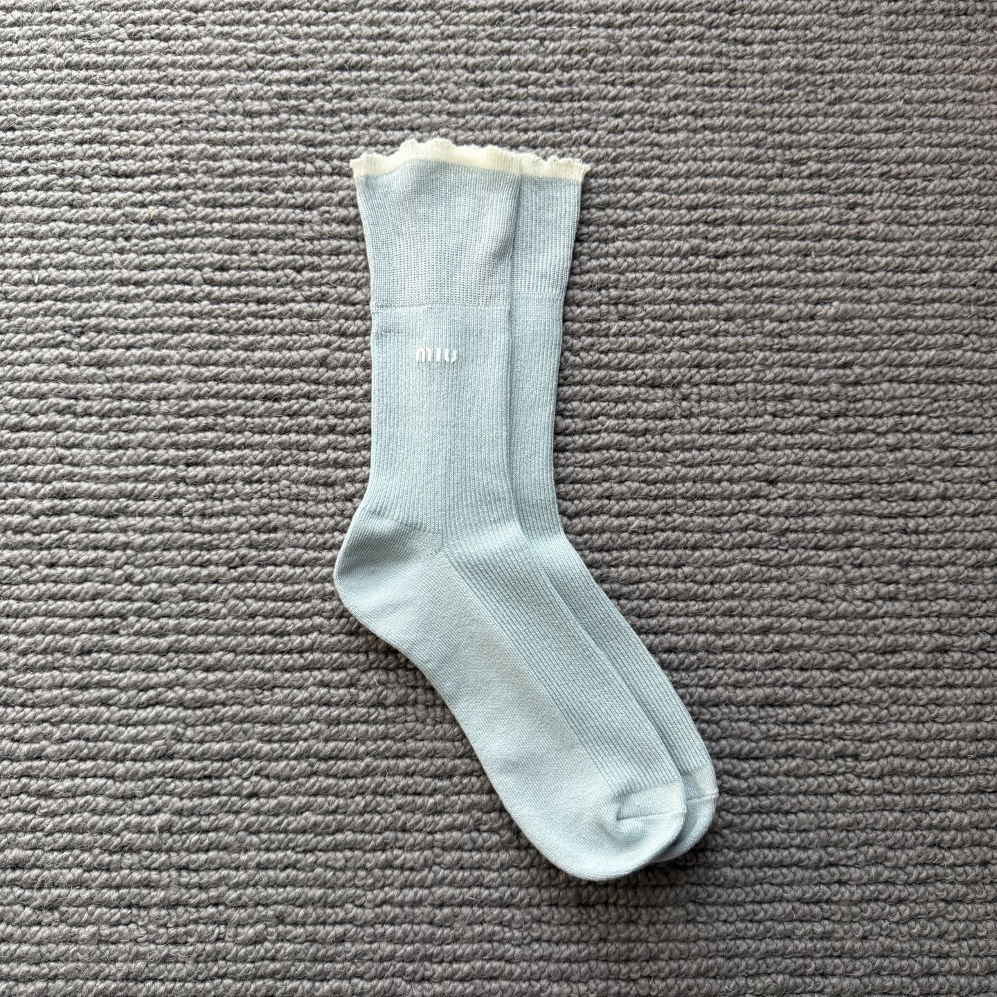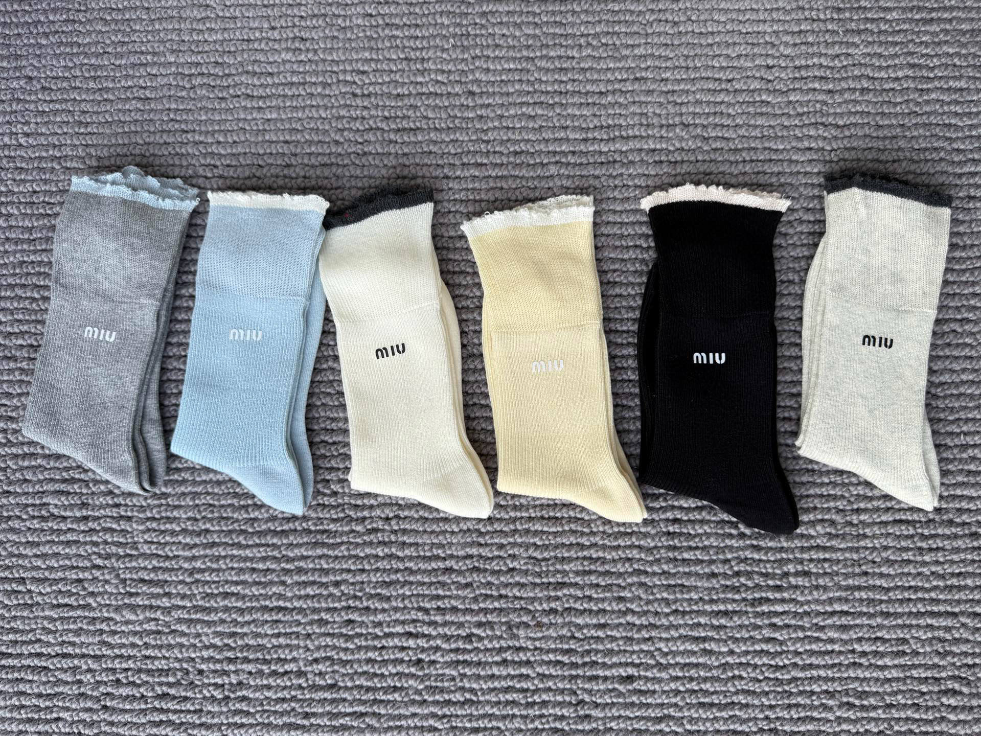 这款sock是AAAAA 1:1 质量 (非常棒). 使用了和原版一模一样的材料. 商标部分也保持了和缪缪/Miu Miu一样. 图片拍摄是实物sock拍摄, 您所收到的实物保证和我们图片一模一样.