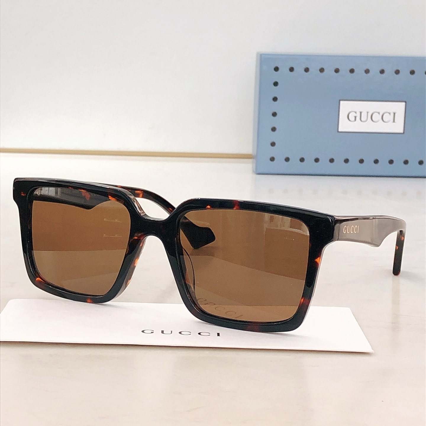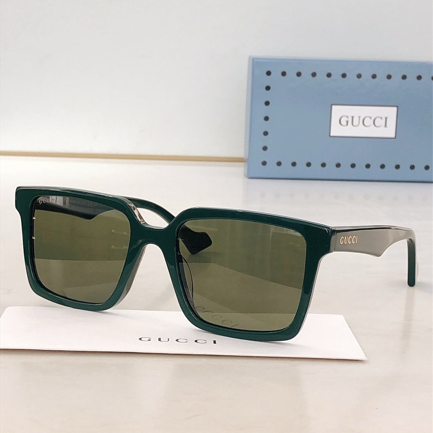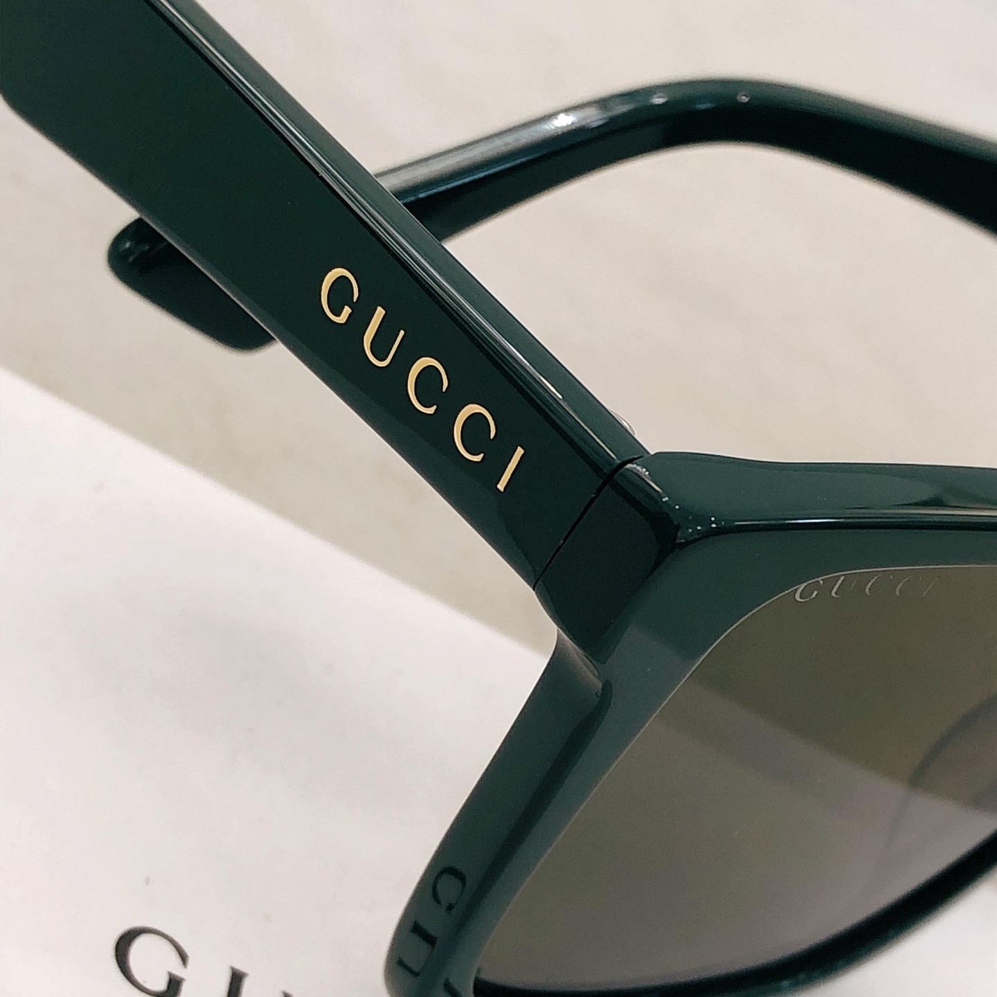 这款太阳眼镜是AAAAA 1:1 质量 (非常棒). 使用了和原版一模一样的材料. 商标部分也保持了和古奇/Gucci一样. 图片拍摄是实物太阳眼镜拍摄, 您所收到的实物保证和我们图片一模一样.