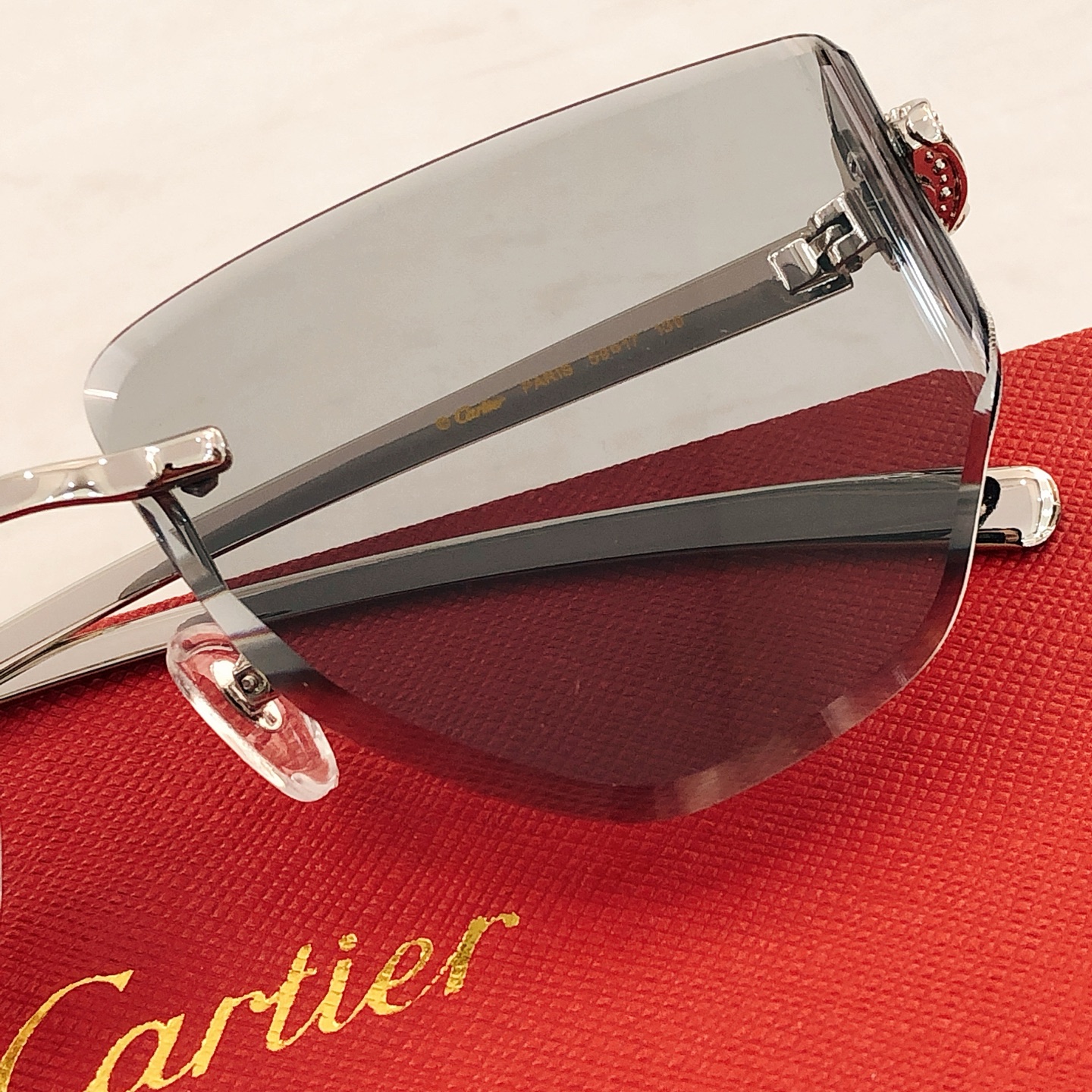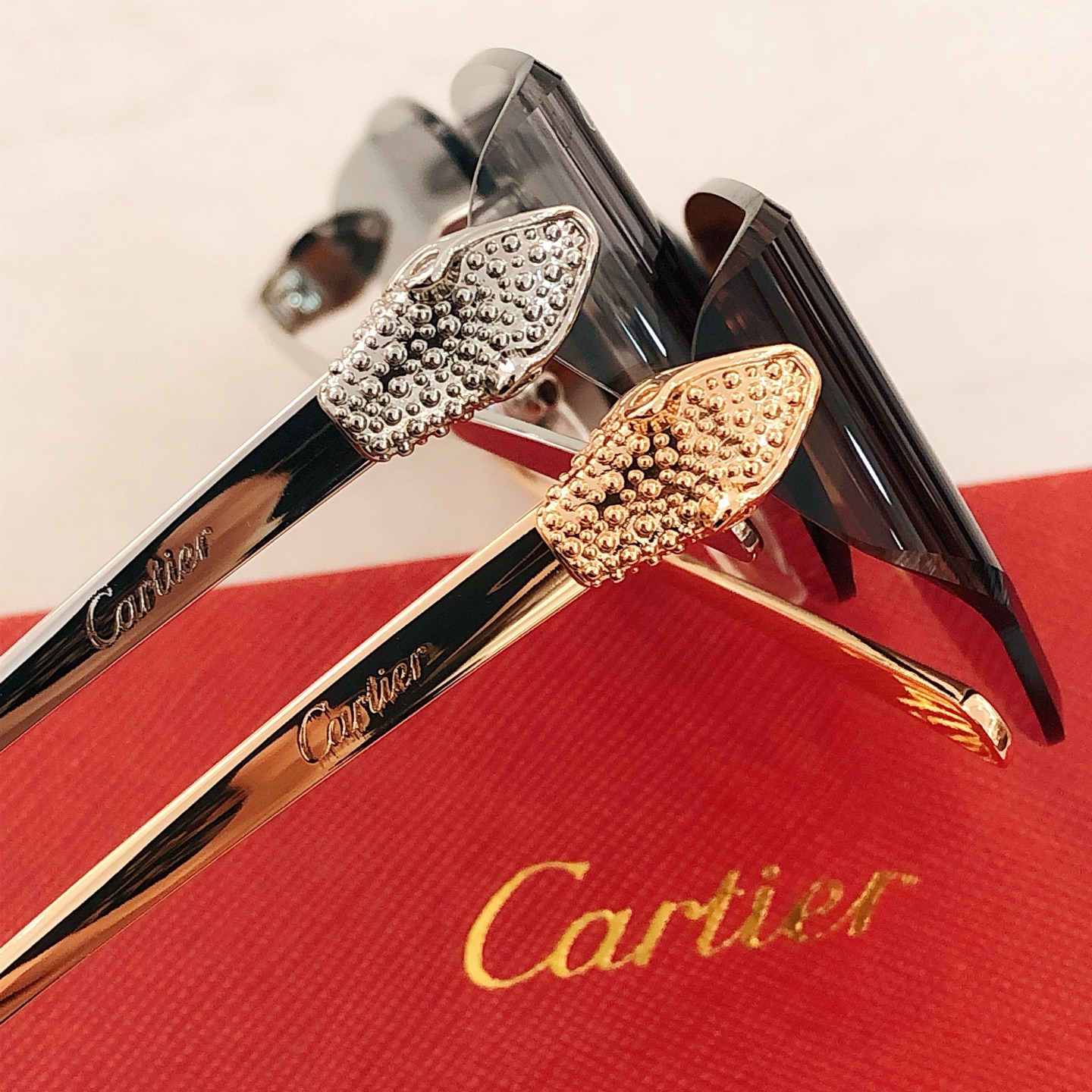 这款太阳眼镜是AAAAA 1:1 质量 (非常棒). 使用了和原版一模一样的材料. 商标部分也保持了和卡地亚/Cartier一样. 图片拍摄是实物太阳眼镜拍摄, 您所收到的实物保证和我们图片一模一样.