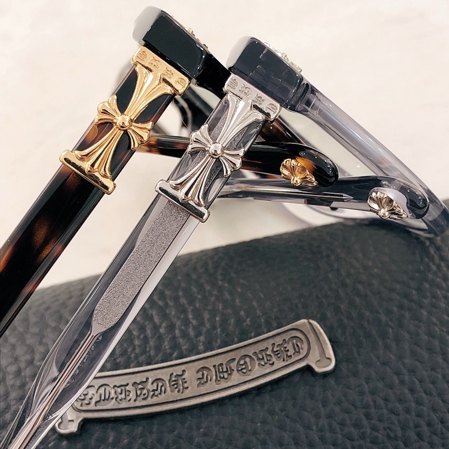这款太阳眼镜是AAAAA 1:1 质量 (非常棒). 使用了和原版一模一样的材料. 商标部分也保持了和克罗心/Chrome Hearts一样. 图片拍摄是实物太阳眼镜拍摄, 您所收到的实物保证和我们图片一模一样.