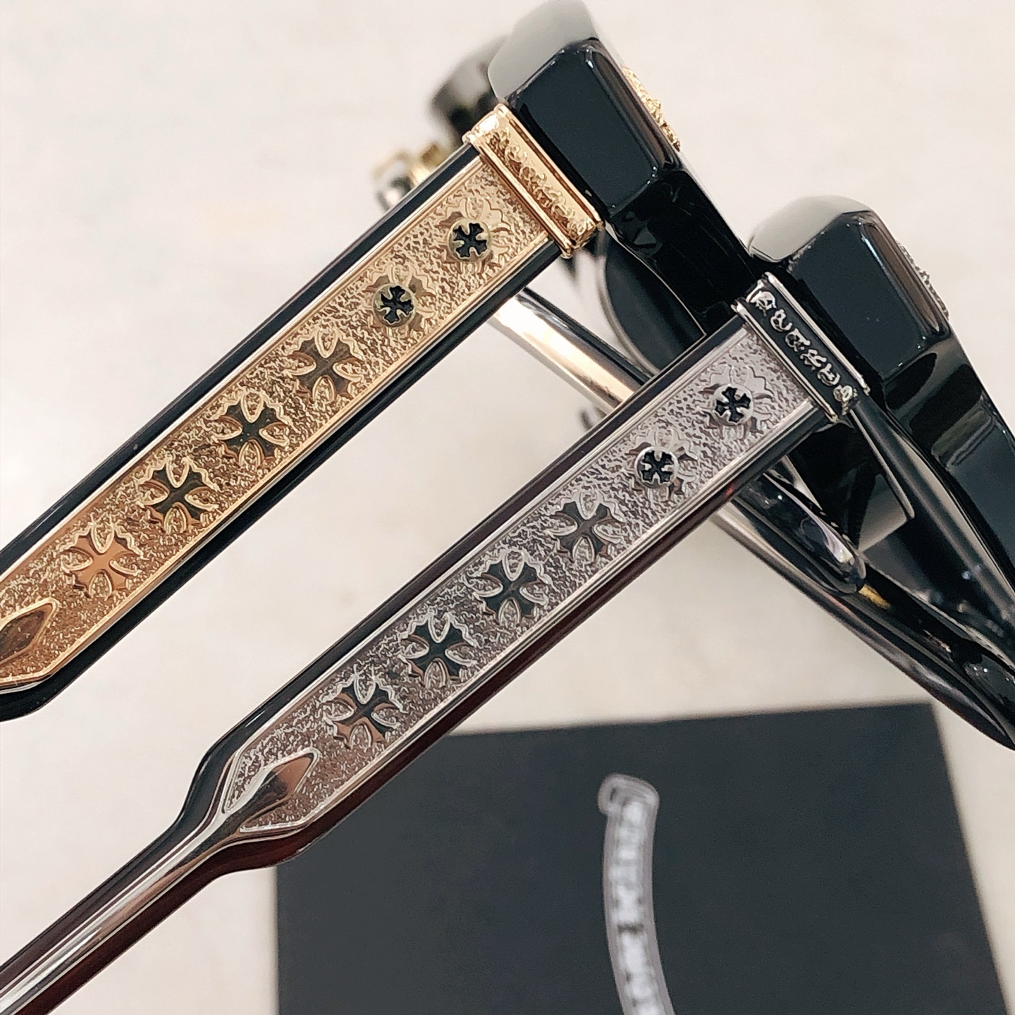 这款太阳眼镜是AAAAA 1:1 质量 (非常棒). 使用了和原版一模一样的材料. 商标部分也保持了和克罗心/Chrome Hearts一样. 图片拍摄是实物太阳眼镜拍摄, 您所收到的实物保证和我们图片一模一样.