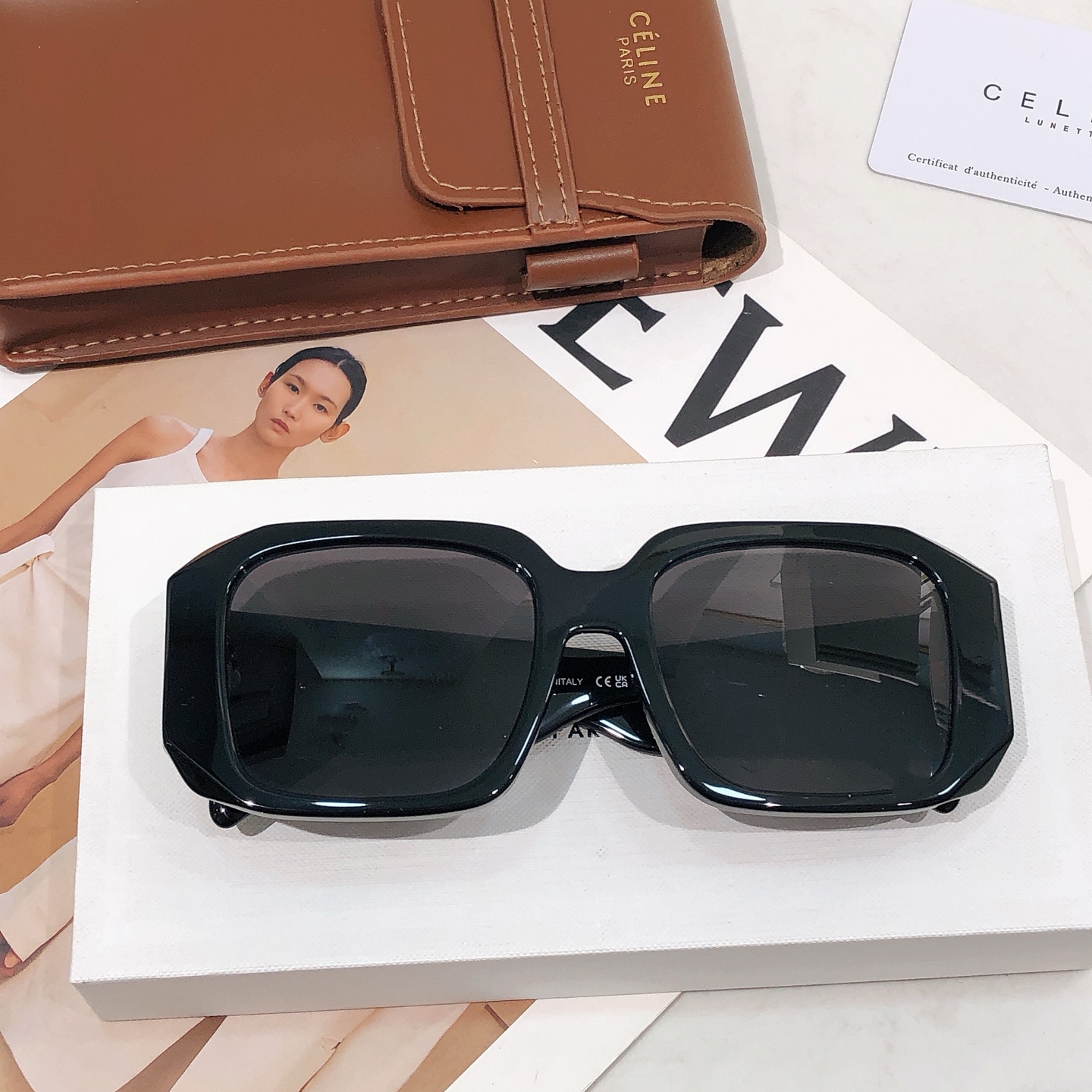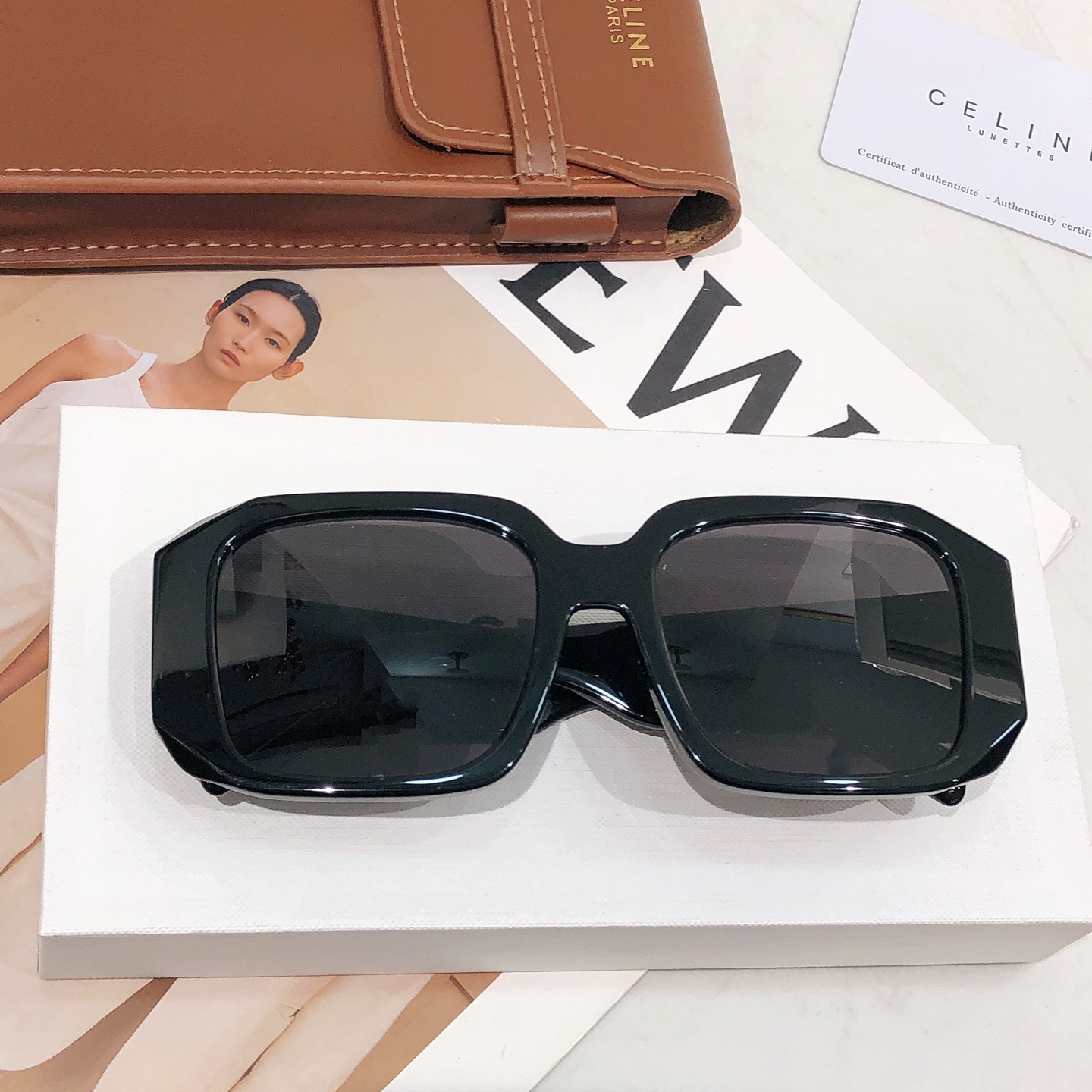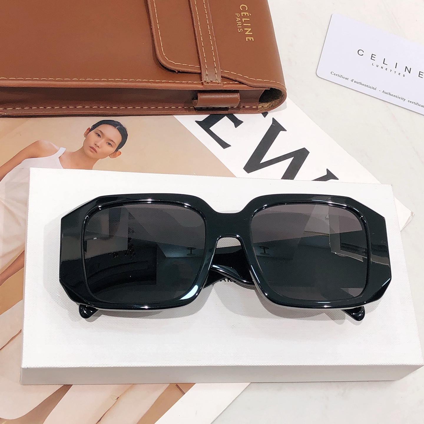 这款太阳眼镜是AAAAA 1:1 质量 (非常棒). 使用了和原版一模一样的材料. 商标部分也保持了和思琳/Celine一样. 图片拍摄是实物太阳眼镜拍摄, 您所收到的实物保证和我们图片一模一样.