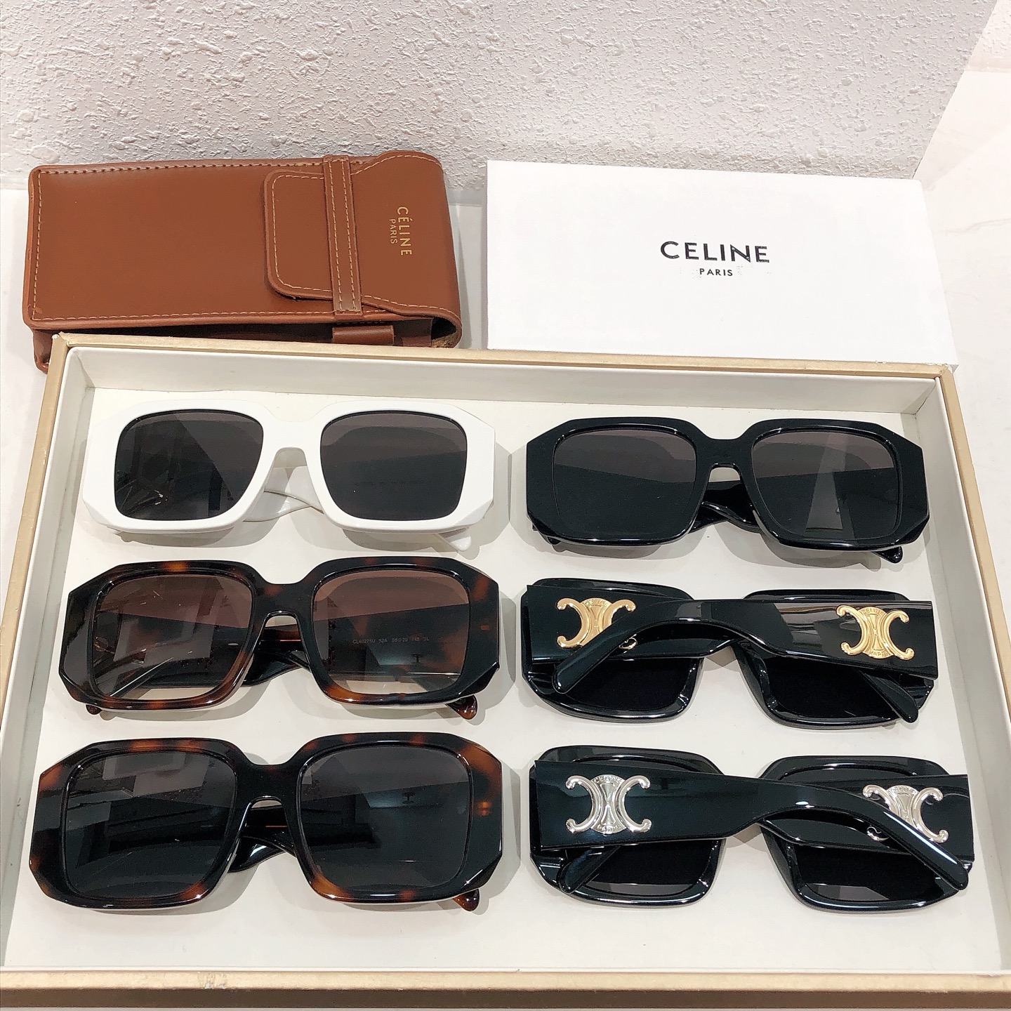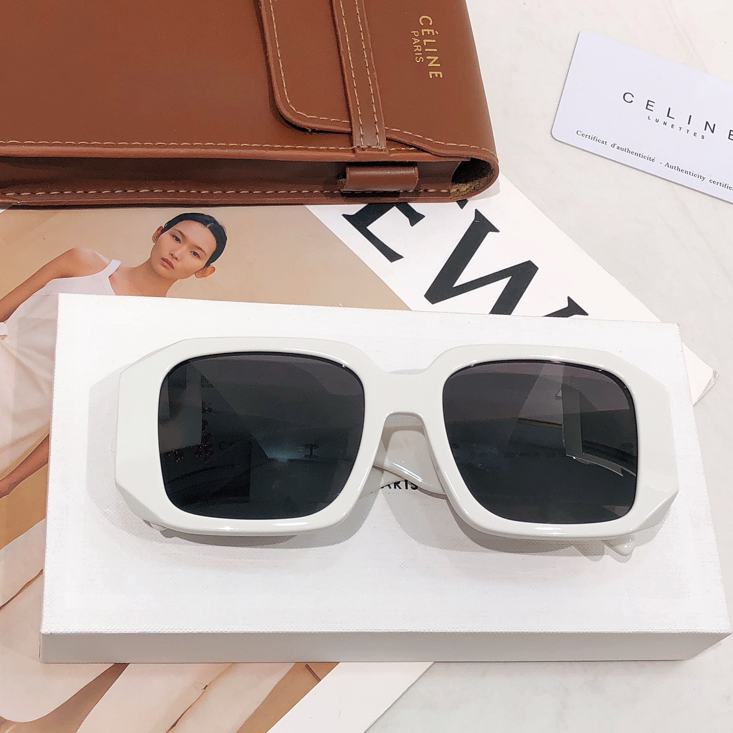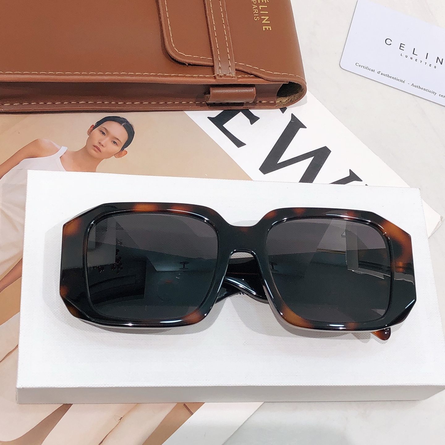 这款太阳眼镜是AAAAA 1:1 质量 (非常棒). 使用了和原版一模一样的材料. 商标部分也保持了和思琳/Celine一样. 图片拍摄是实物太阳眼镜拍摄, 您所收到的实物保证和我们图片一模一样.