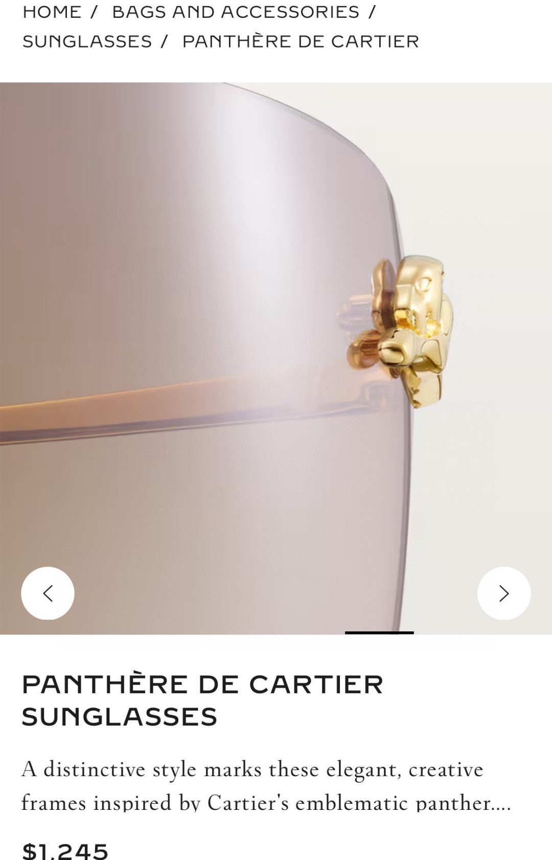 这款太阳眼镜是AAAAA 1:1 质量 (非常棒). 使用了和原版一模一样的材料. 商标部分也保持了和卡地亚/Cartier一样. 图片拍摄是实物太阳眼镜拍摄, 您所收到的实物保证和我们图片一模一样.
