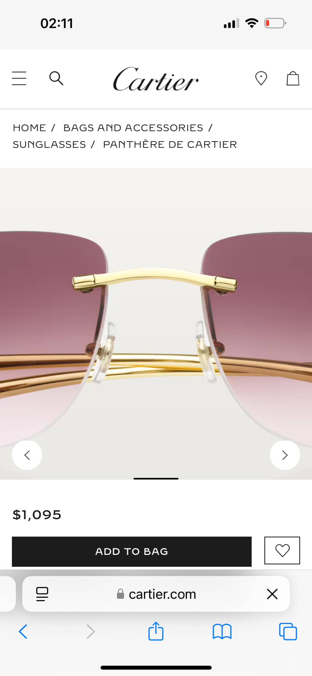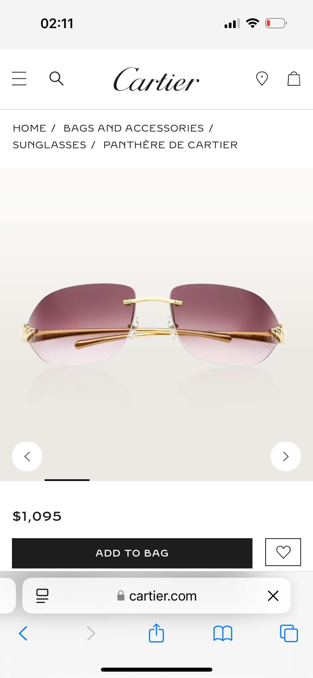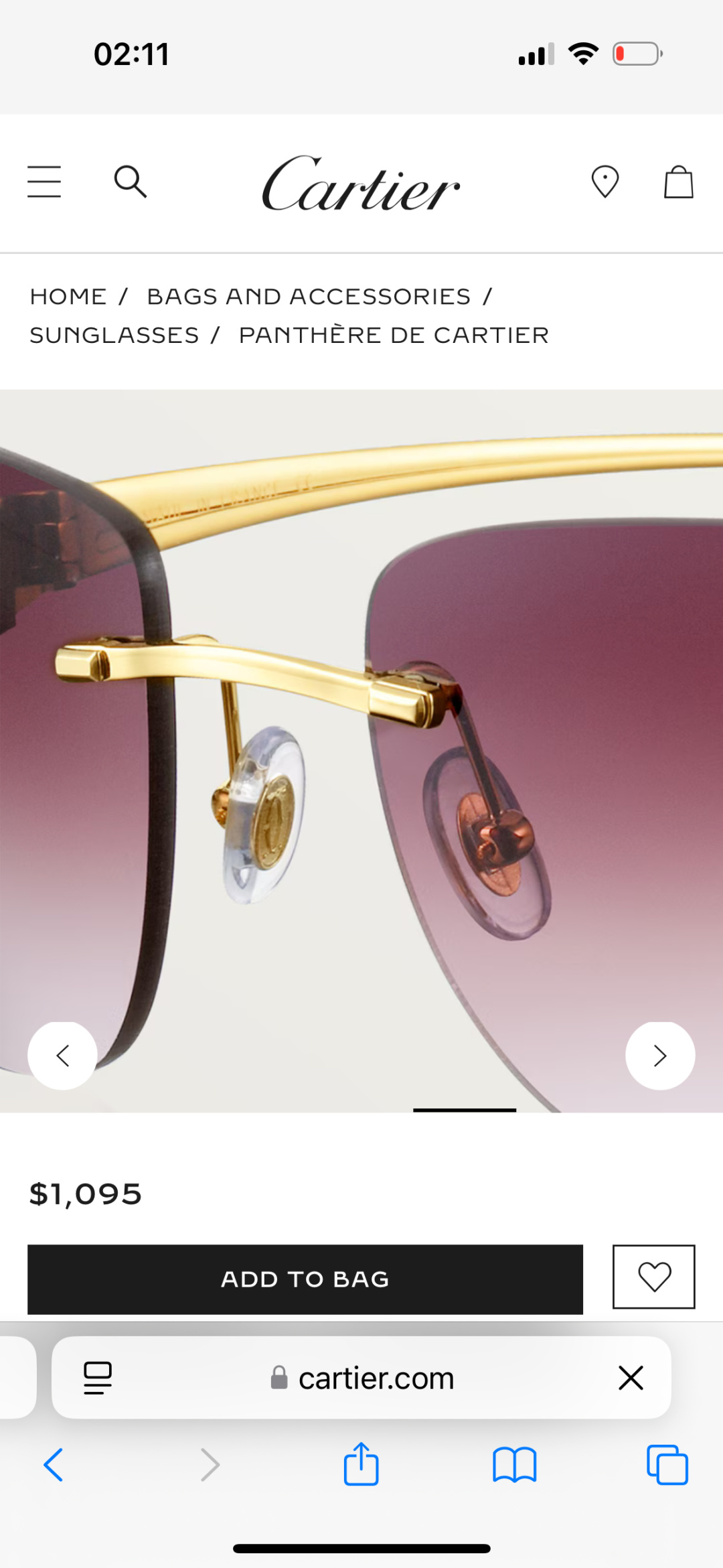 这款太阳眼镜是AAAAA 1:1 质量 (非常棒). 使用了和原版一模一样的材料. 商标部分也保持了和卡地亚/Cartier一样. 图片拍摄是实物太阳眼镜拍摄, 您所收到的实物保证和我们图片一模一样.