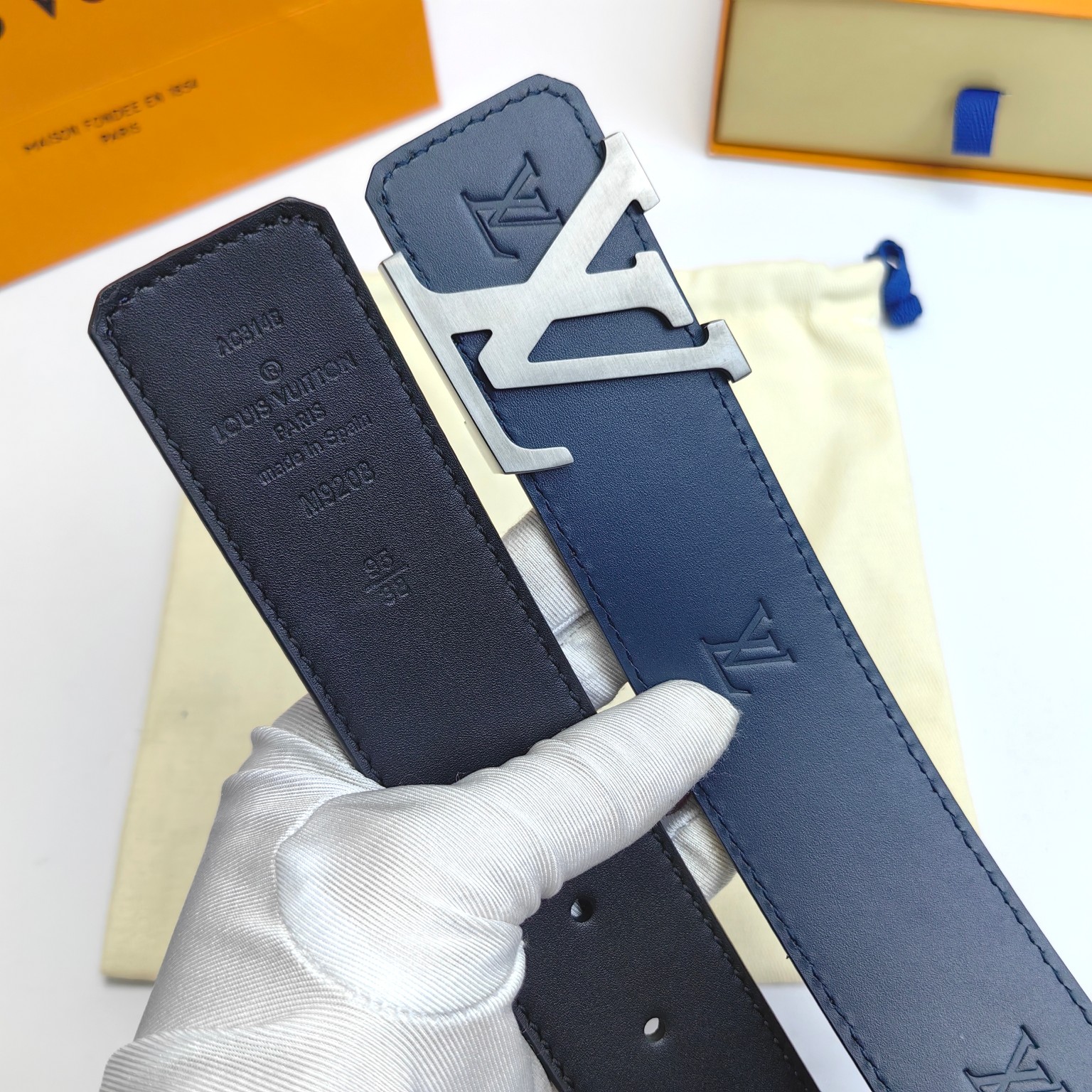 这款皮带是AAAAA 1:1 质量 (非常棒). 使用了和原版一模一样的材料. 商标部分也保持了和路易威登/Louis Vuitton一样. 图片拍摄是实物皮带拍摄, 您所收到的实物保证和我们图片一模一样.