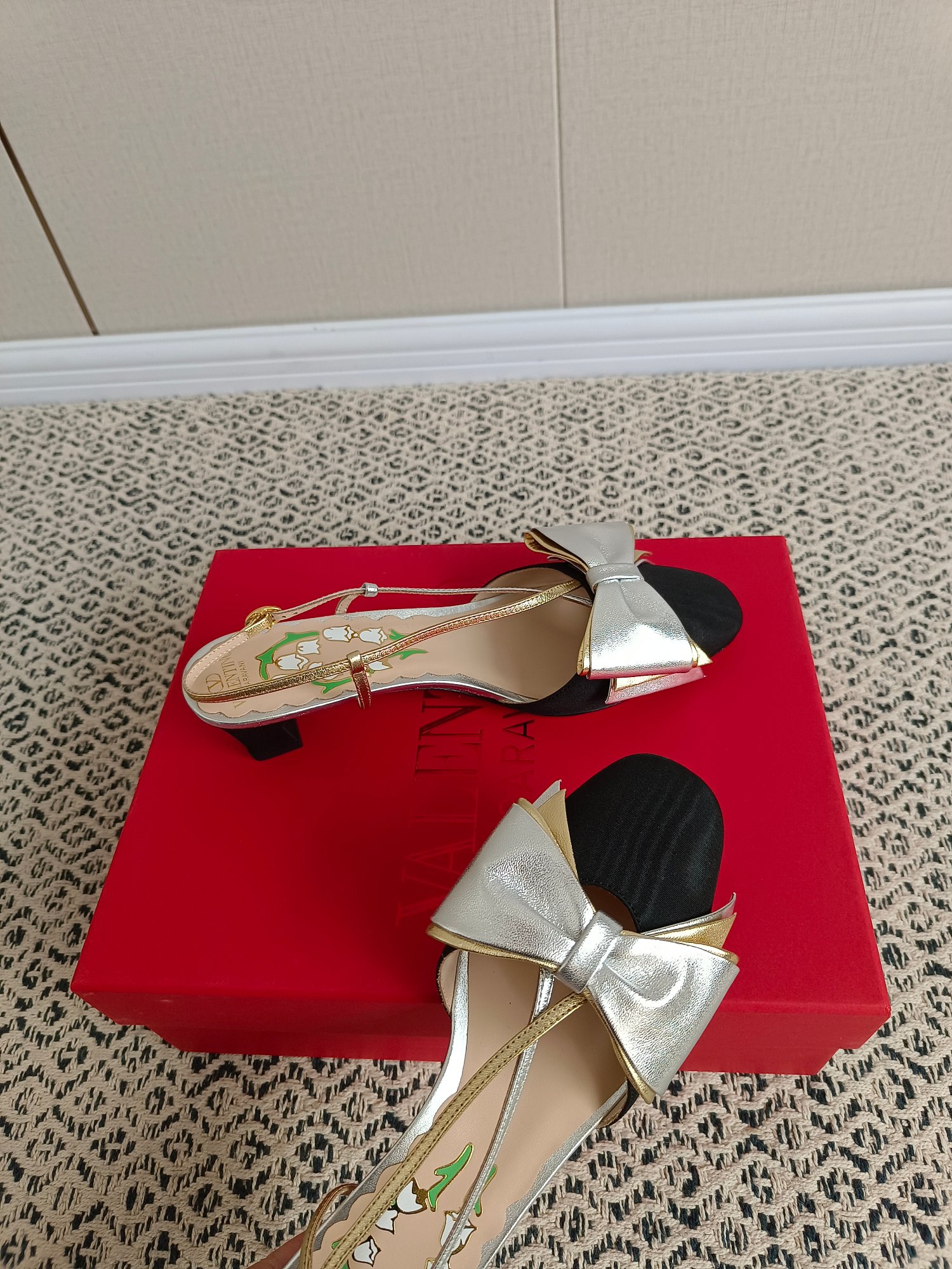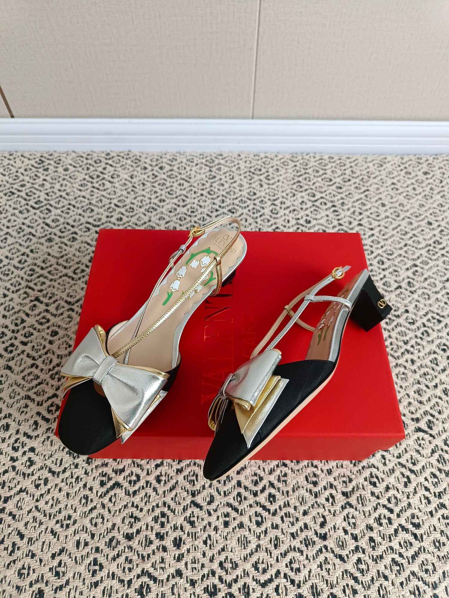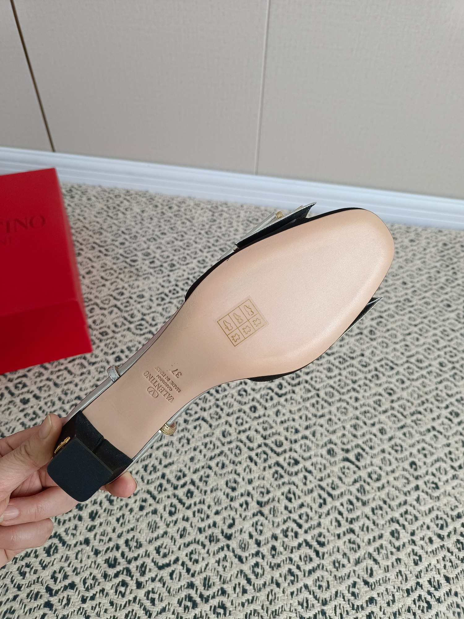 这款鞋子是AAAAA 1:1 质量 (非常棒). 使用了和原版一模一样的材料. 商标部分也保持了和华伦天奴/Valentino一样. 图片拍摄是实物鞋子拍摄, 您所收到的实物保证和我们图片一模一样.