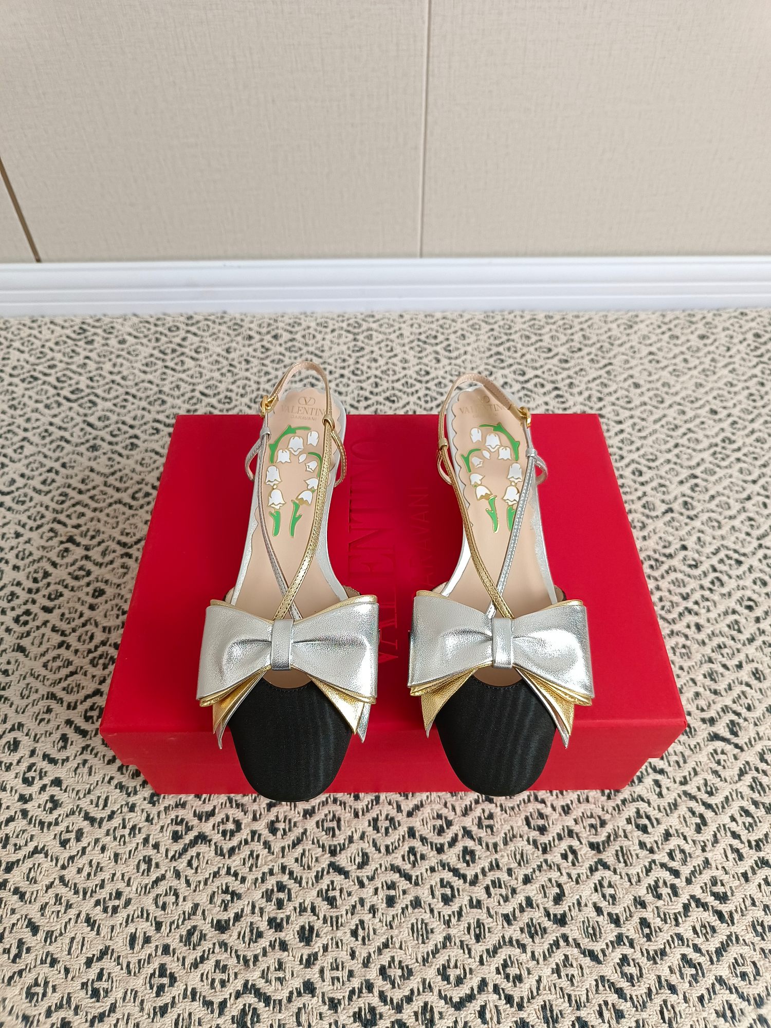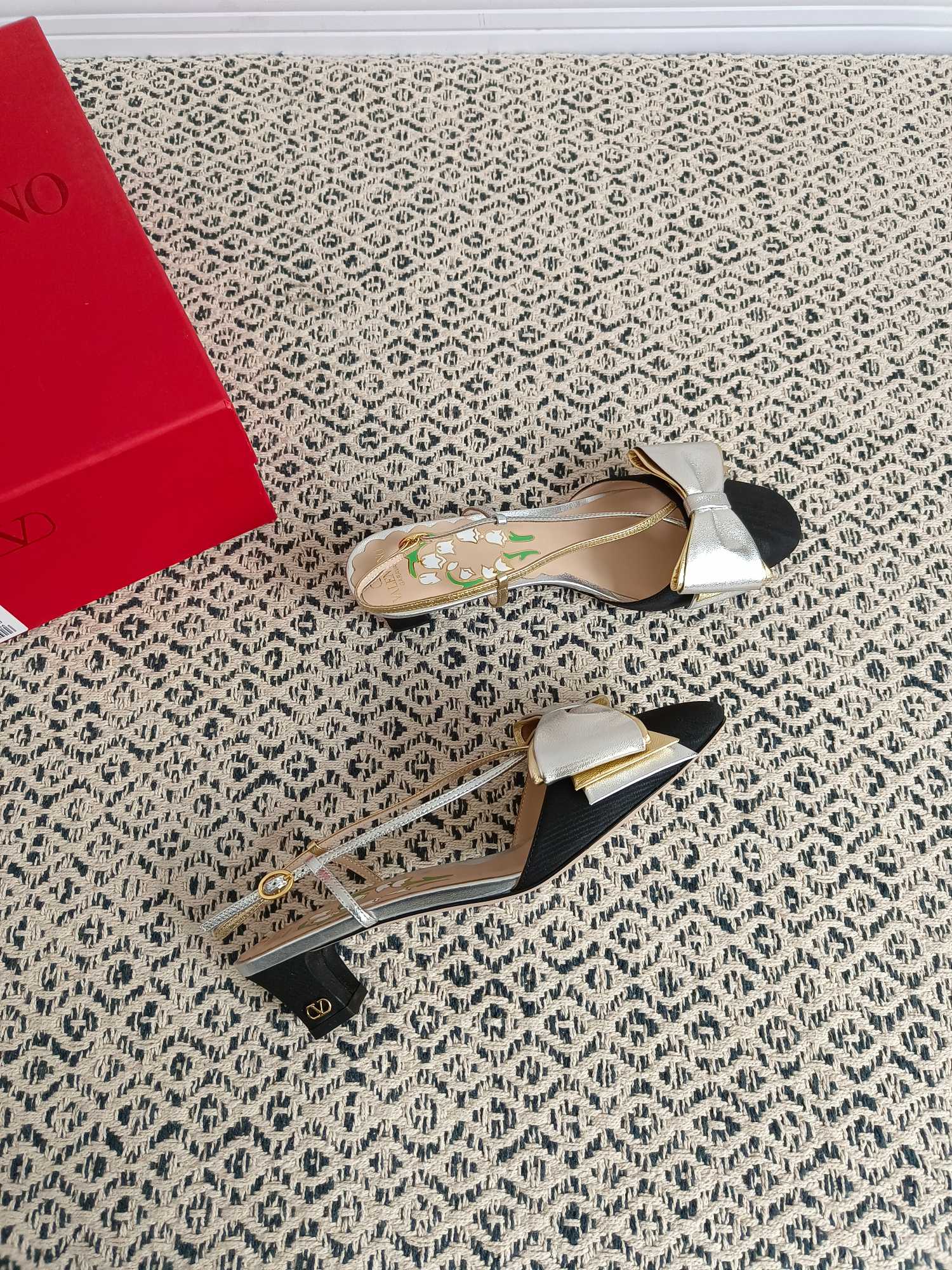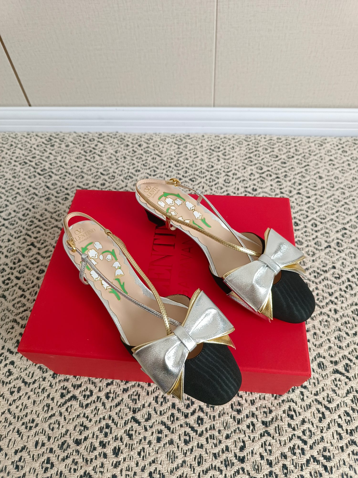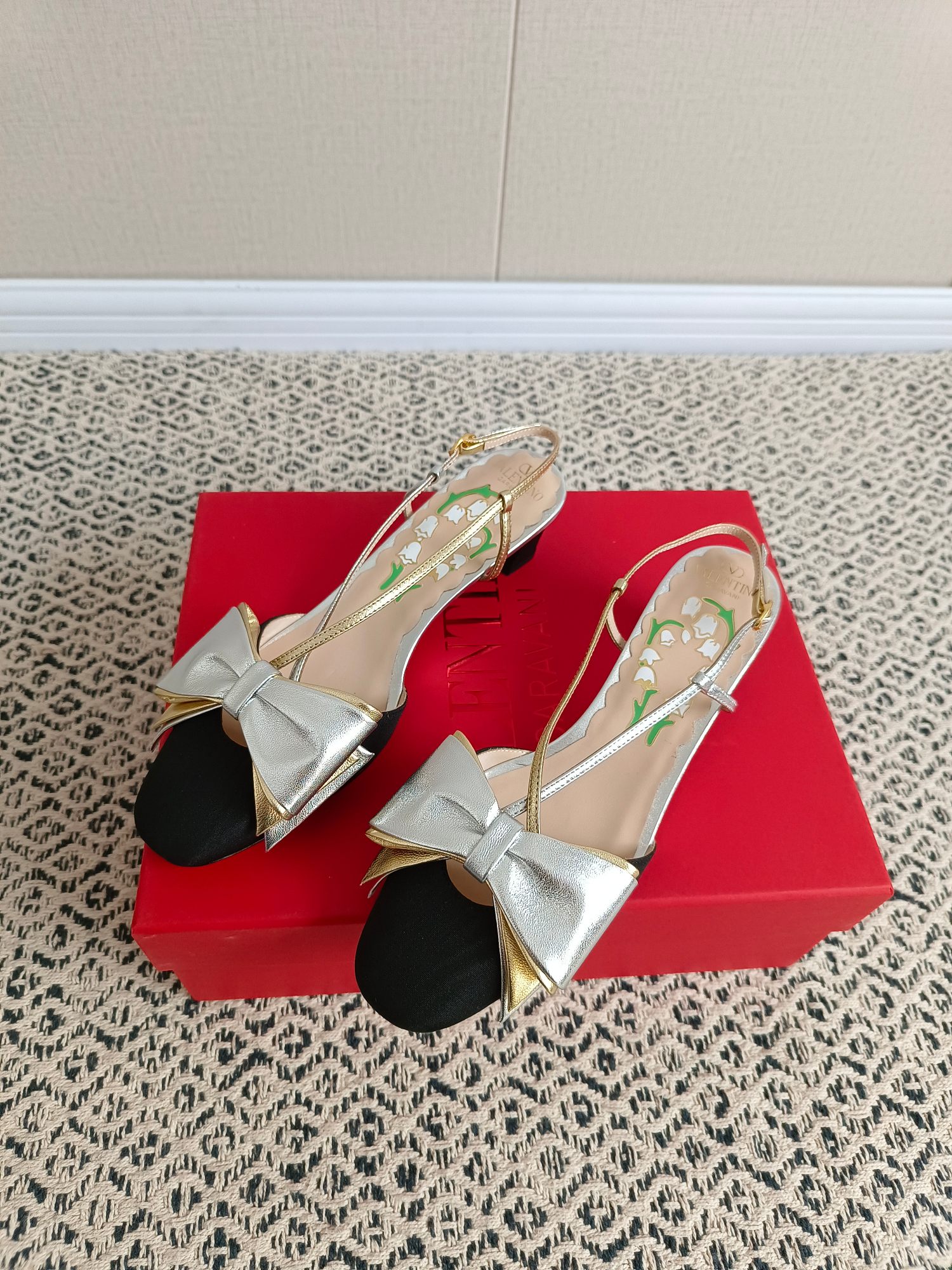 这款鞋子是AAAAA 1:1 质量 (非常棒). 使用了和原版一模一样的材料. 商标部分也保持了和华伦天奴/Valentino一样. 图片拍摄是实物鞋子拍摄, 您所收到的实物保证和我们图片一模一样.
