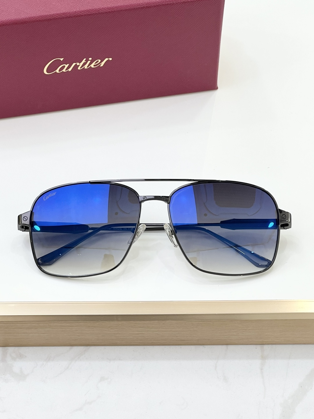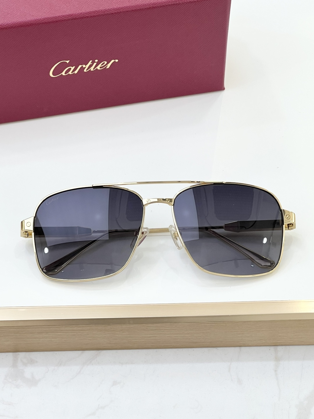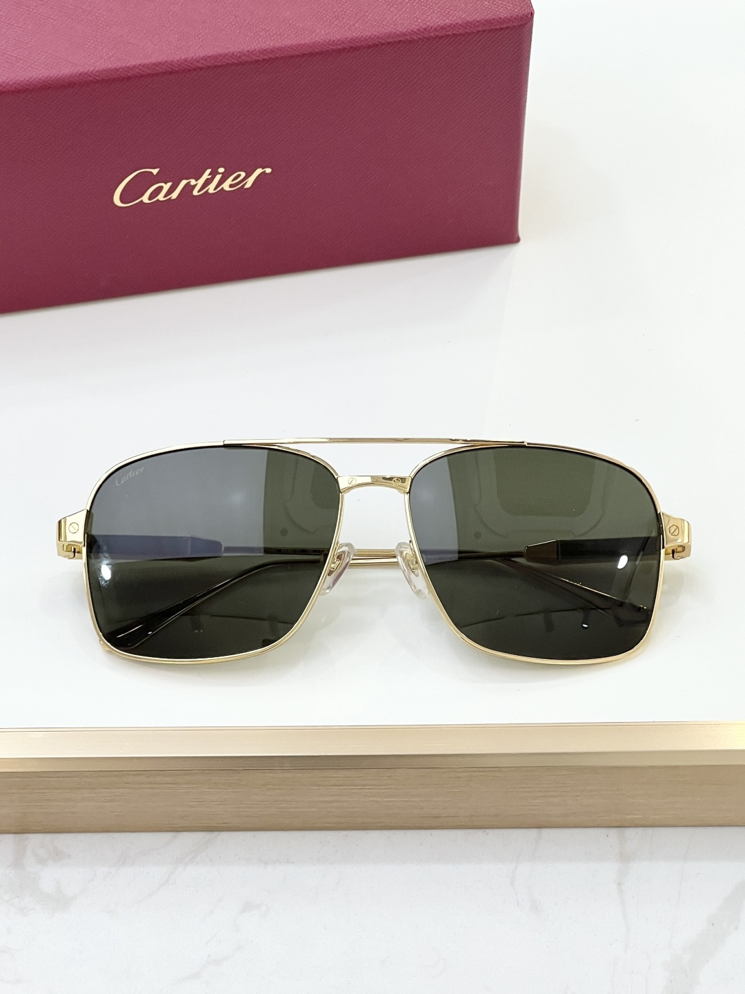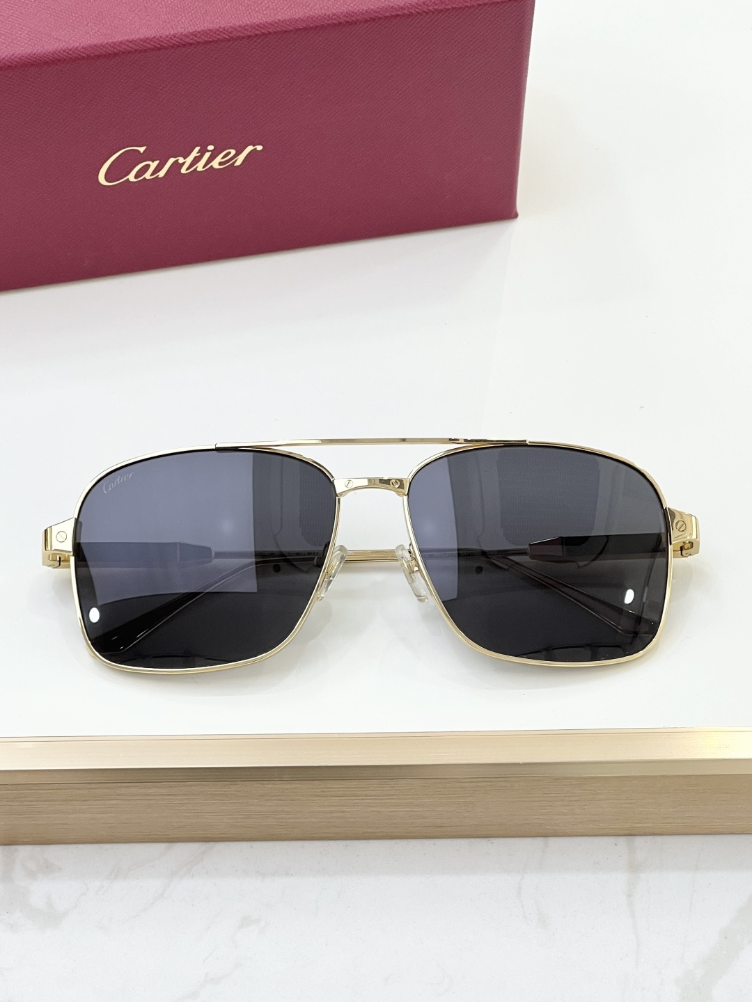 这款太阳眼镜是AAAAA 1:1 质量 (非常棒). 使用了和原版一模一样的材料. 商标部分也保持了和卡地亚/Cartier一样. 图片拍摄是实物太阳眼镜拍摄, 您所收到的实物保证和我们图片一模一样.