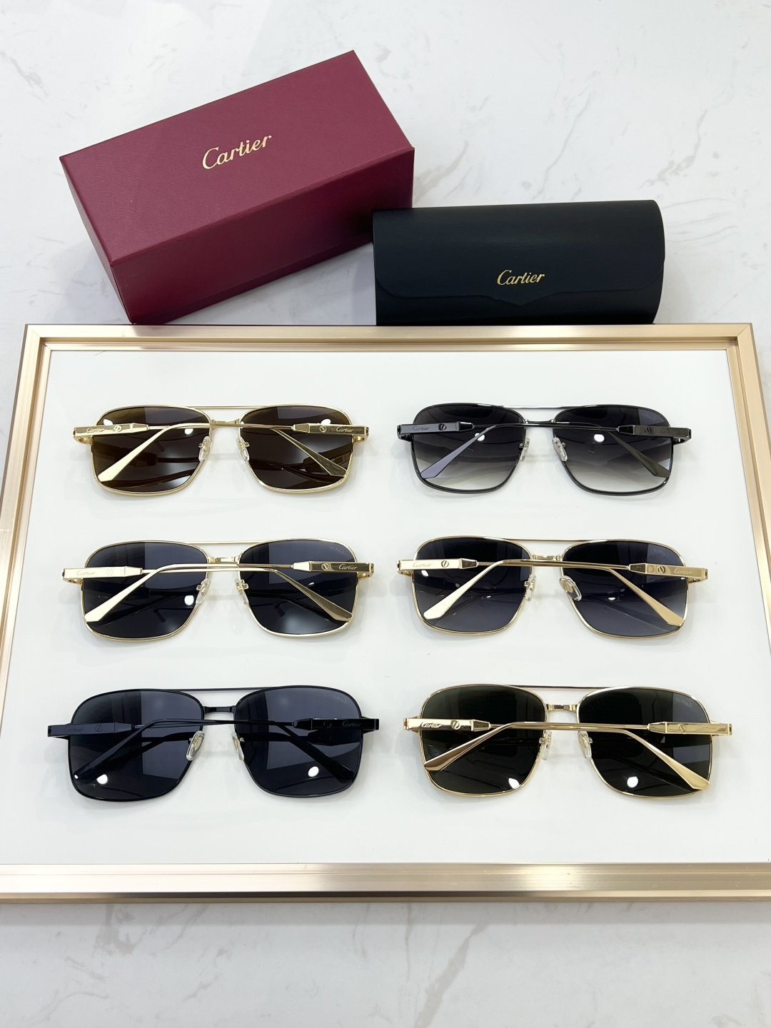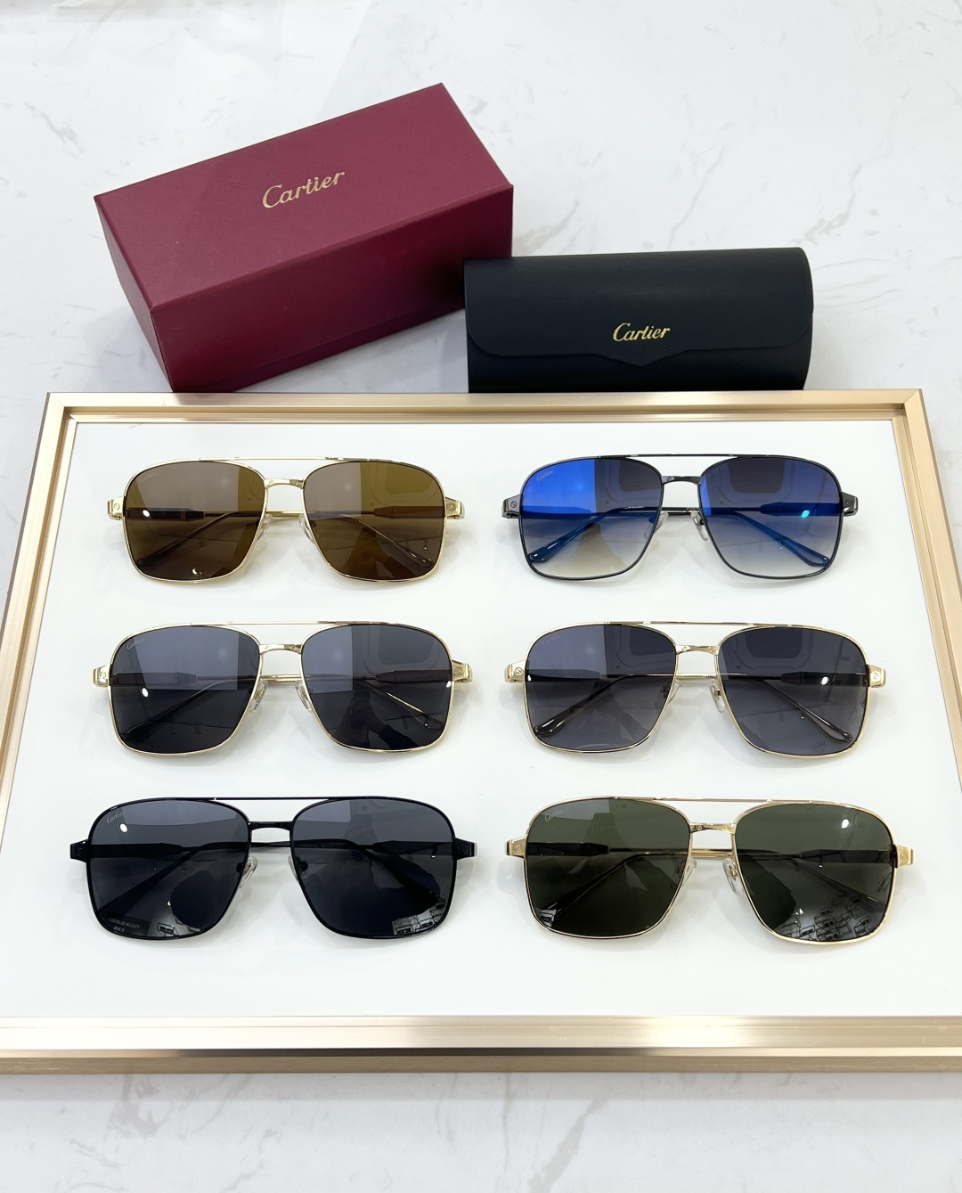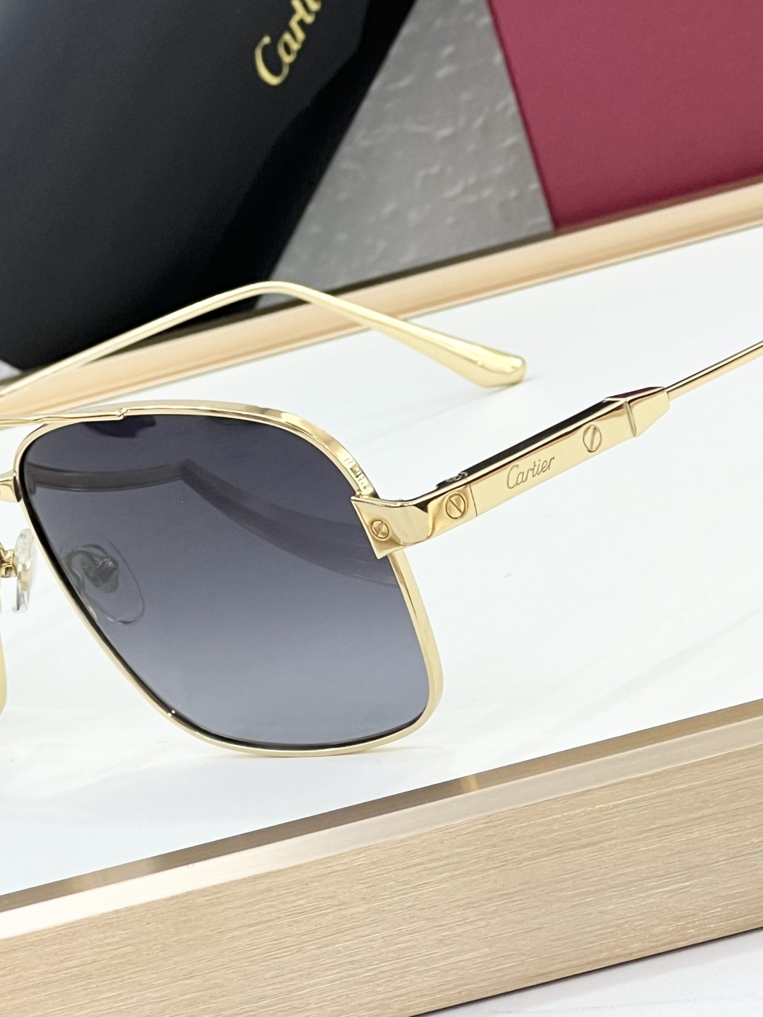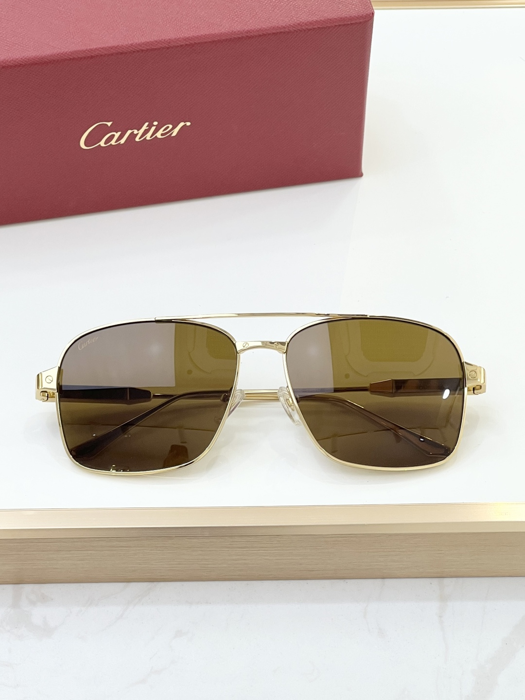 这款太阳眼镜是AAAAA 1:1 质量 (非常棒). 使用了和原版一模一样的材料. 商标部分也保持了和卡地亚/Cartier一样. 图片拍摄是实物太阳眼镜拍摄, 您所收到的实物保证和我们图片一模一样.