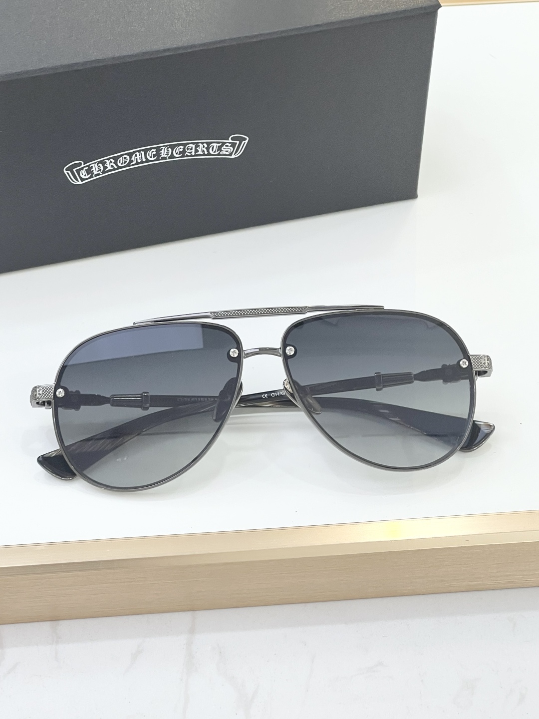 这款太阳眼镜是AAAAA 1:1 质量 (非常棒). 使用了和原版一模一样的材料. 商标部分也保持了和克罗心/Chrome Hearts一样. 图片拍摄是实物太阳眼镜拍摄, 您所收到的实物保证和我们图片一模一样.