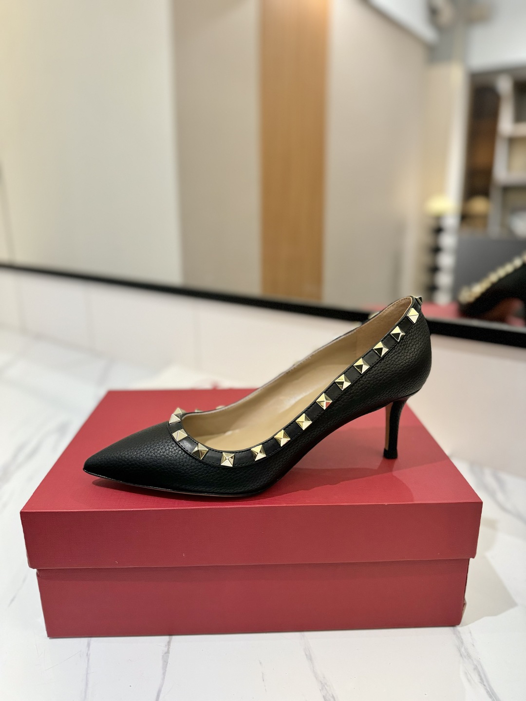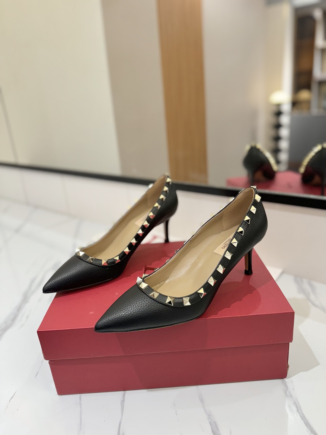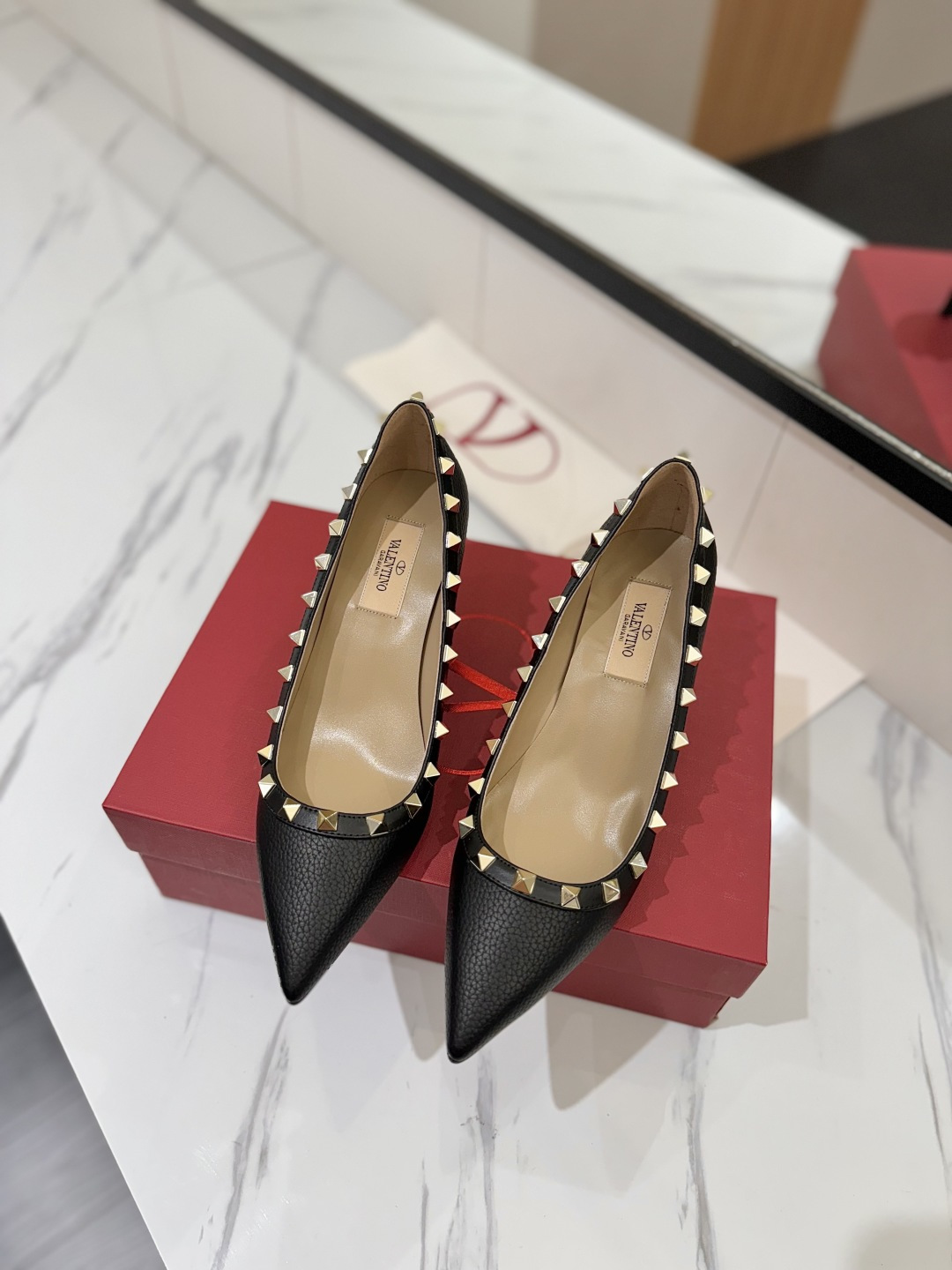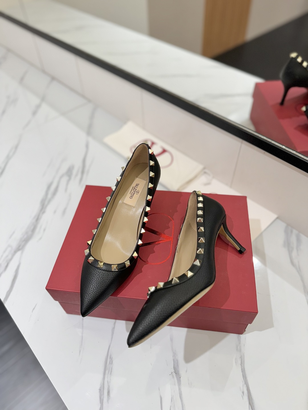 这款鞋子是AAAAA 1:1 质量 (非常棒). 使用了和原版一模一样的材料. 商标部分也保持了和华伦天奴/Valentino一样. 图片拍摄是实物鞋子拍摄, 您所收到的实物保证和我们图片一模一样.