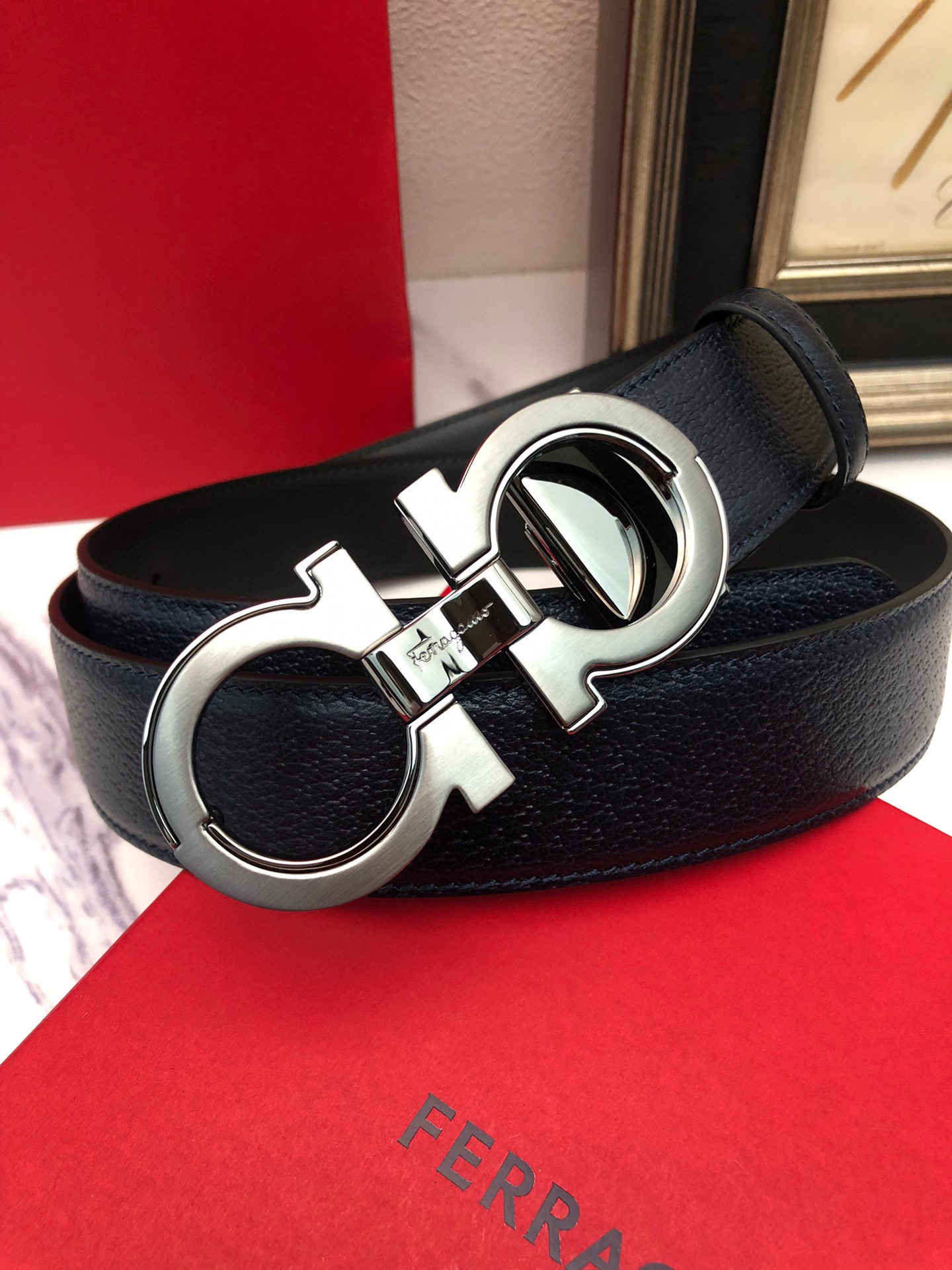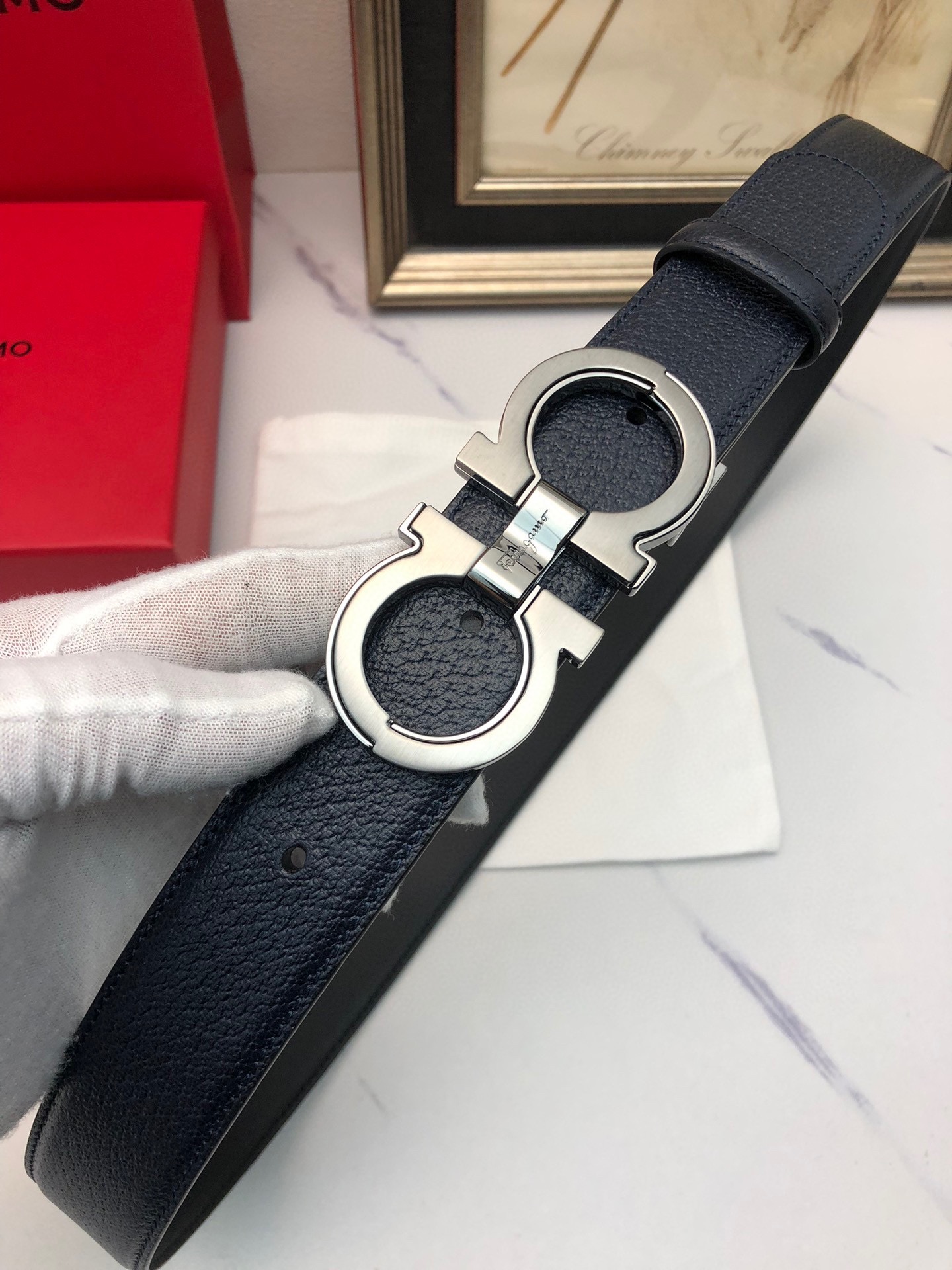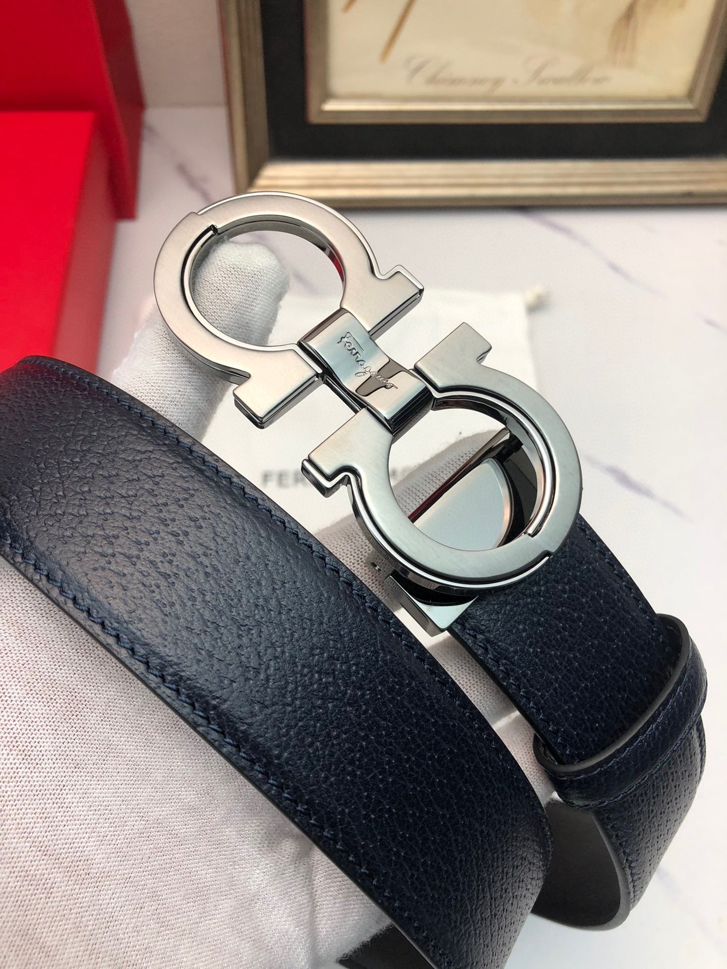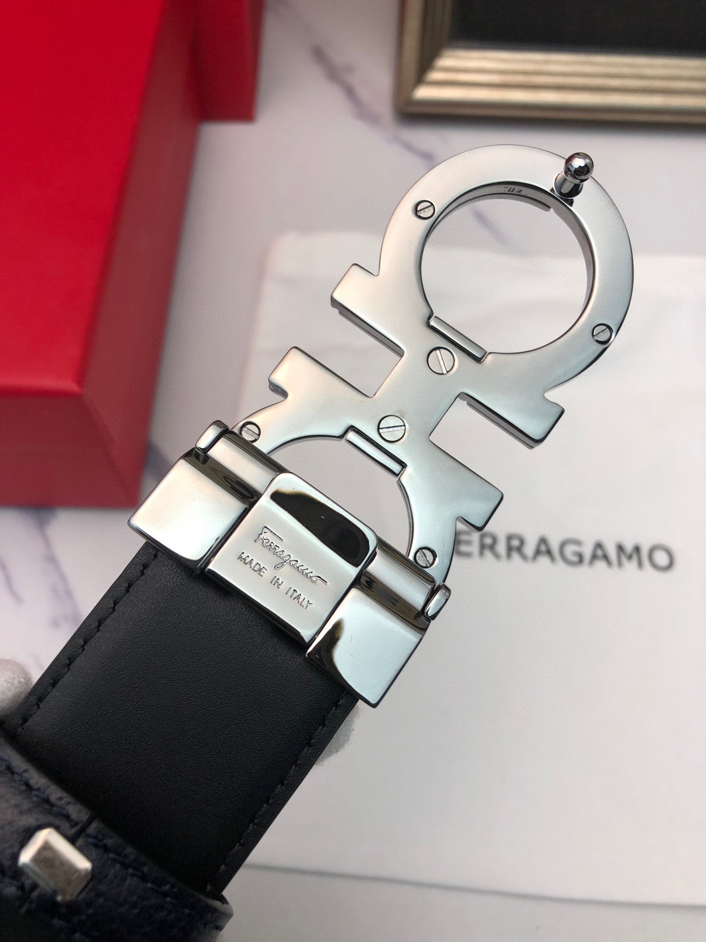 这款皮带是AAAAA 1:1 质量 (非常棒). 使用了和原版一模一样的材料. 商标部分也保持了和菲拉格慕/Salvatore Ferragamo一样. 图片拍摄是实物皮带拍摄, 您所收到的实物保证和我们图片一模一样.