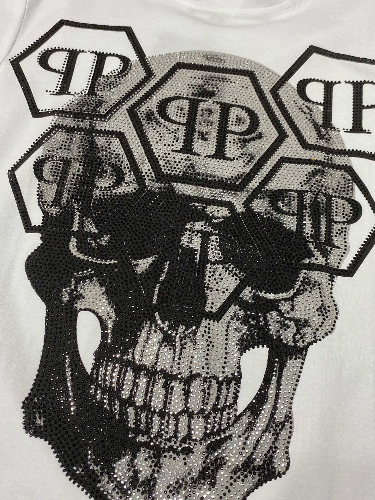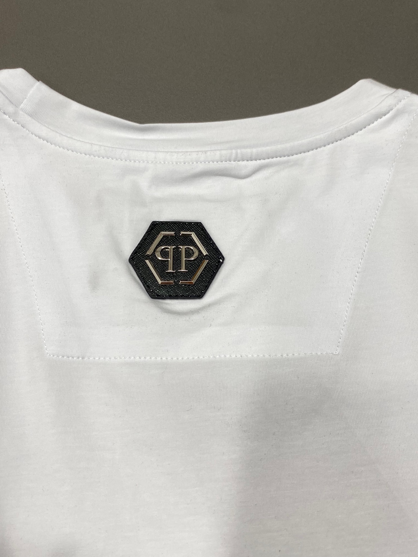 这款衣服是AAAAA 1:1 质量 (非常棒). 使用了和原版一模一样的材料. 商标部分也保持了和菲利普·普林/Philipp Plein一样. 图片拍摄是实物衣服拍摄, 您所收到的实物保证和我们图片一模一样.