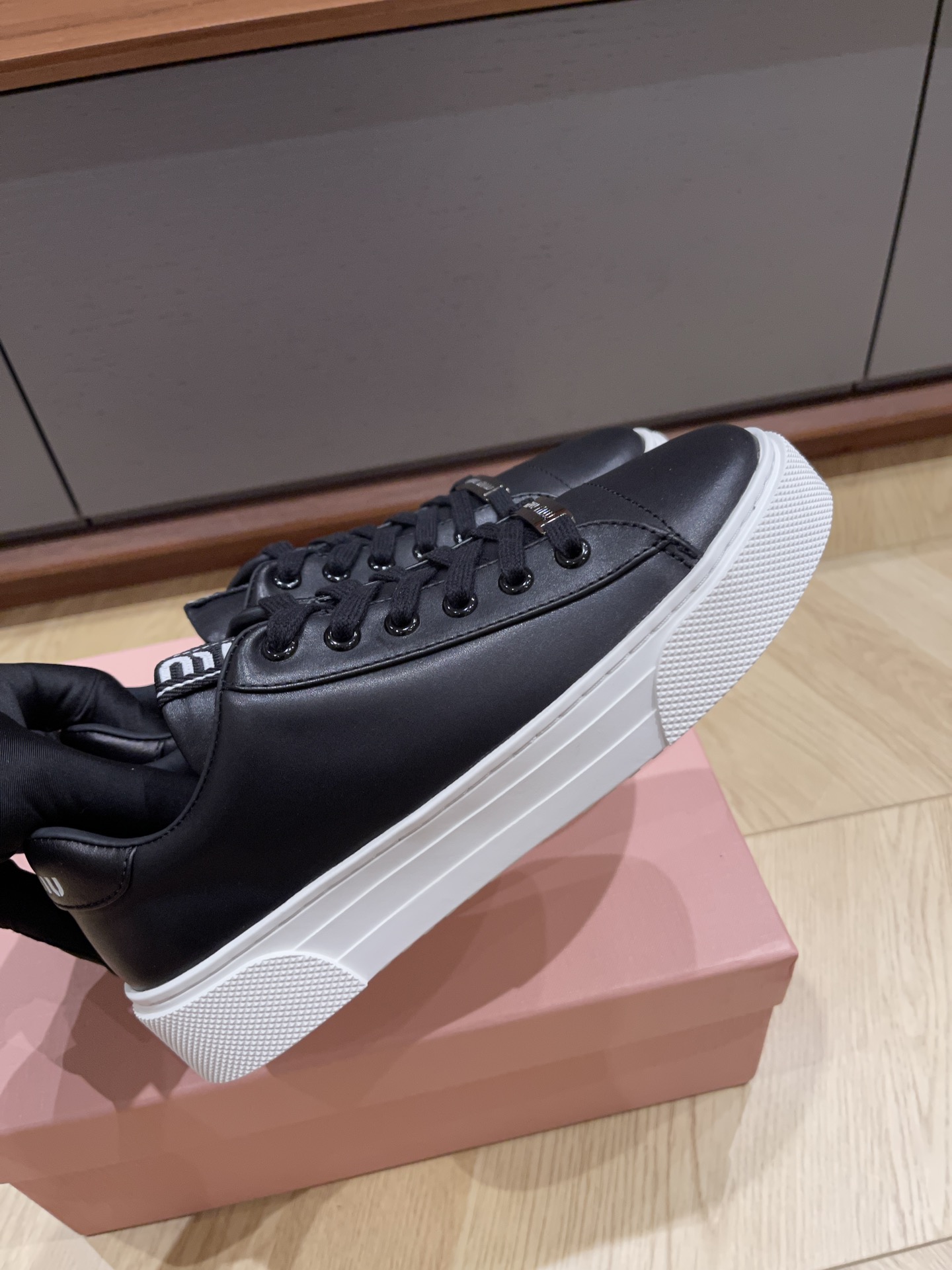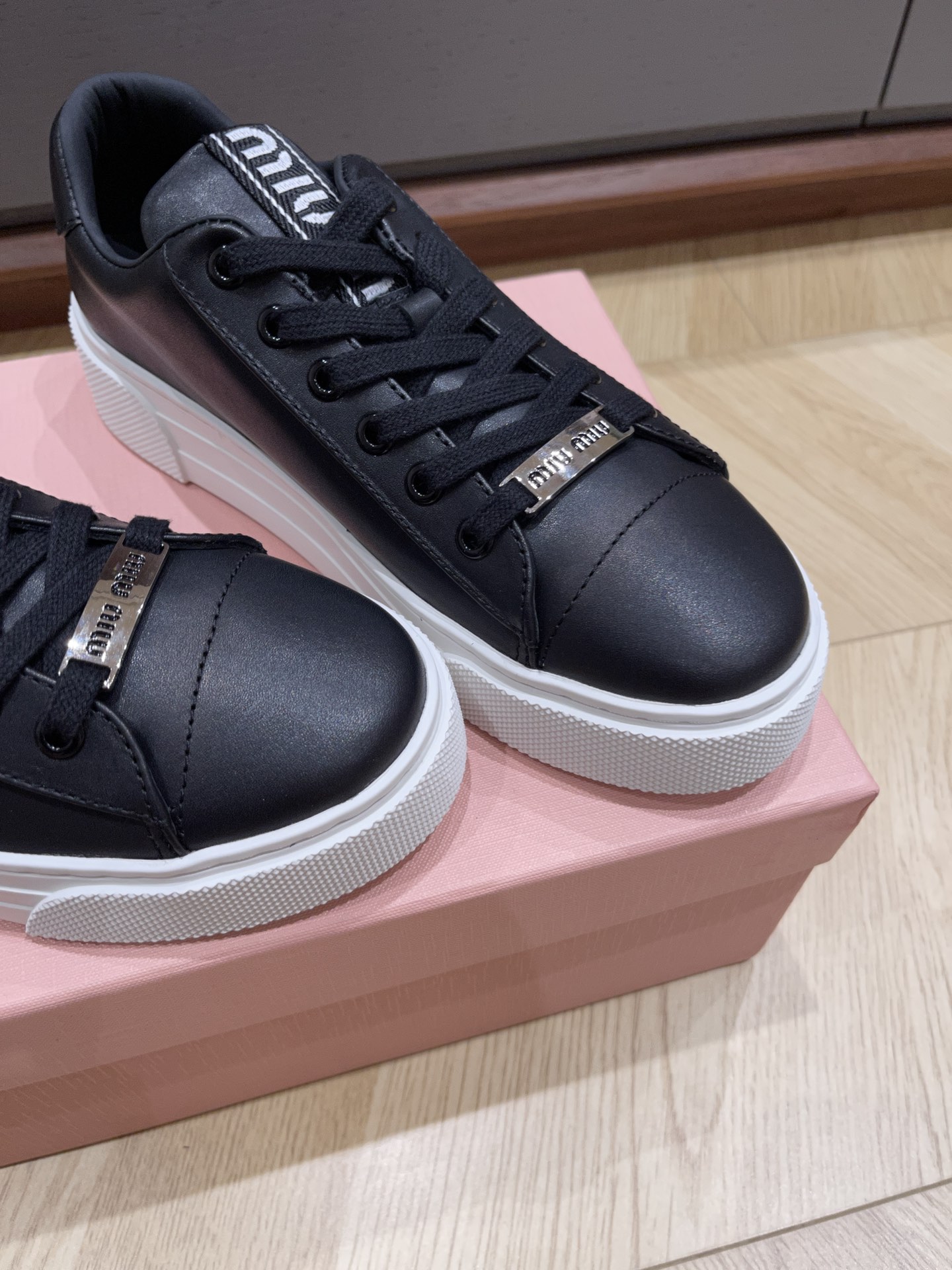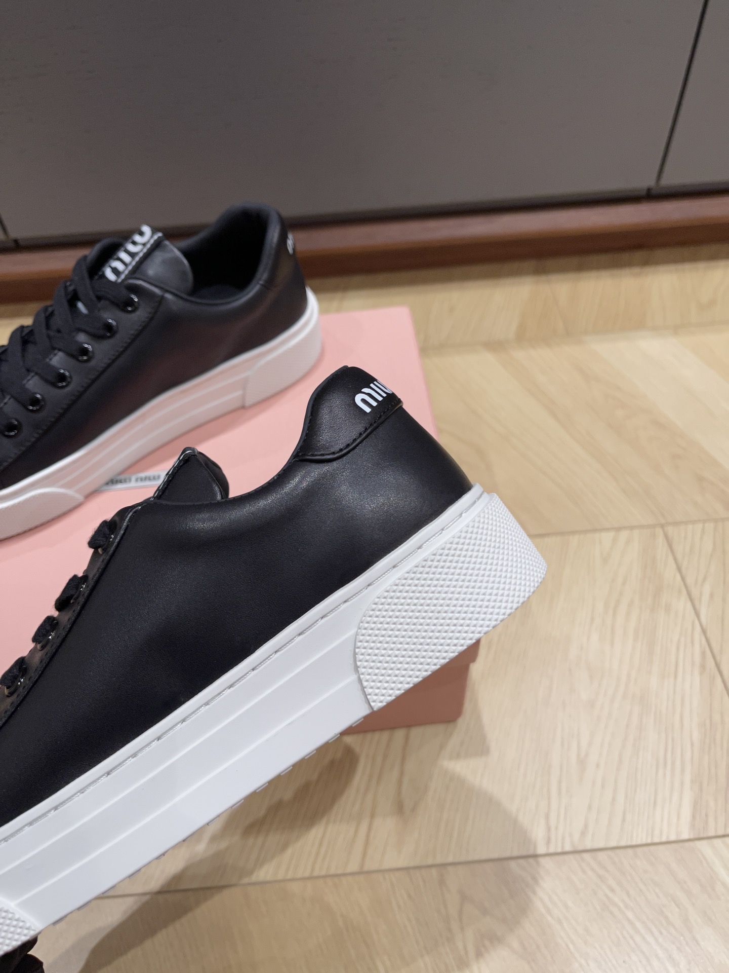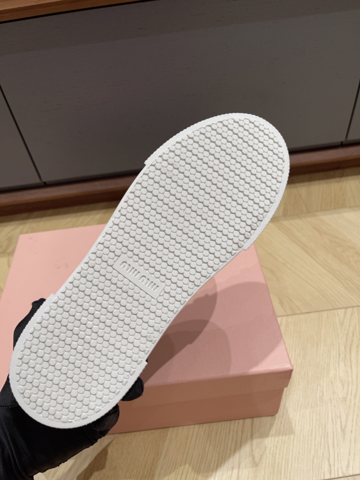 这款鞋子是AAAAA 1:1 质量 (非常棒). 使用了和原版一模一样的材料. 商标部分也保持了和缪缪/Miu Miu一样. 图片拍摄是实物鞋子拍摄, 您所收到的实物保证和我们图片一模一样.