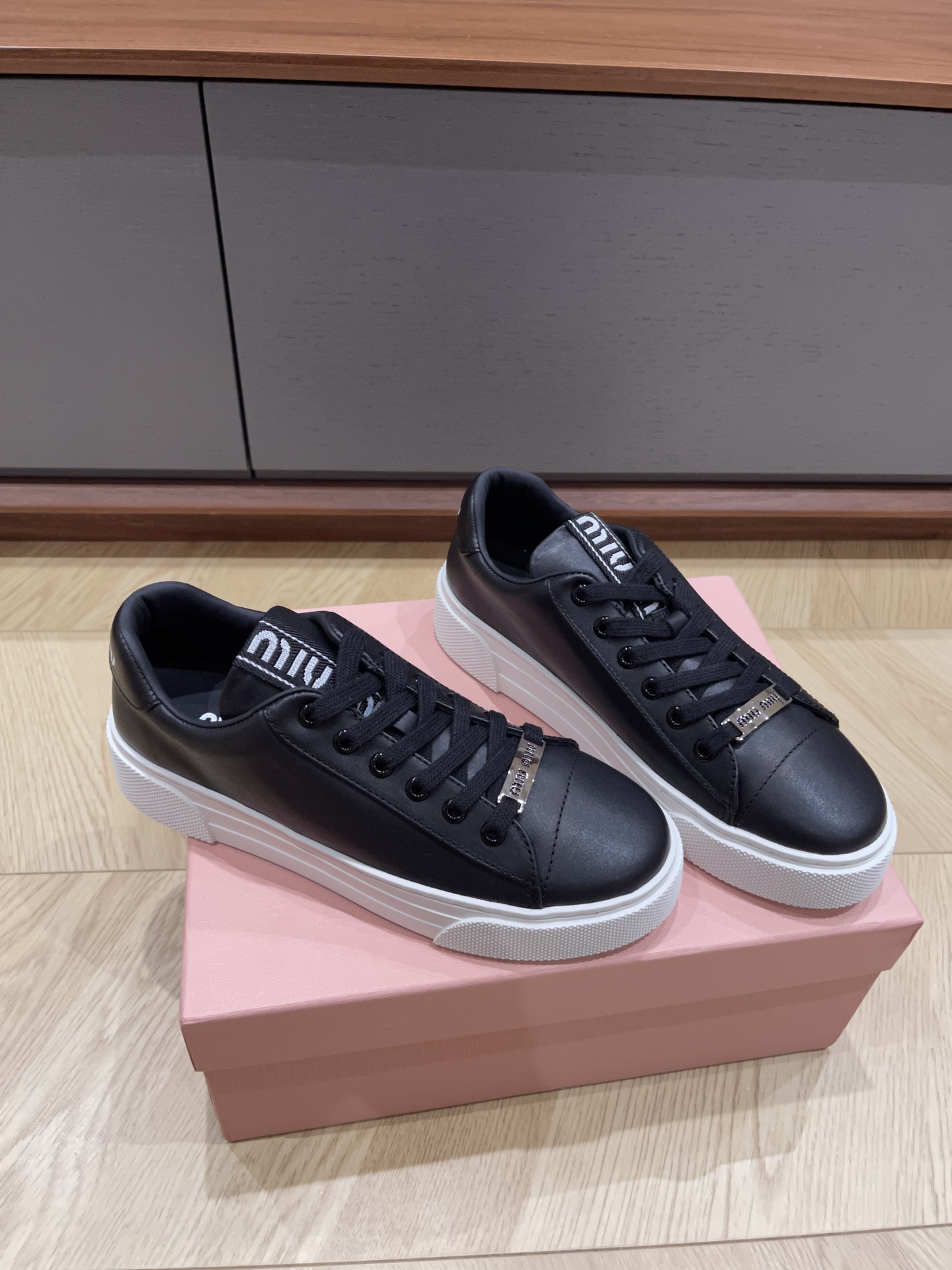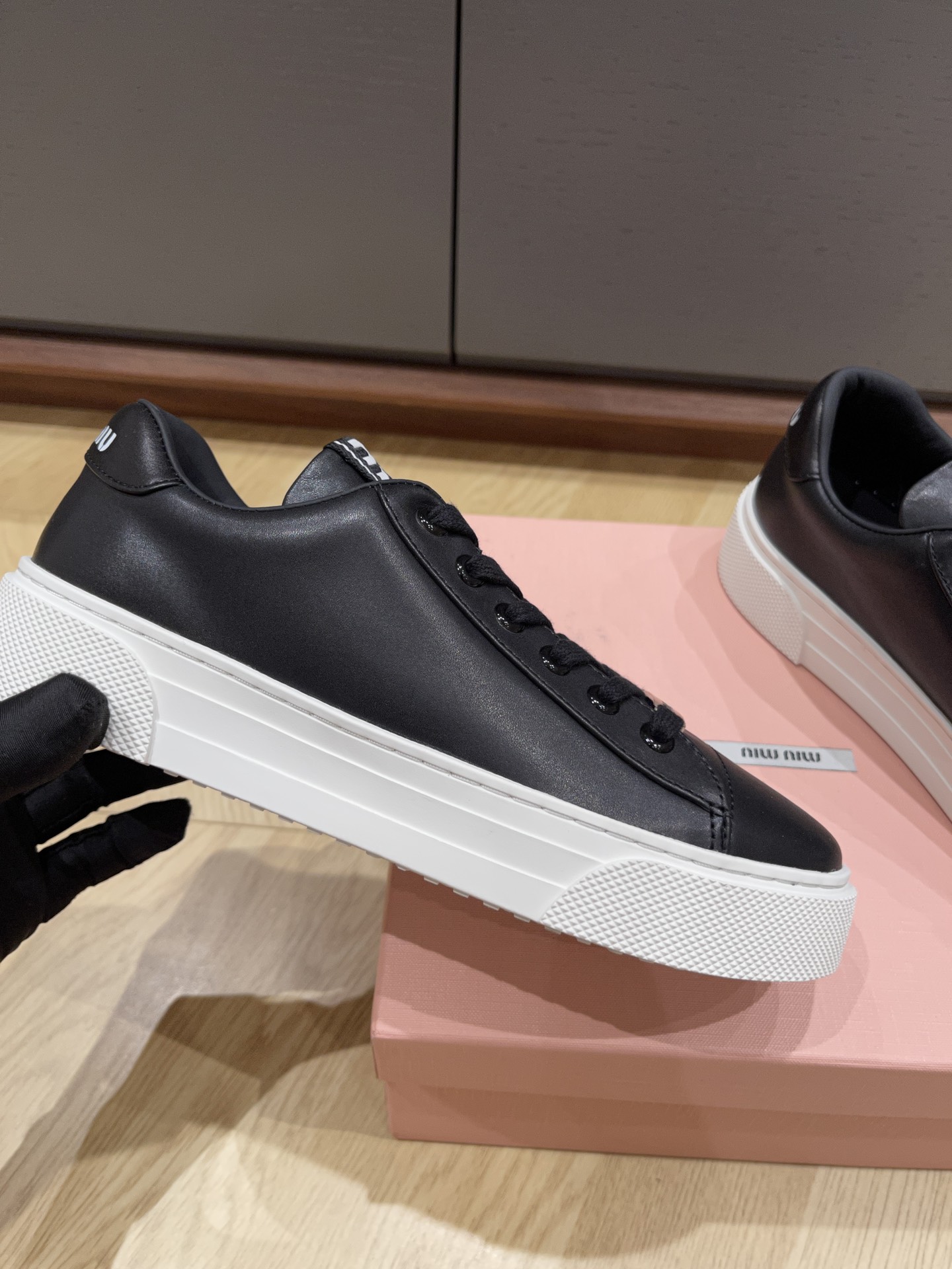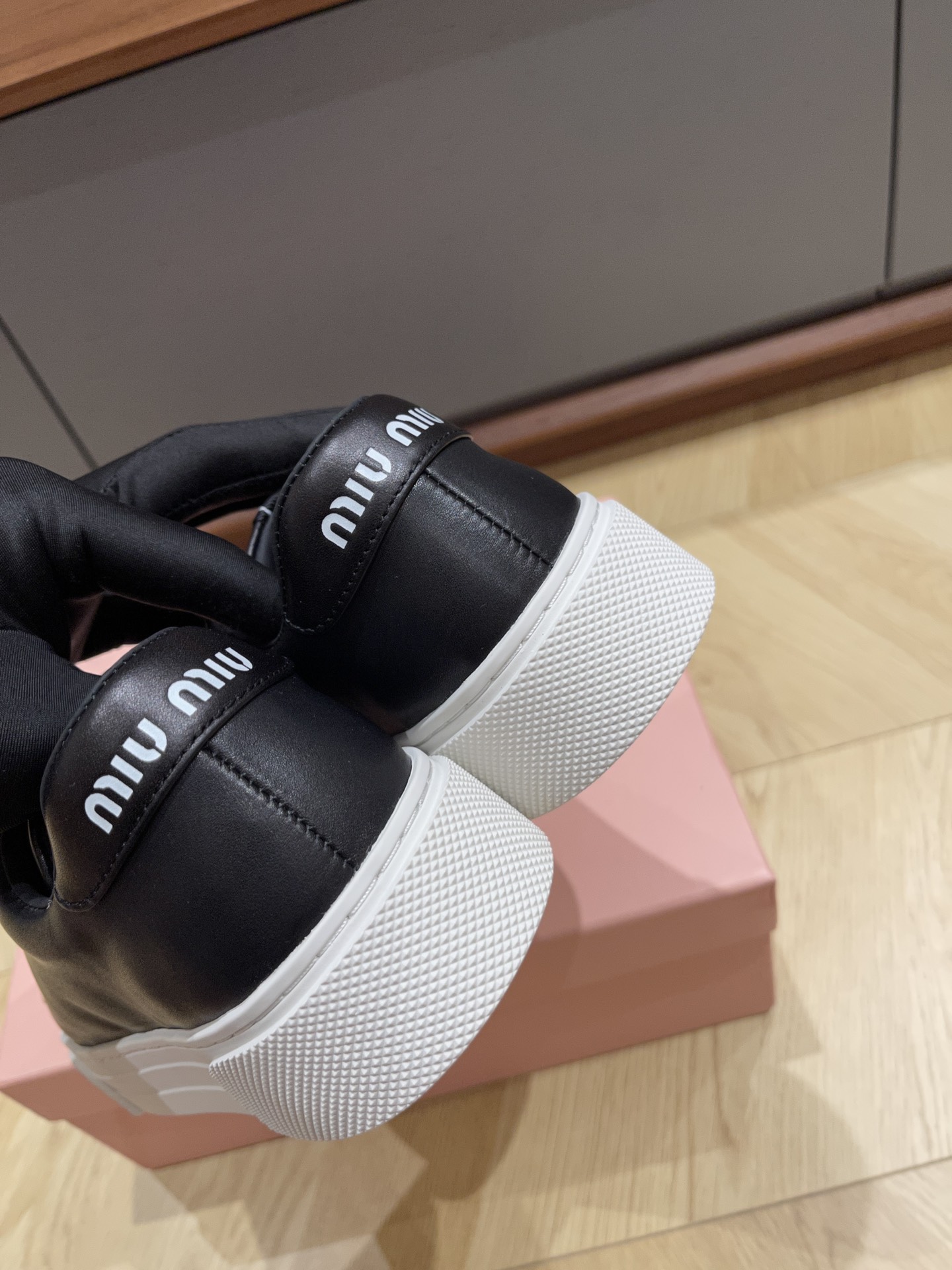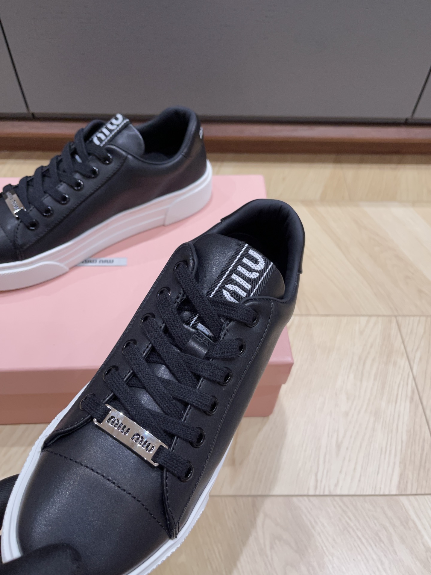 这款鞋子是AAAAA 1:1 质量 (非常棒). 使用了和原版一模一样的材料. 商标部分也保持了和缪缪/Miu Miu一样. 图片拍摄是实物鞋子拍摄, 您所收到的实物保证和我们图片一模一样.