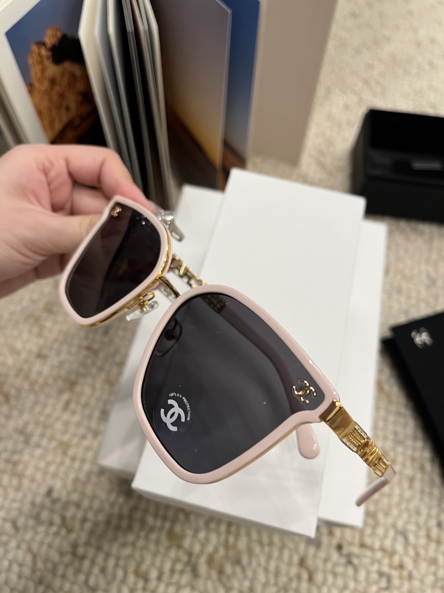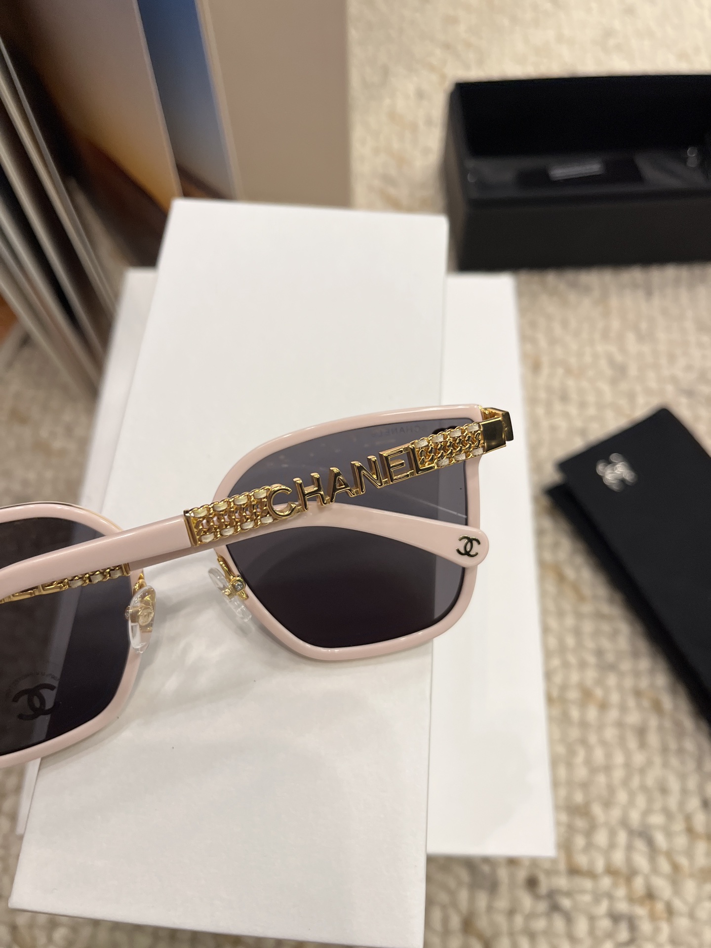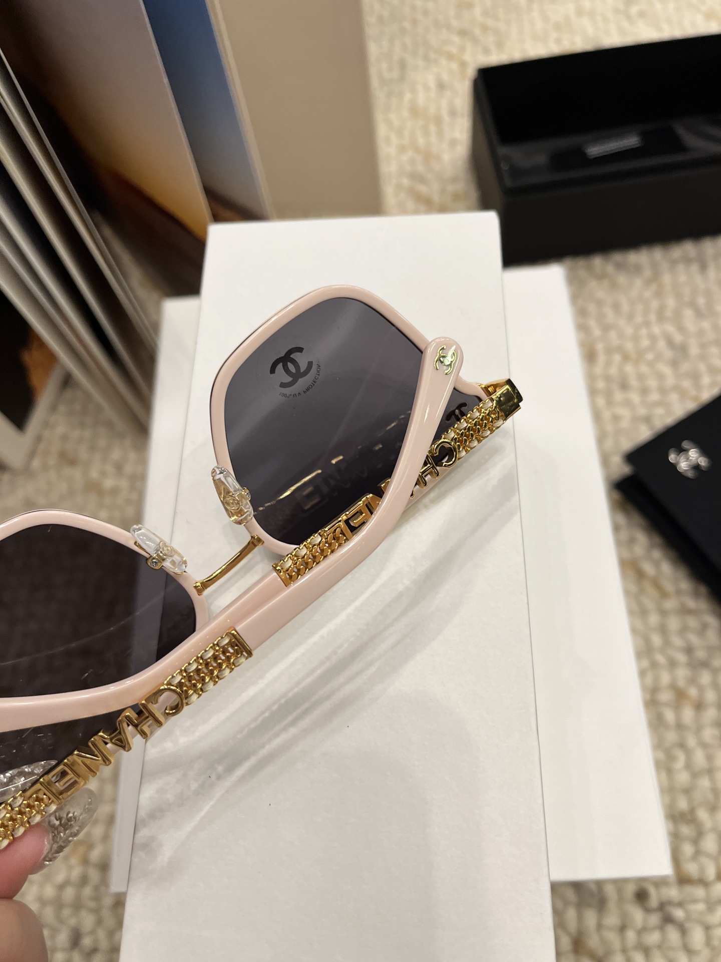 这款太阳眼镜是AAAAA 1:1 质量 (非常棒). 使用了和原版一模一样的材料. 商标部分也保持了和香奈儿/Chanel一样. 图片拍摄是实物太阳眼镜拍摄, 您所收到的实物保证和我们图片一模一样.