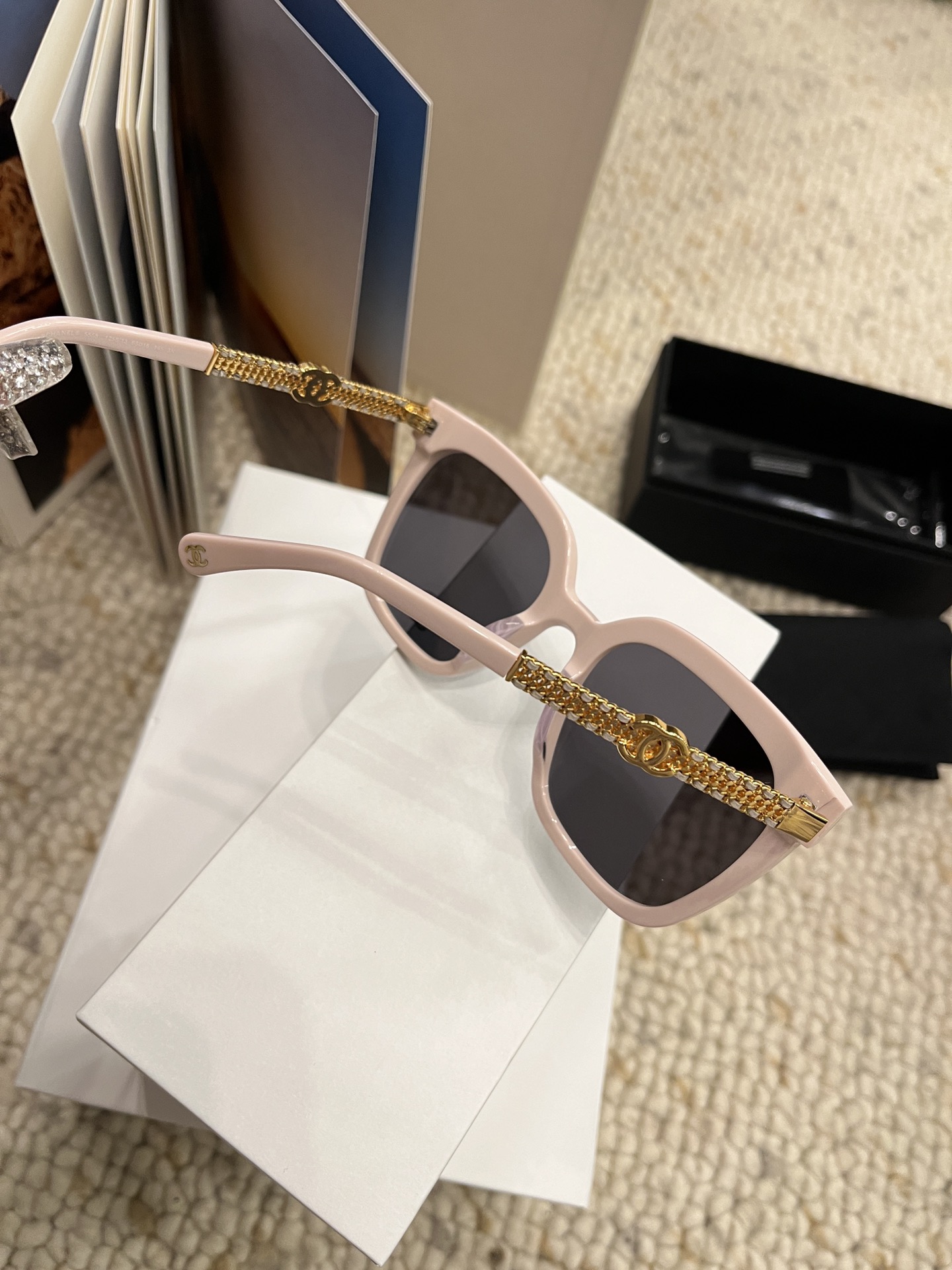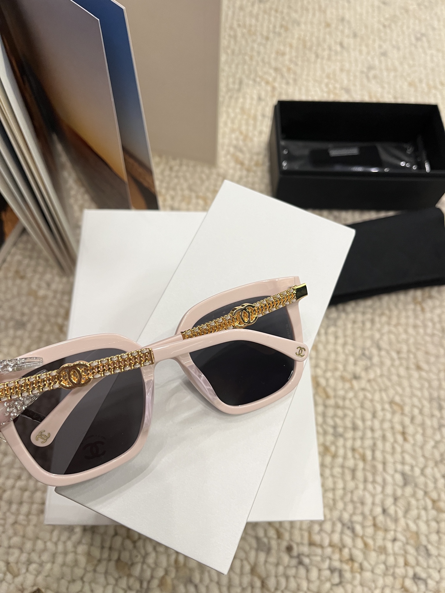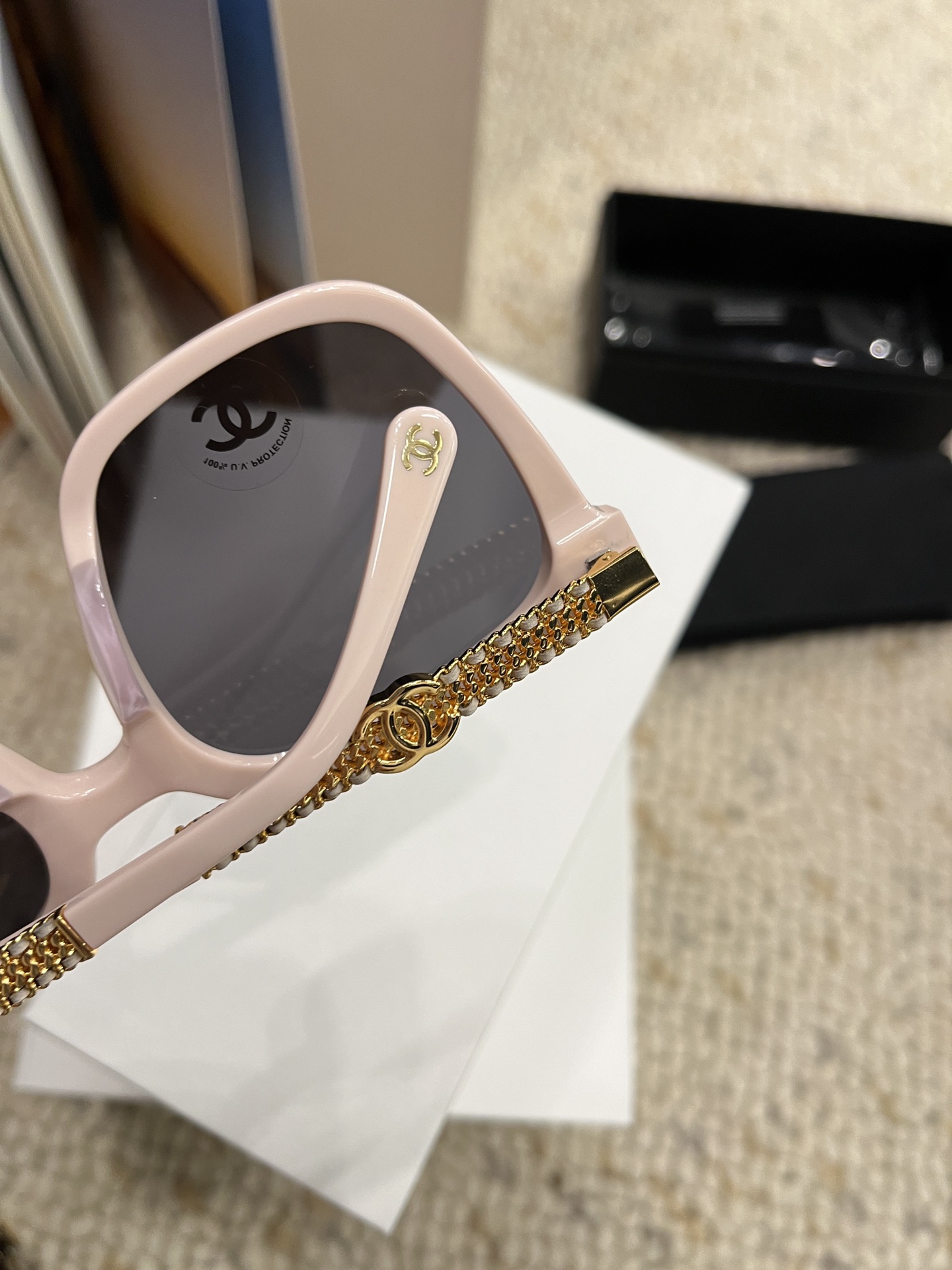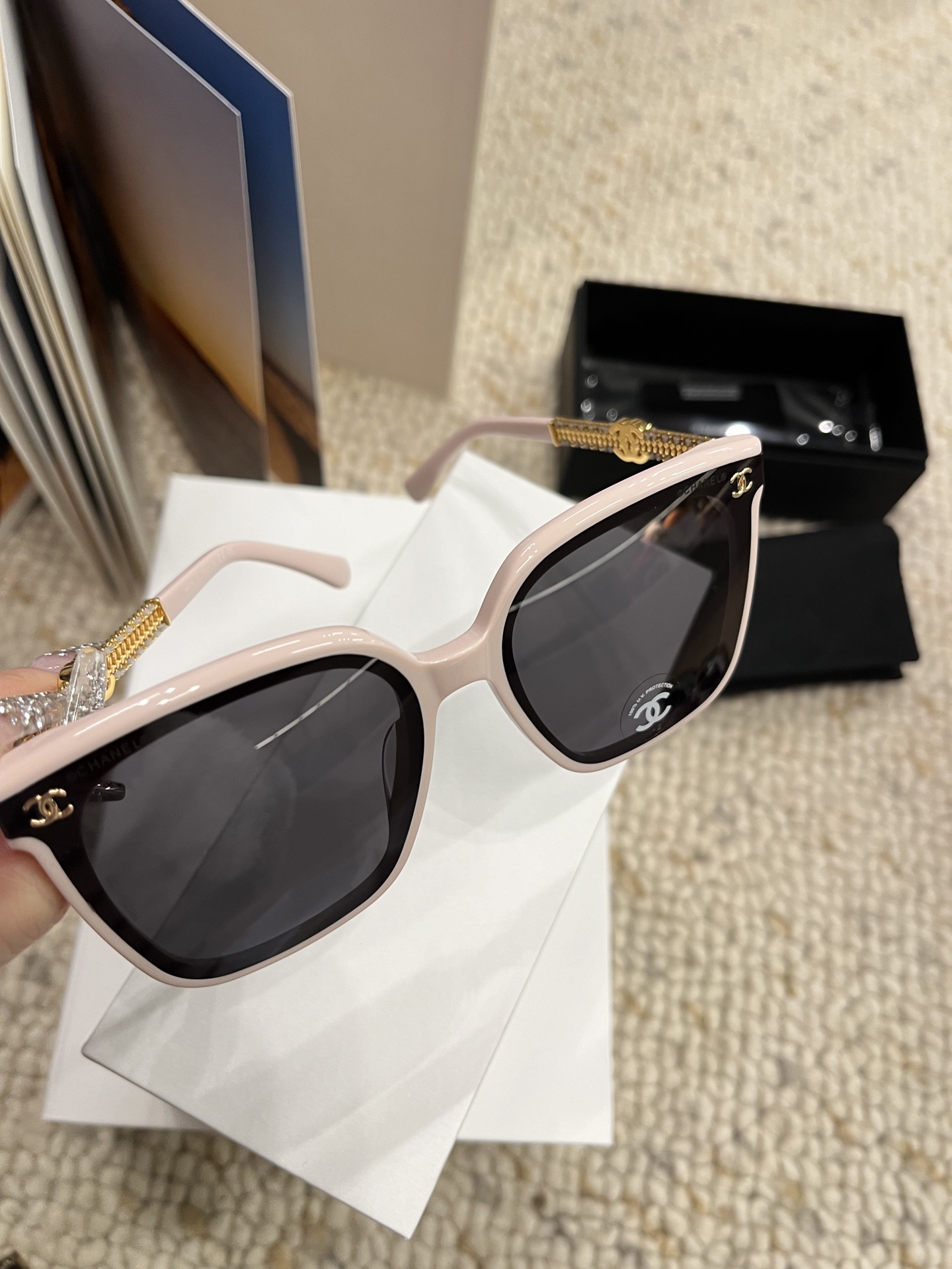 这款太阳眼镜是AAAAA 1:1 质量 (非常棒). 使用了和原版一模一样的材料. 商标部分也保持了和香奈儿/Chanel一样. 图片拍摄是实物太阳眼镜拍摄, 您所收到的实物保证和我们图片一模一样.