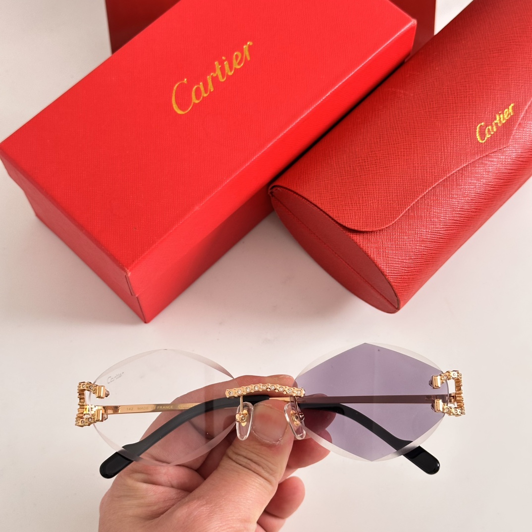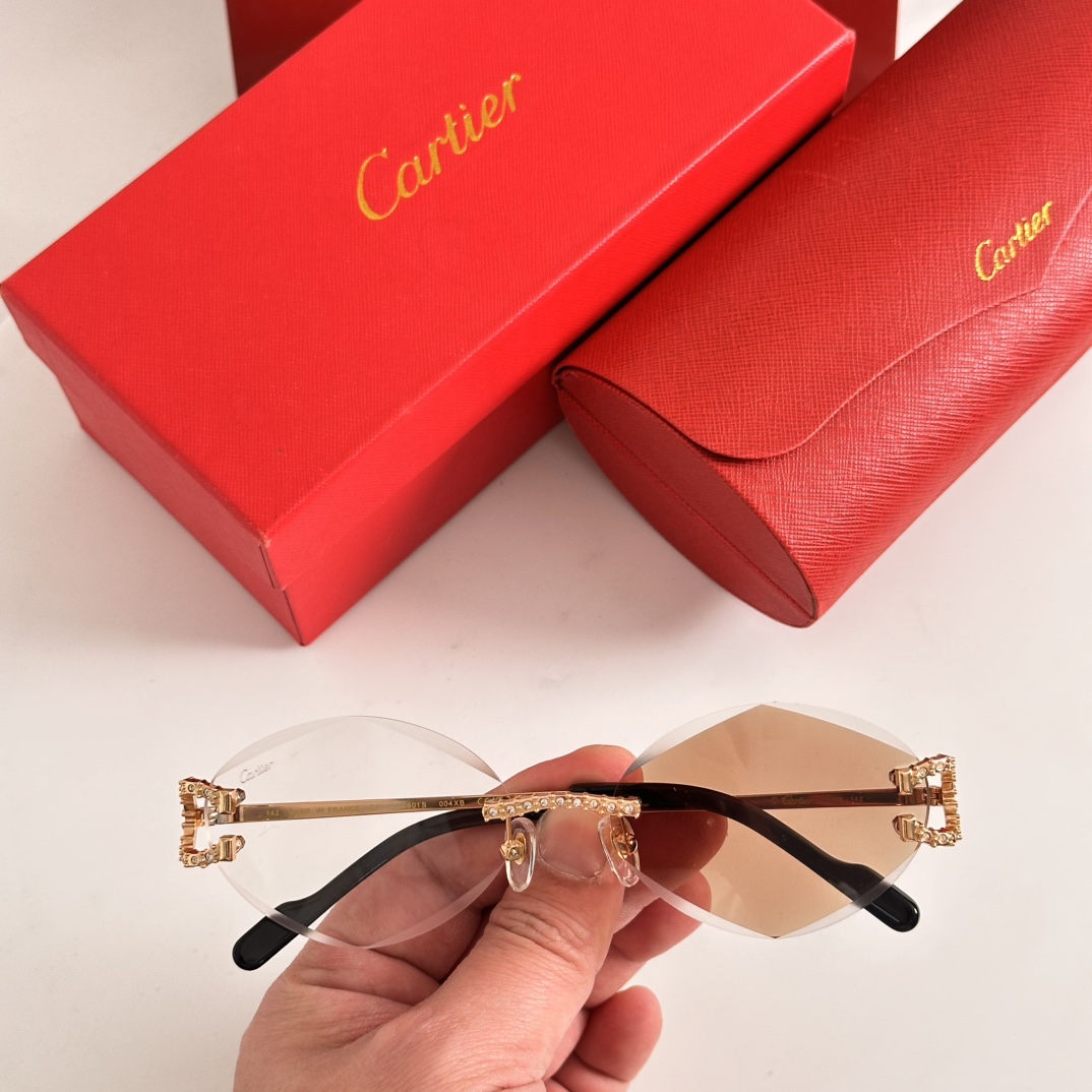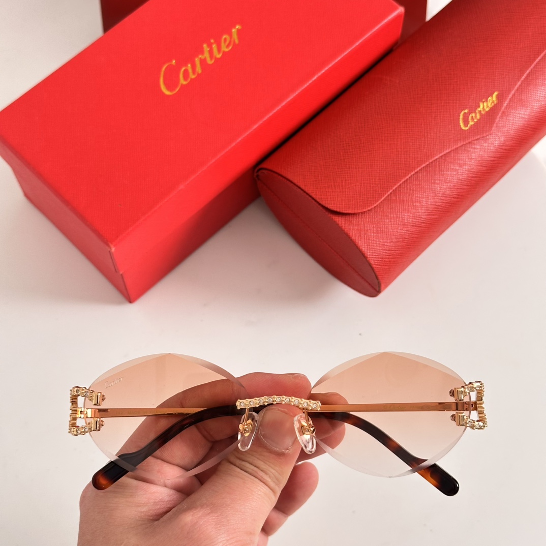 这款太阳眼镜是AAAAA 1:1 质量 (非常棒). 使用了和原版一模一样的材料. 商标部分也保持了和卡地亚/Cartier一样. 图片拍摄是实物太阳眼镜拍摄, 您所收到的实物保证和我们图片一模一样.